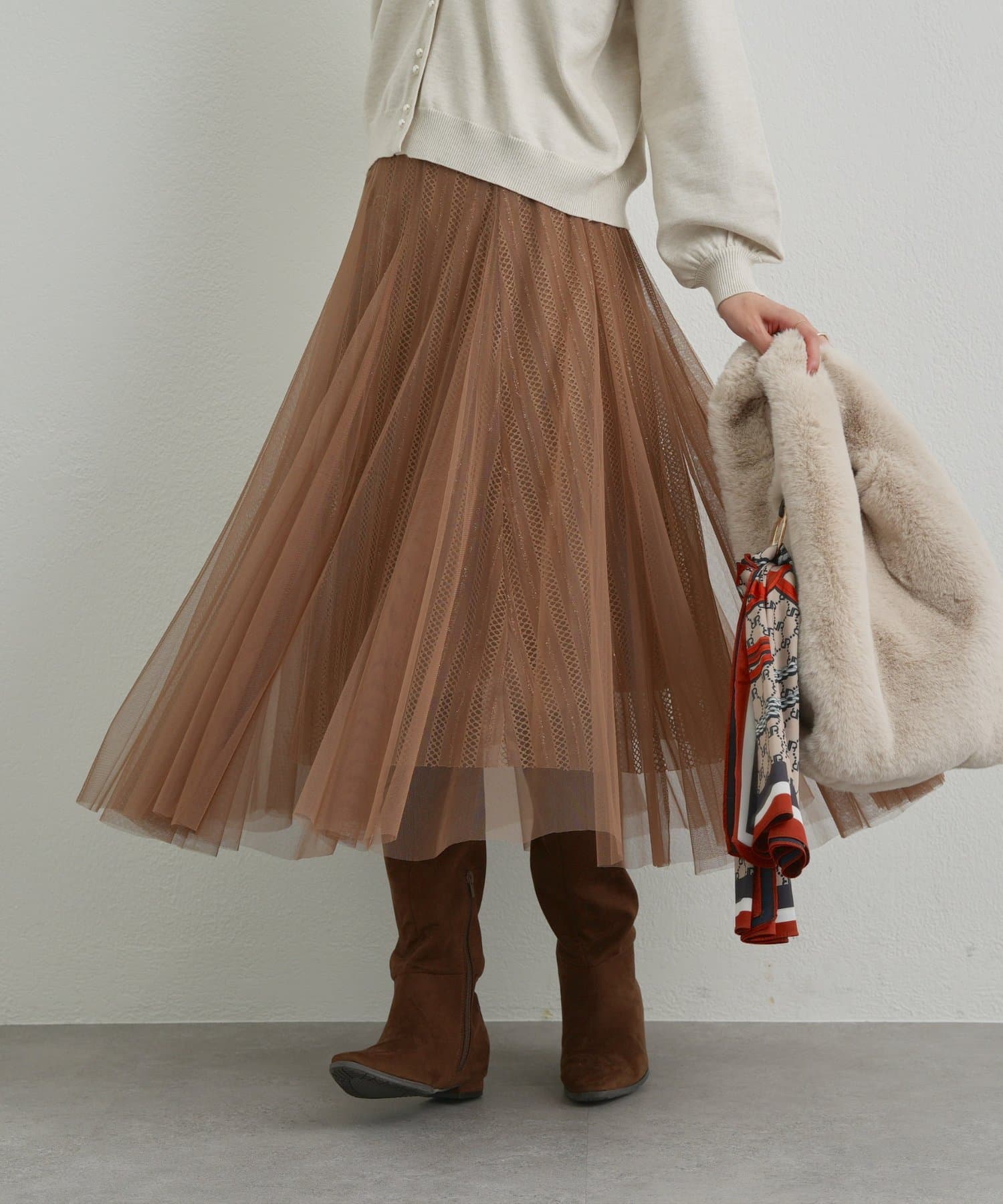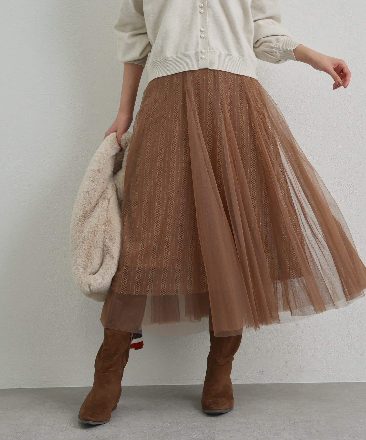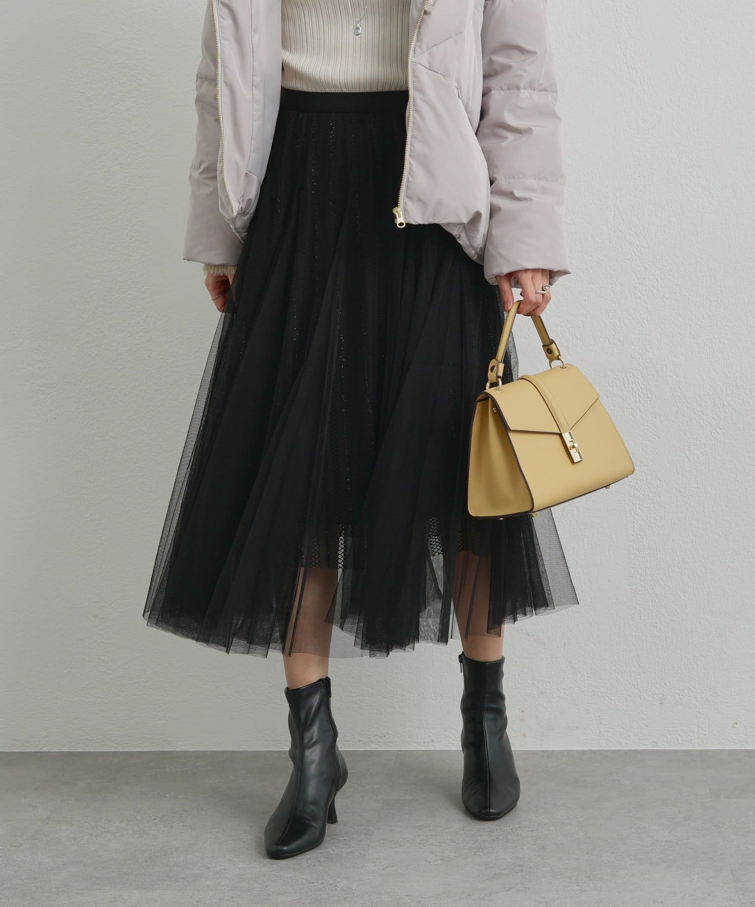 ・繊細なチュール素材を贅沢に重ねた、華やかさと上品さを兼ね備えたスカート。