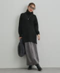 ダークカラーのブラウスを合わせると、きちんと感のあるスタイリングに♪