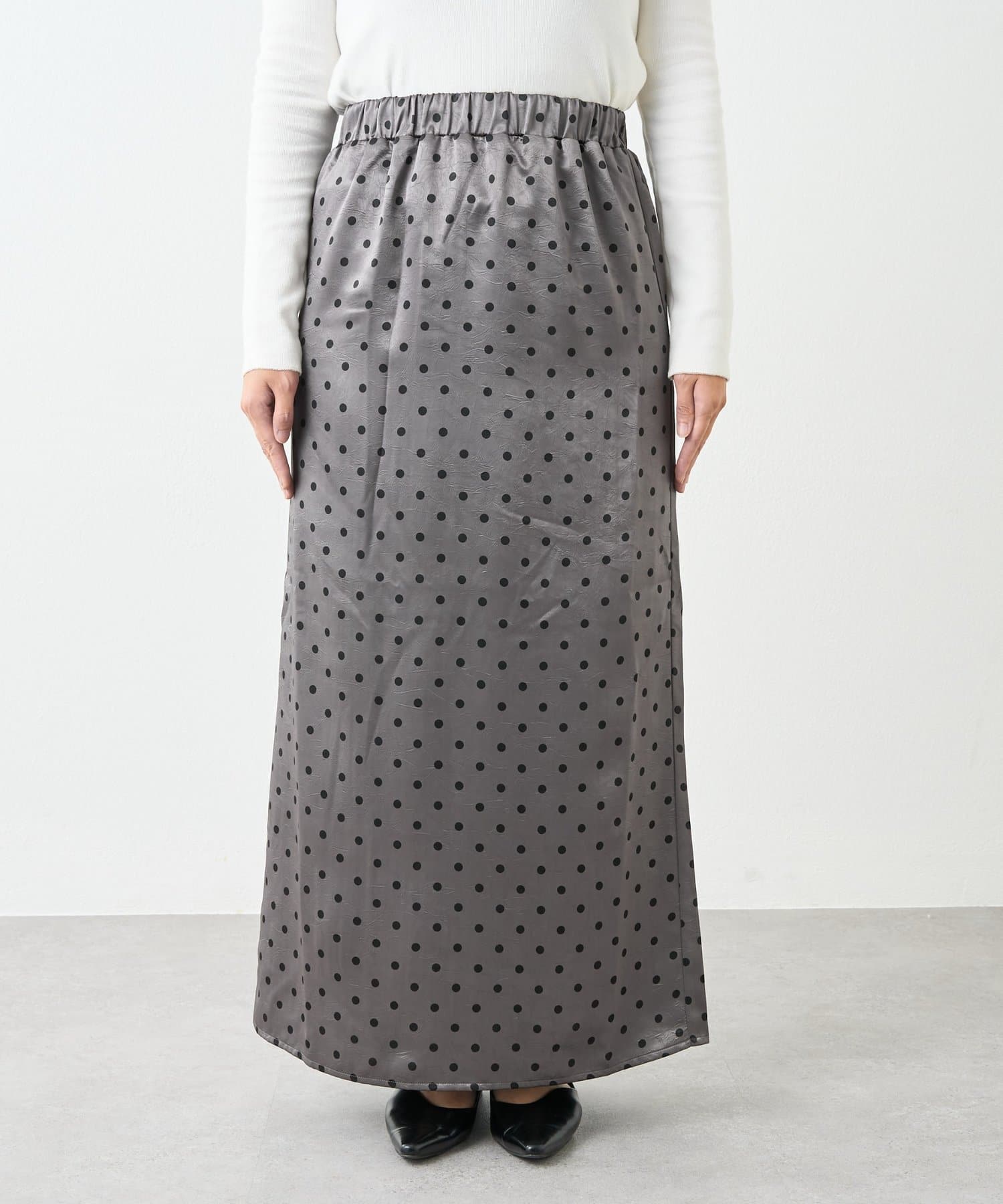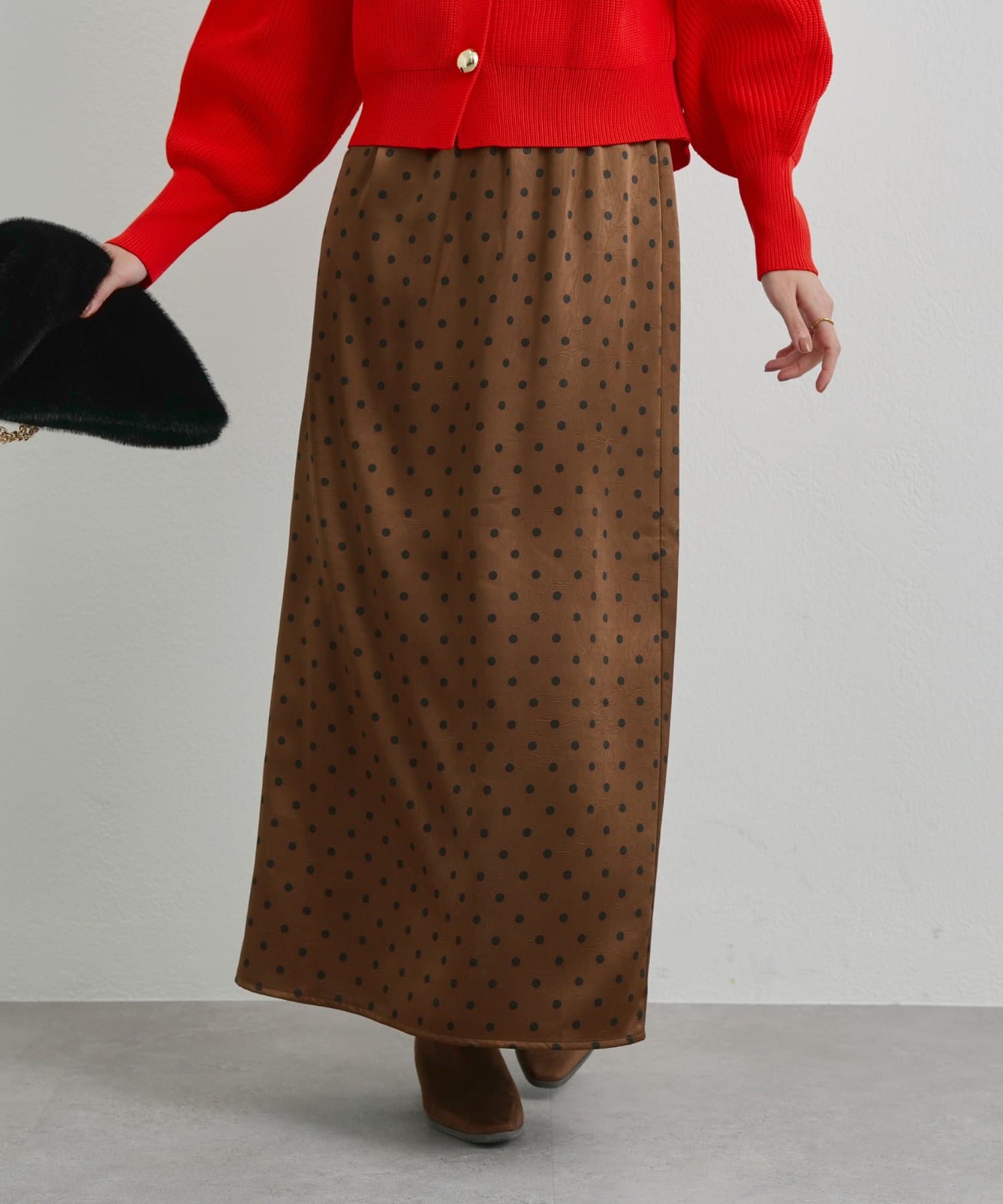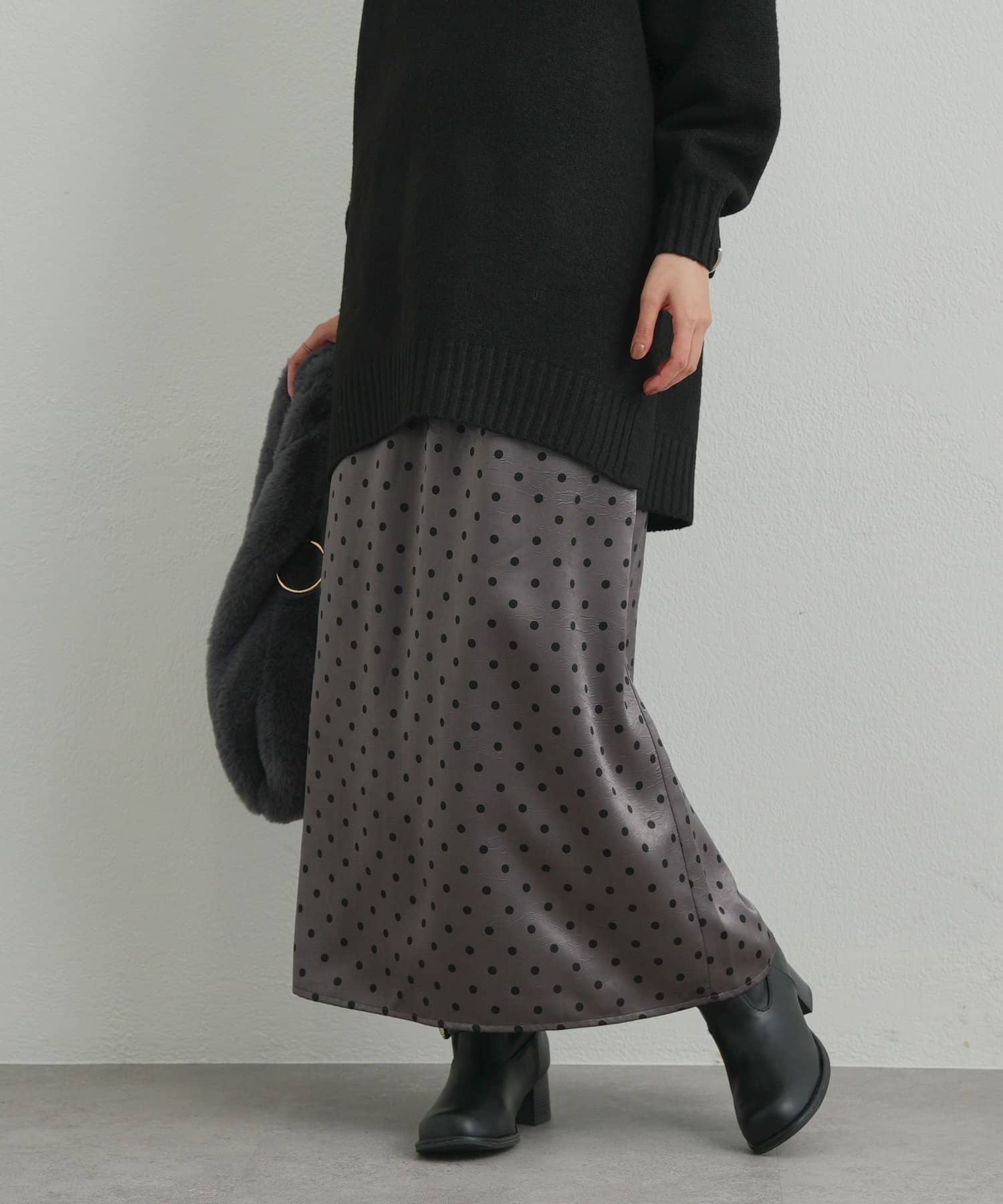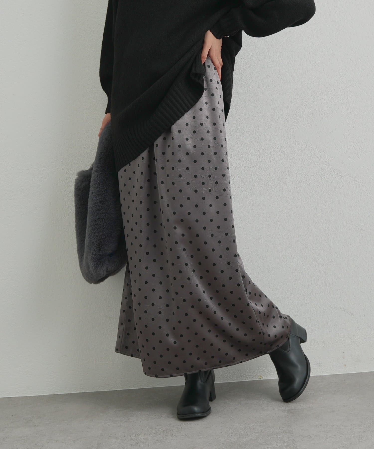 ・大人可愛いドット柄がほどこされた、コーデの主役級アイテムになるスカート。