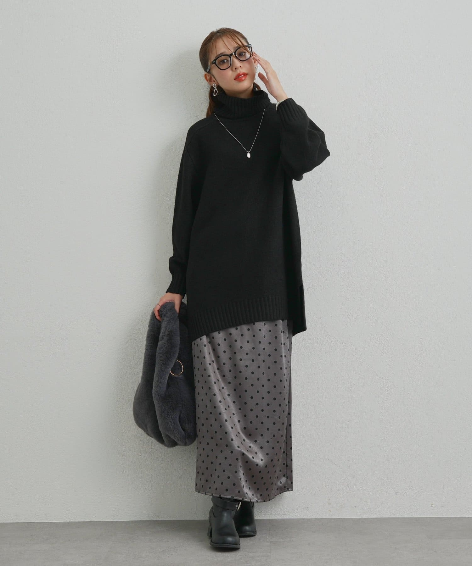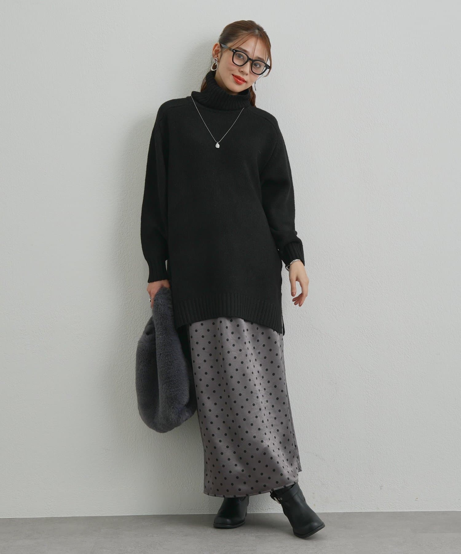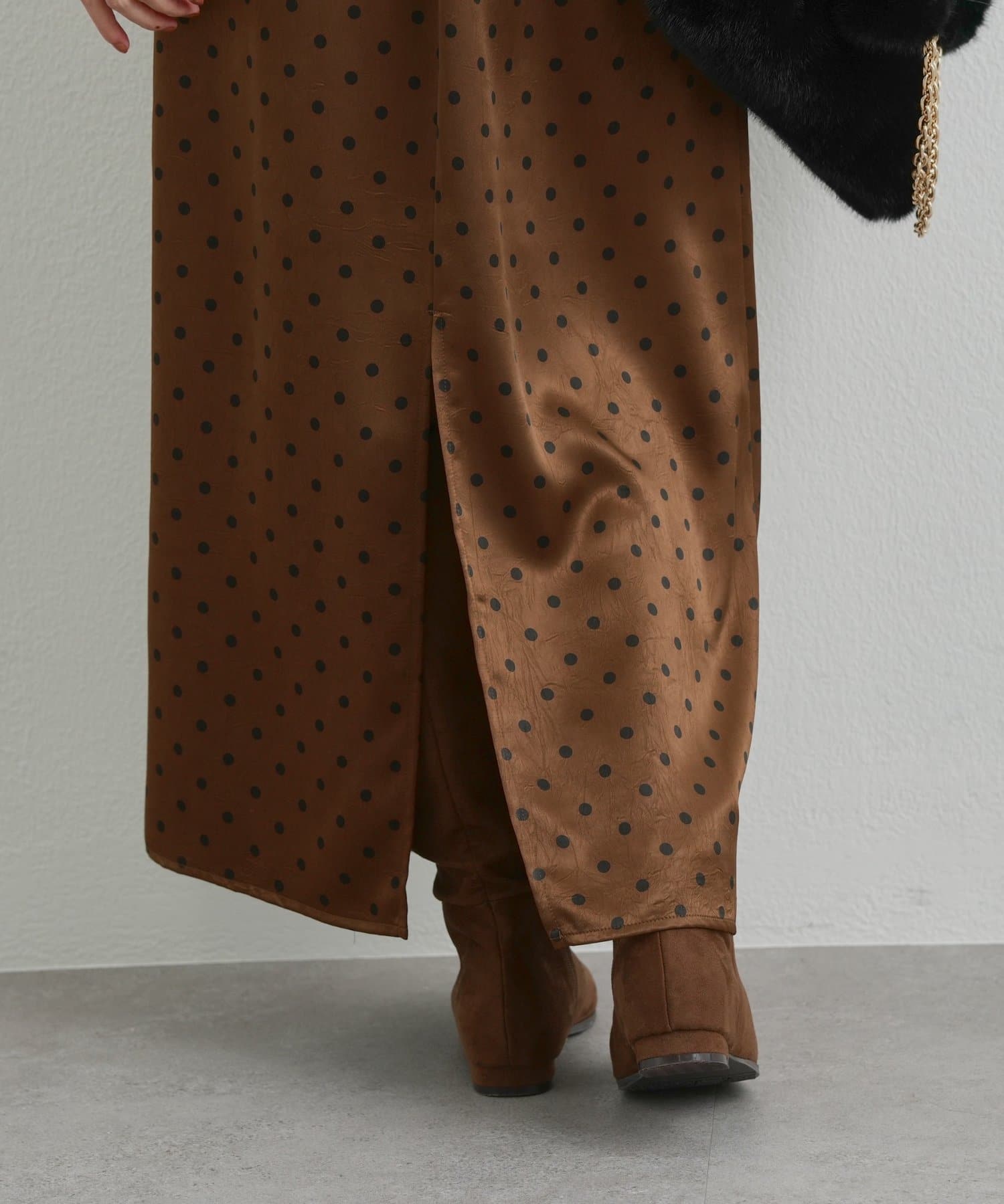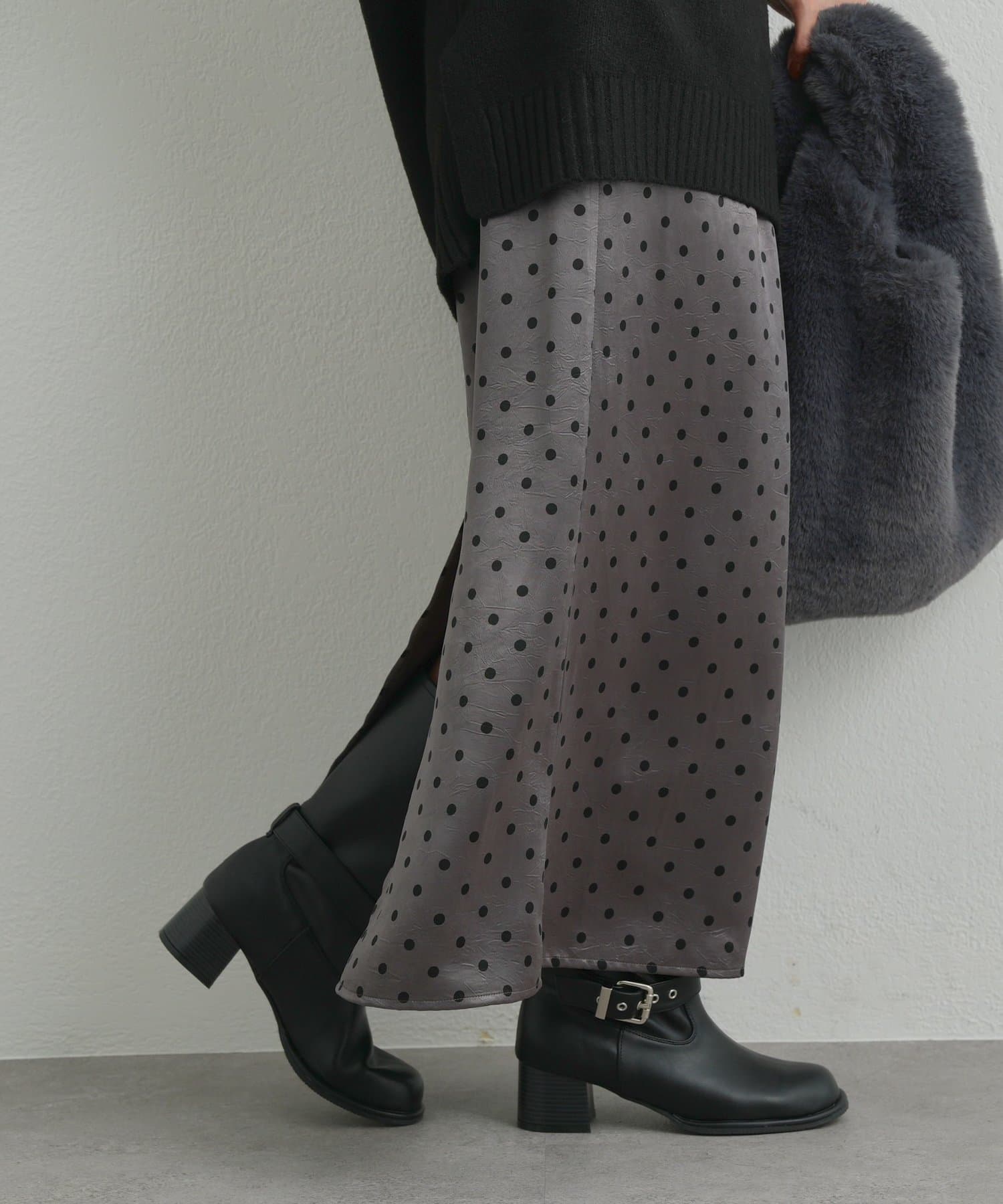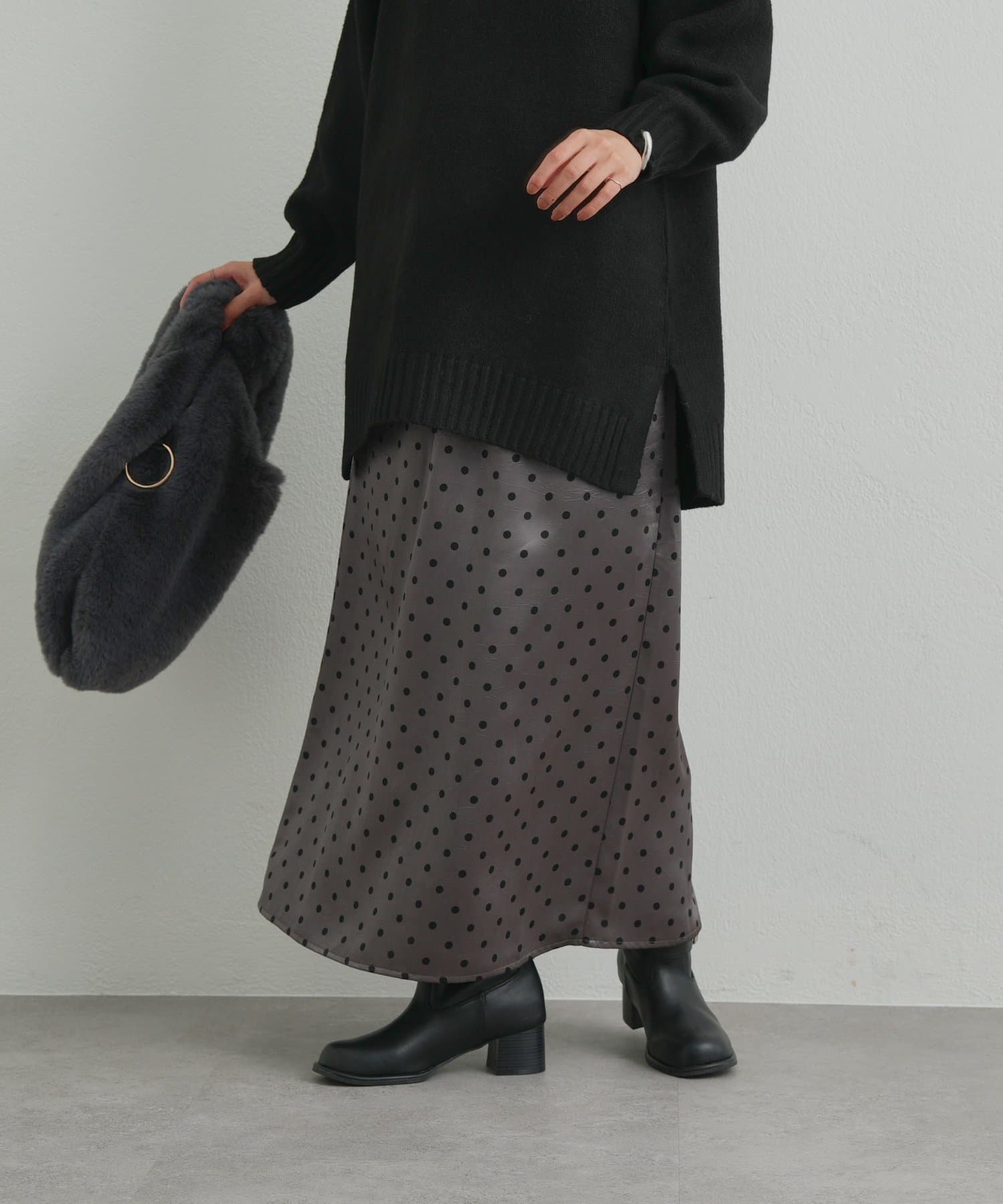 ・大人可愛いドット柄がほどこされた、コーデの主役級アイテムになるスカート。