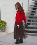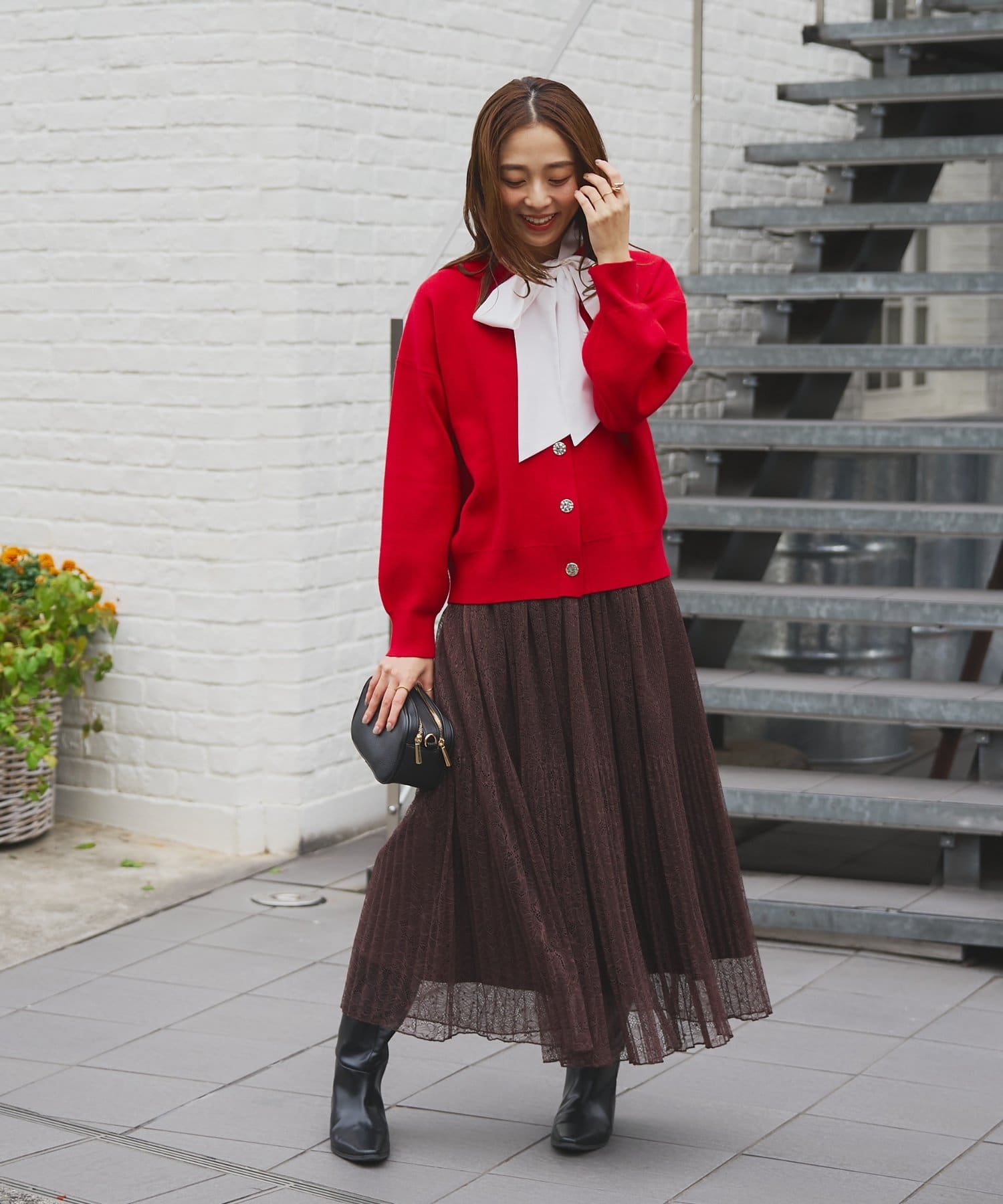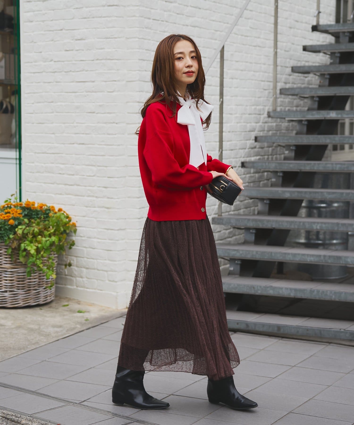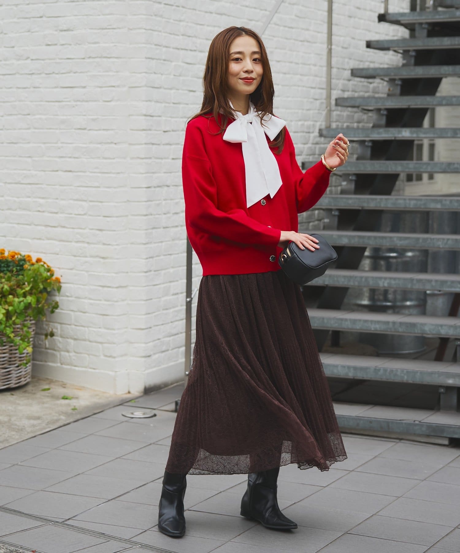 フレアスカートやワンピースと合わせて、フェミニンな着こなしを楽しむのもおすすめ。