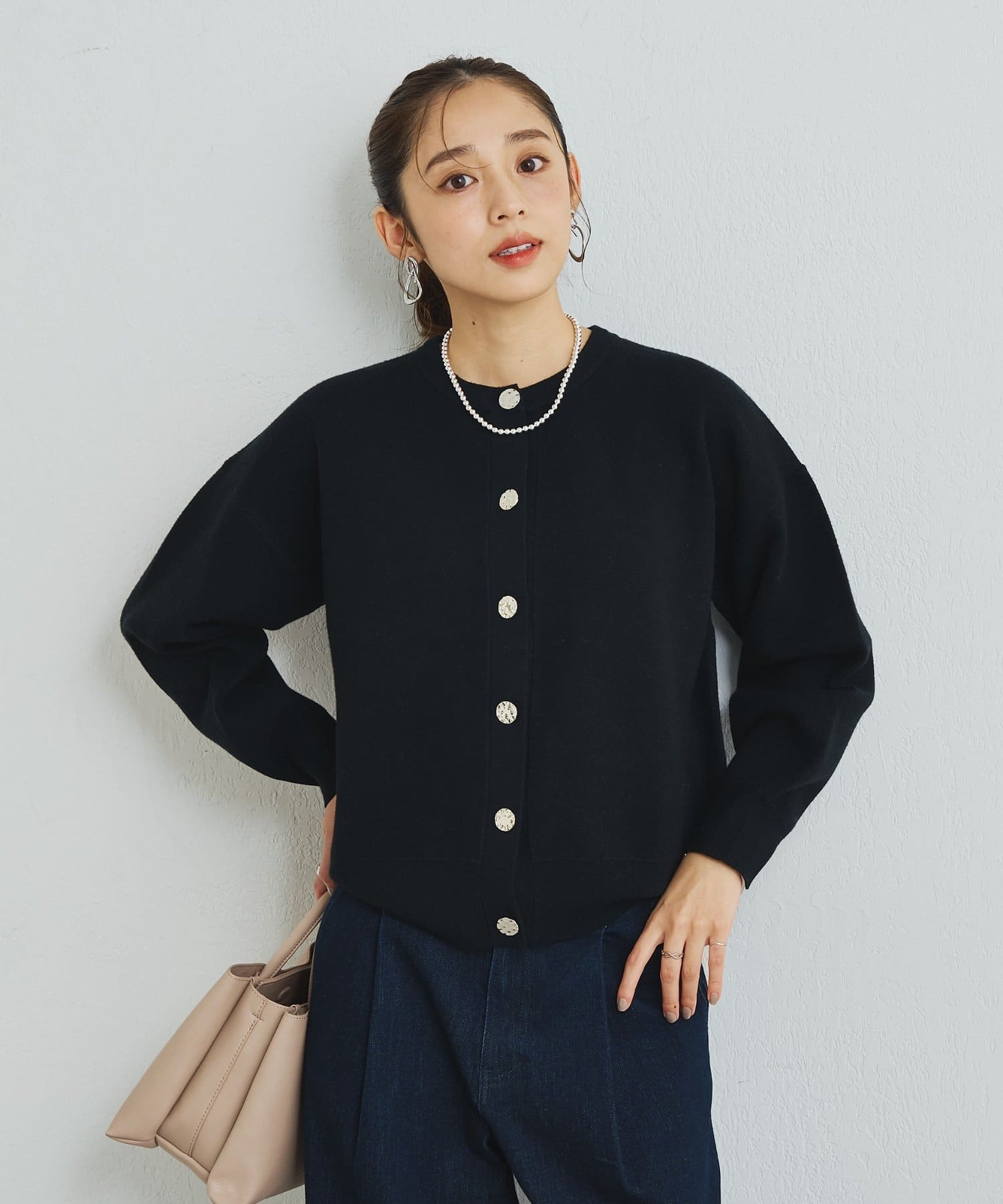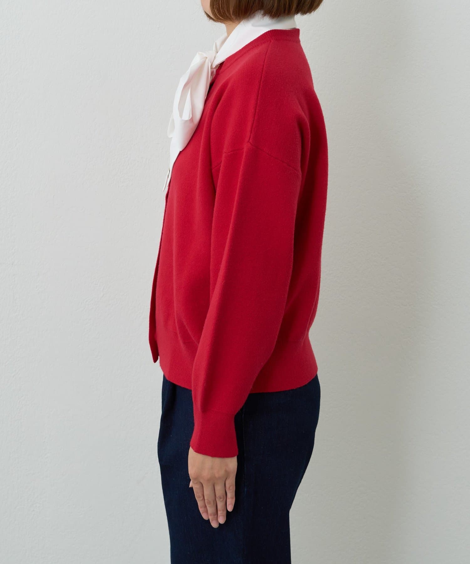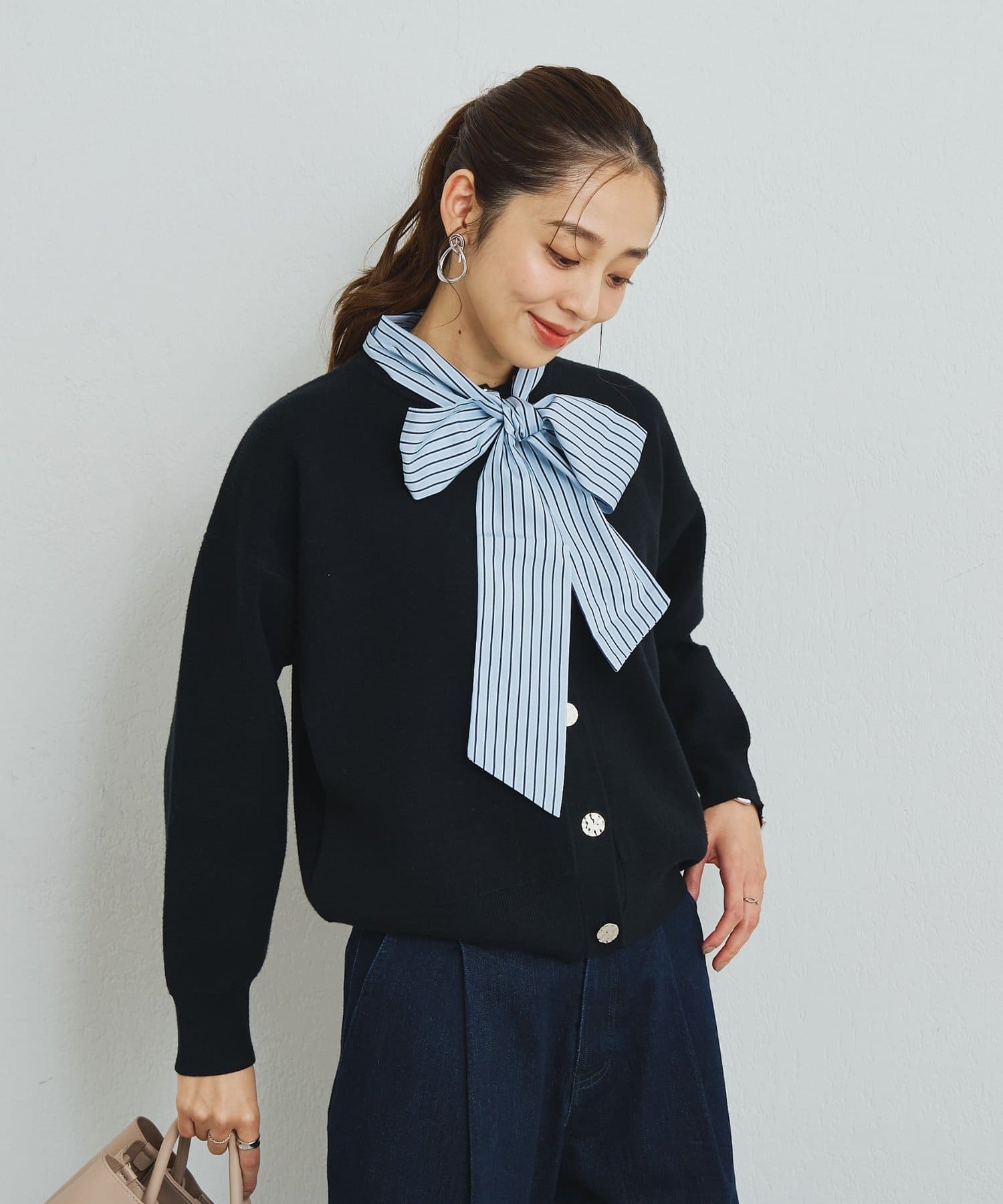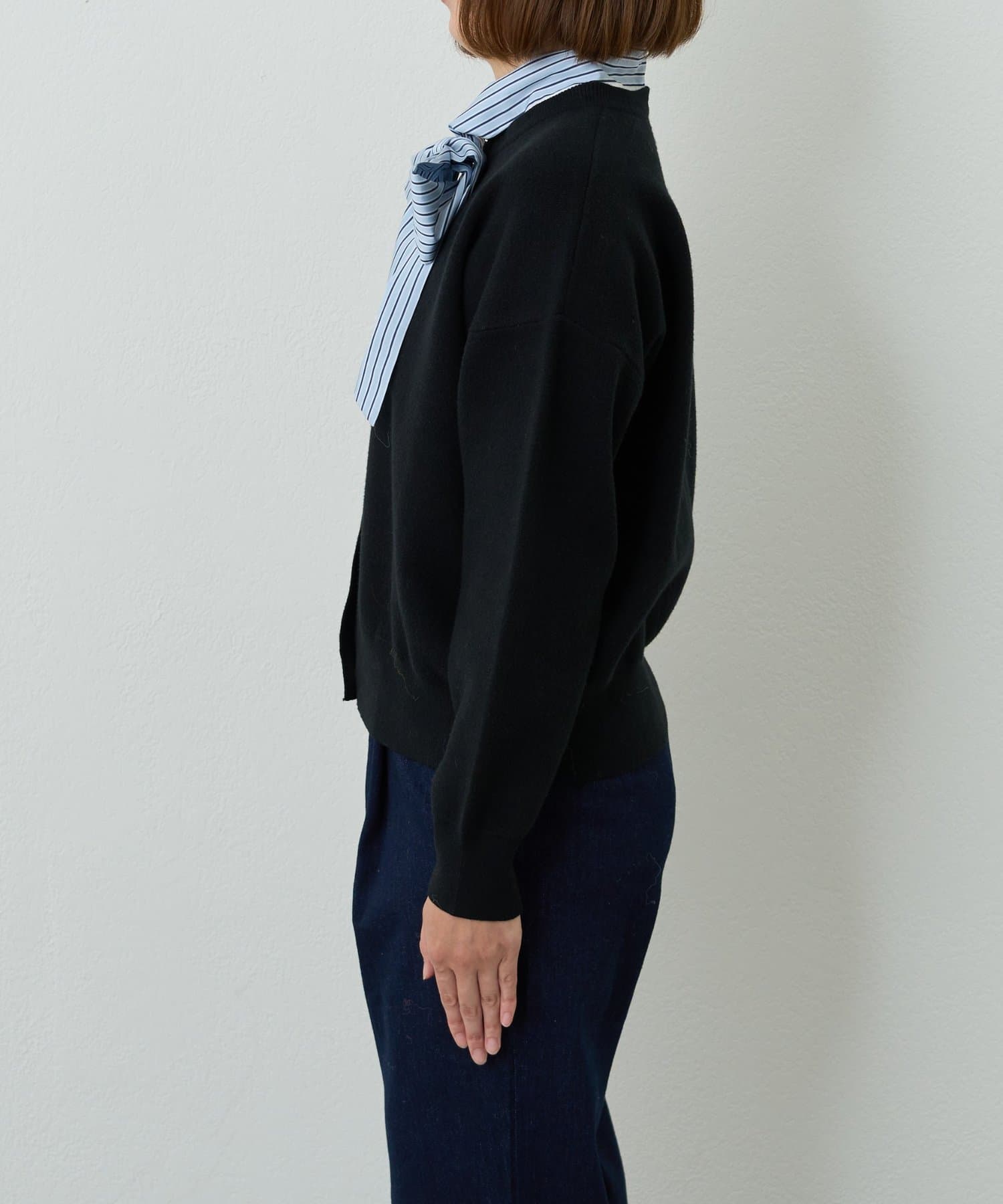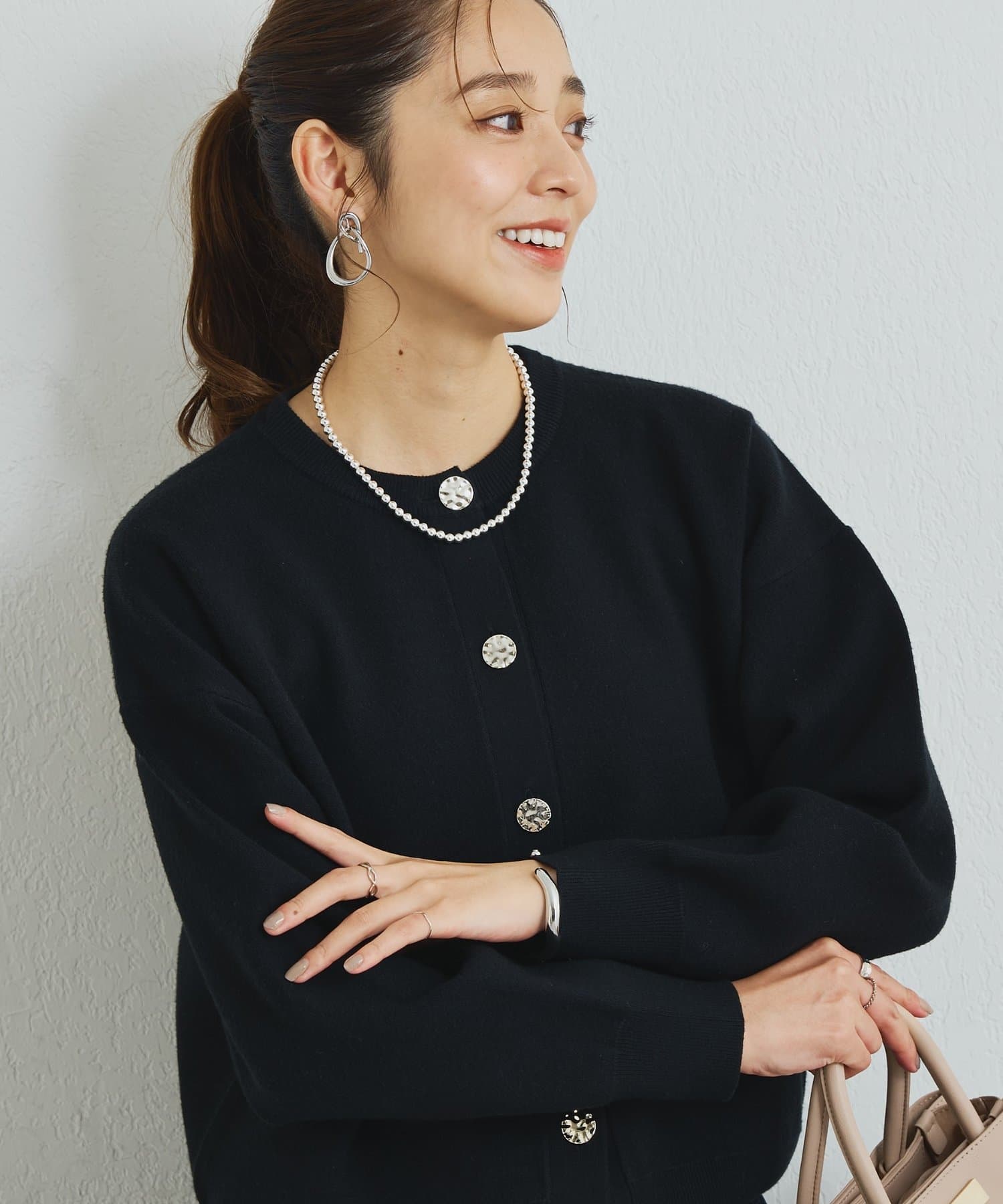 ・外してシンプルなクルーネックカーディガンとして、お手持ちのブラウスやカットソーとのレイヤードも楽しめます。