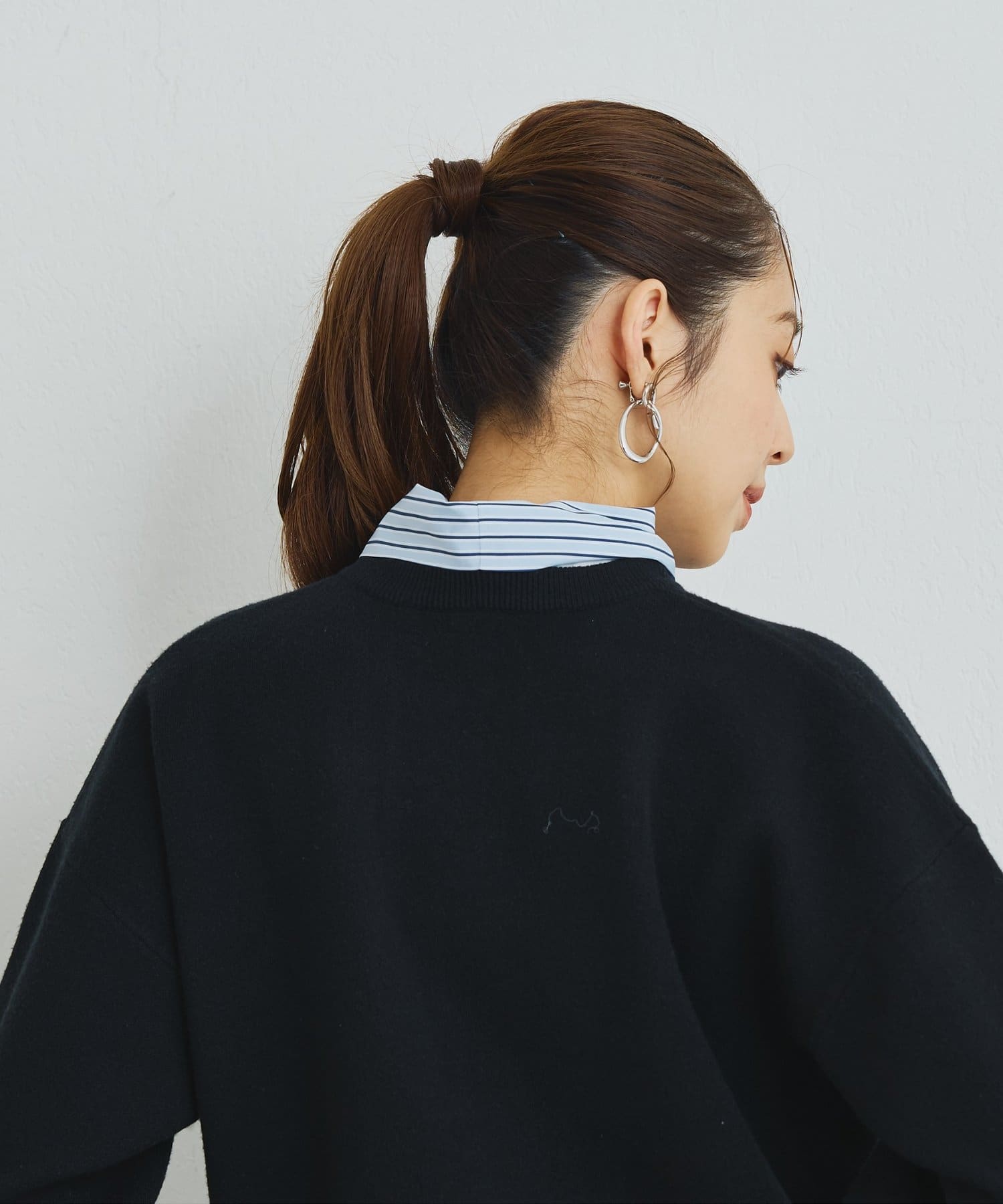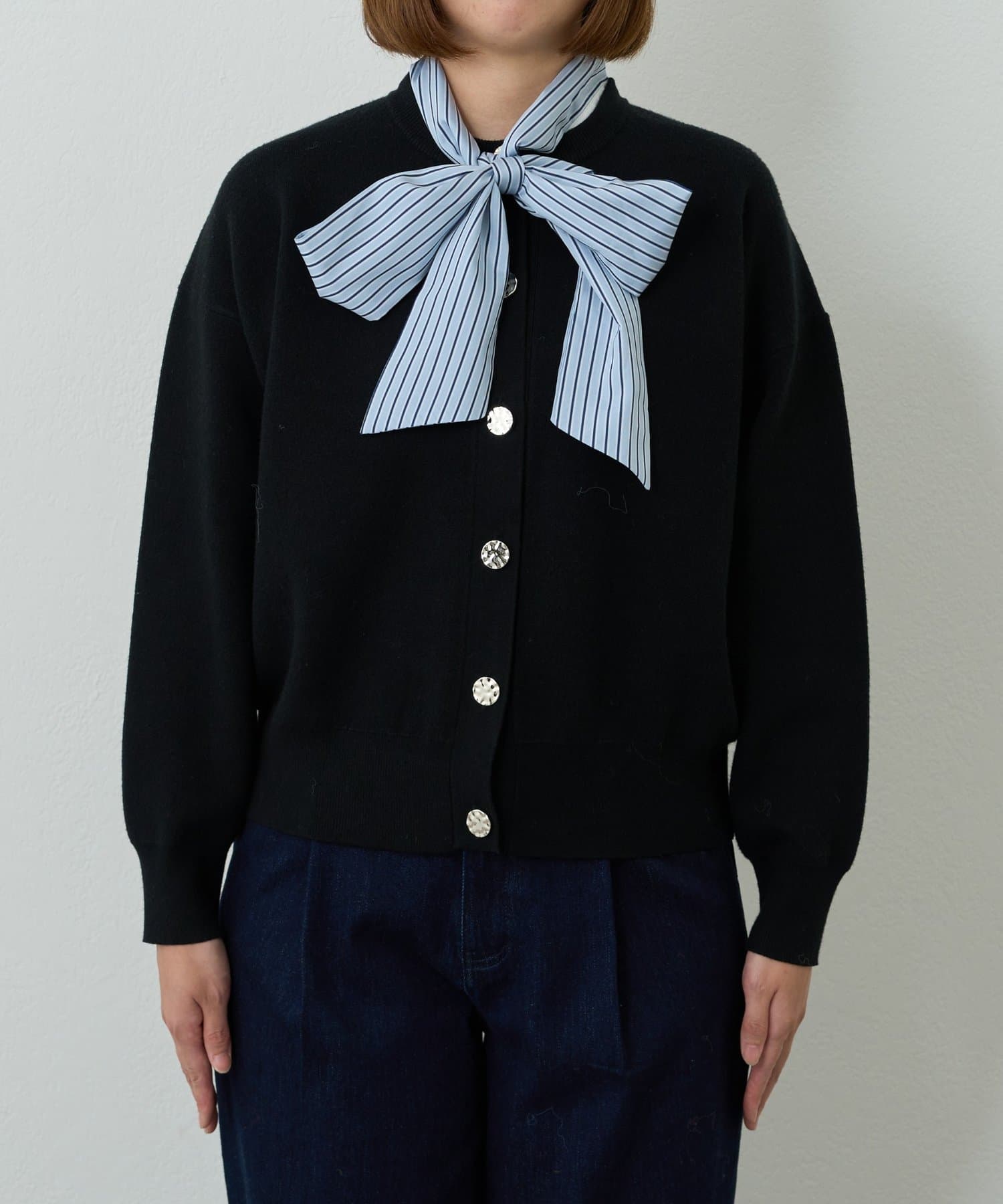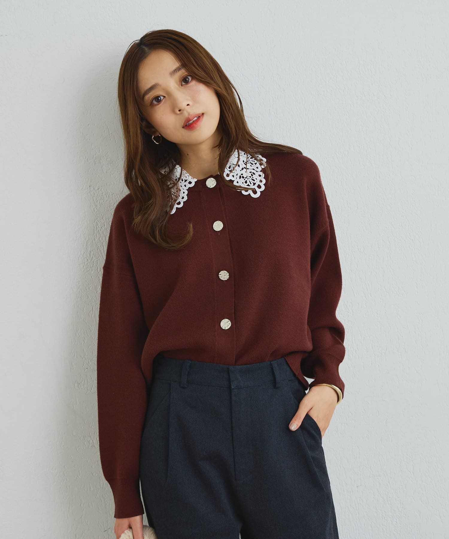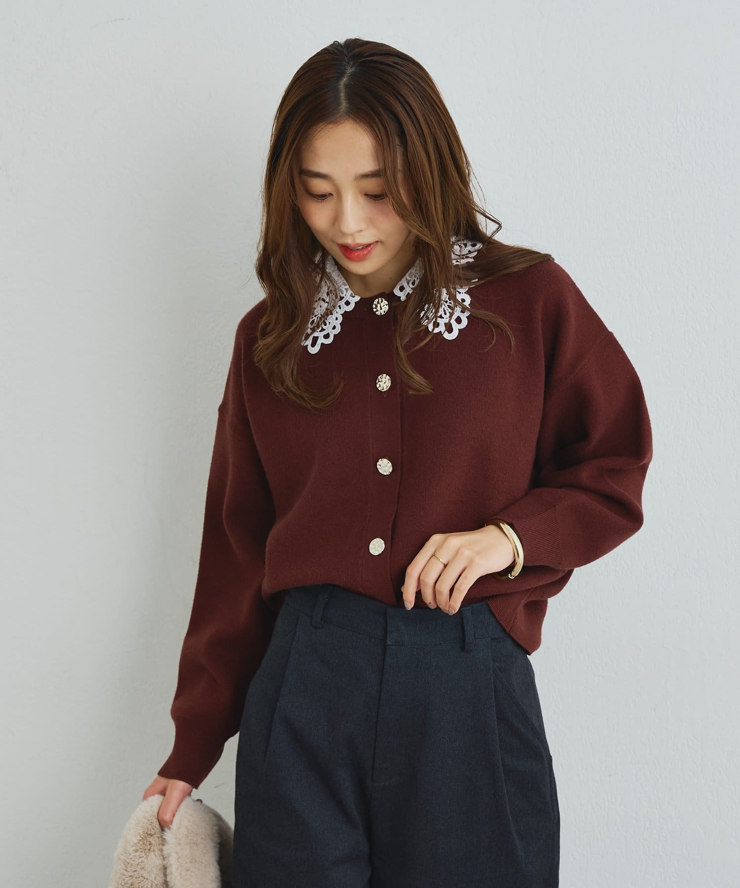 ・外してシンプルなクルーネックカーディガンとして、お手持ちのブラウスやカットソーとのレイヤードも楽しめます。