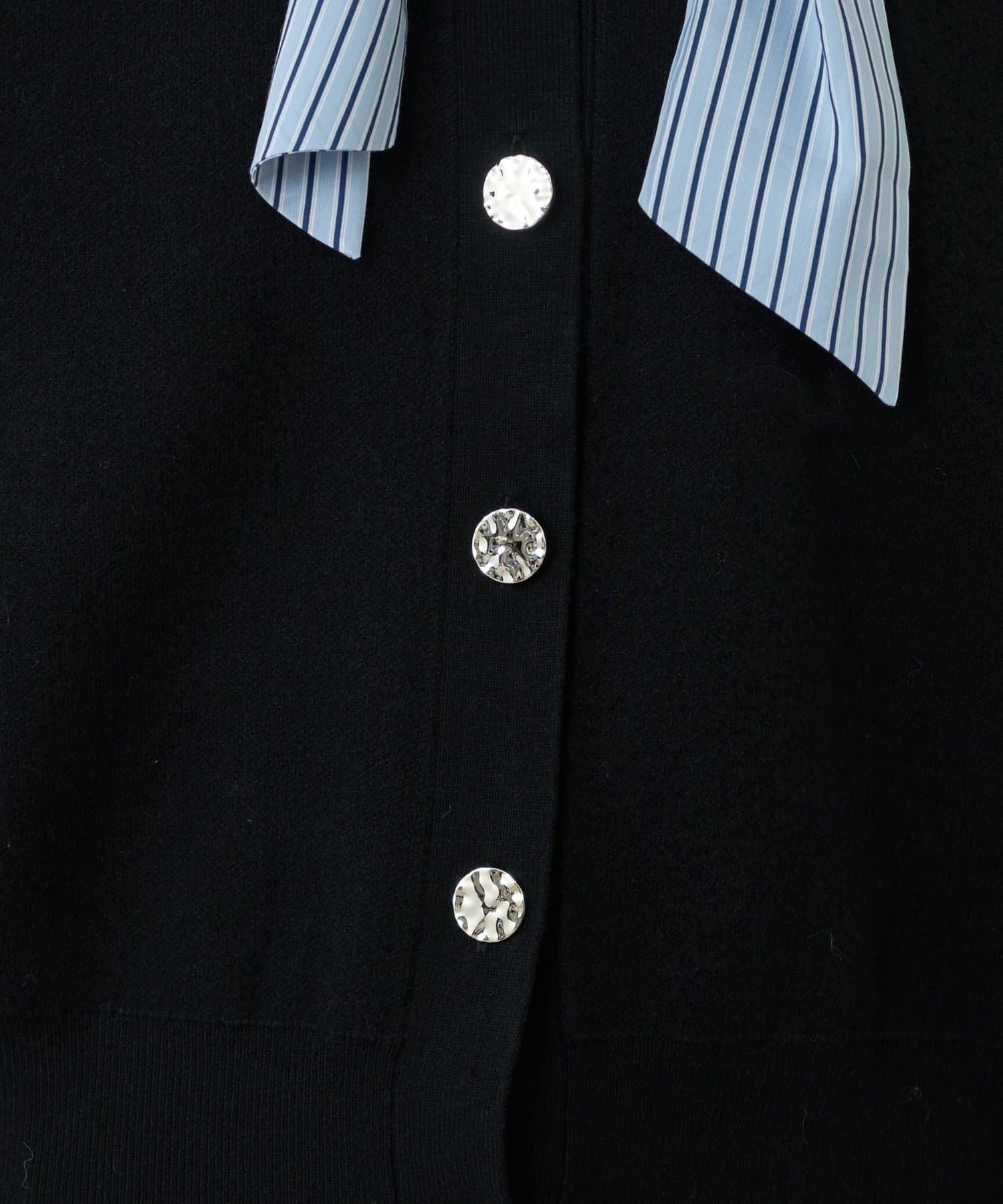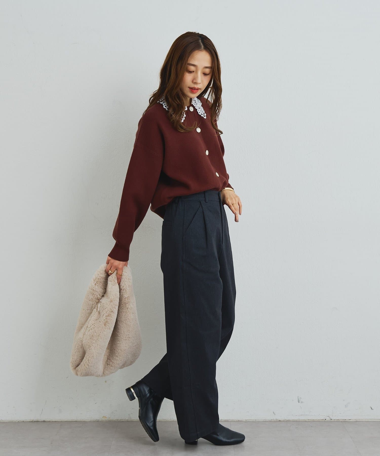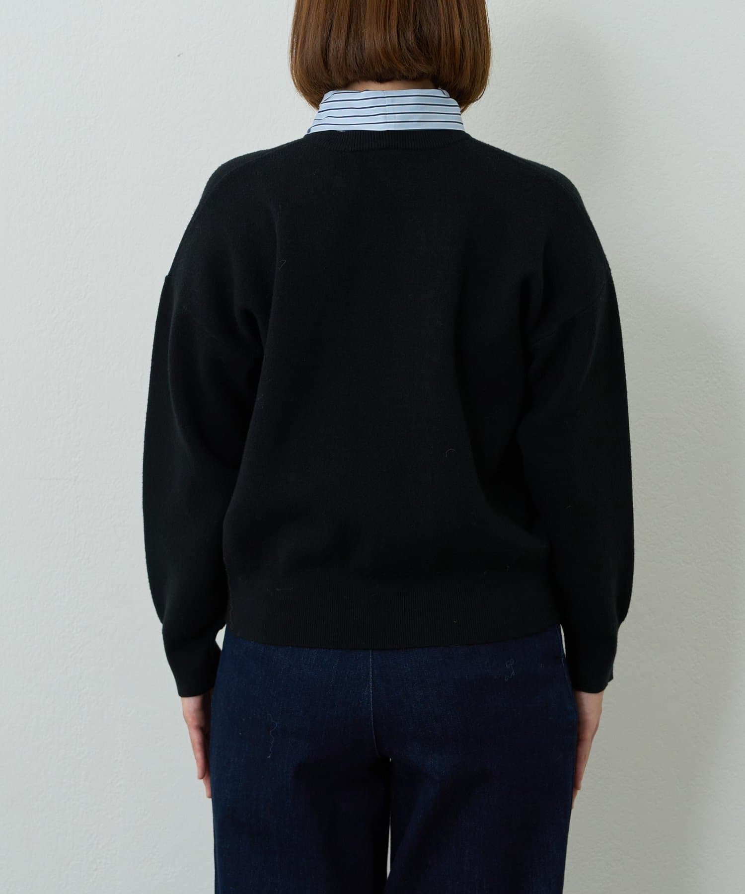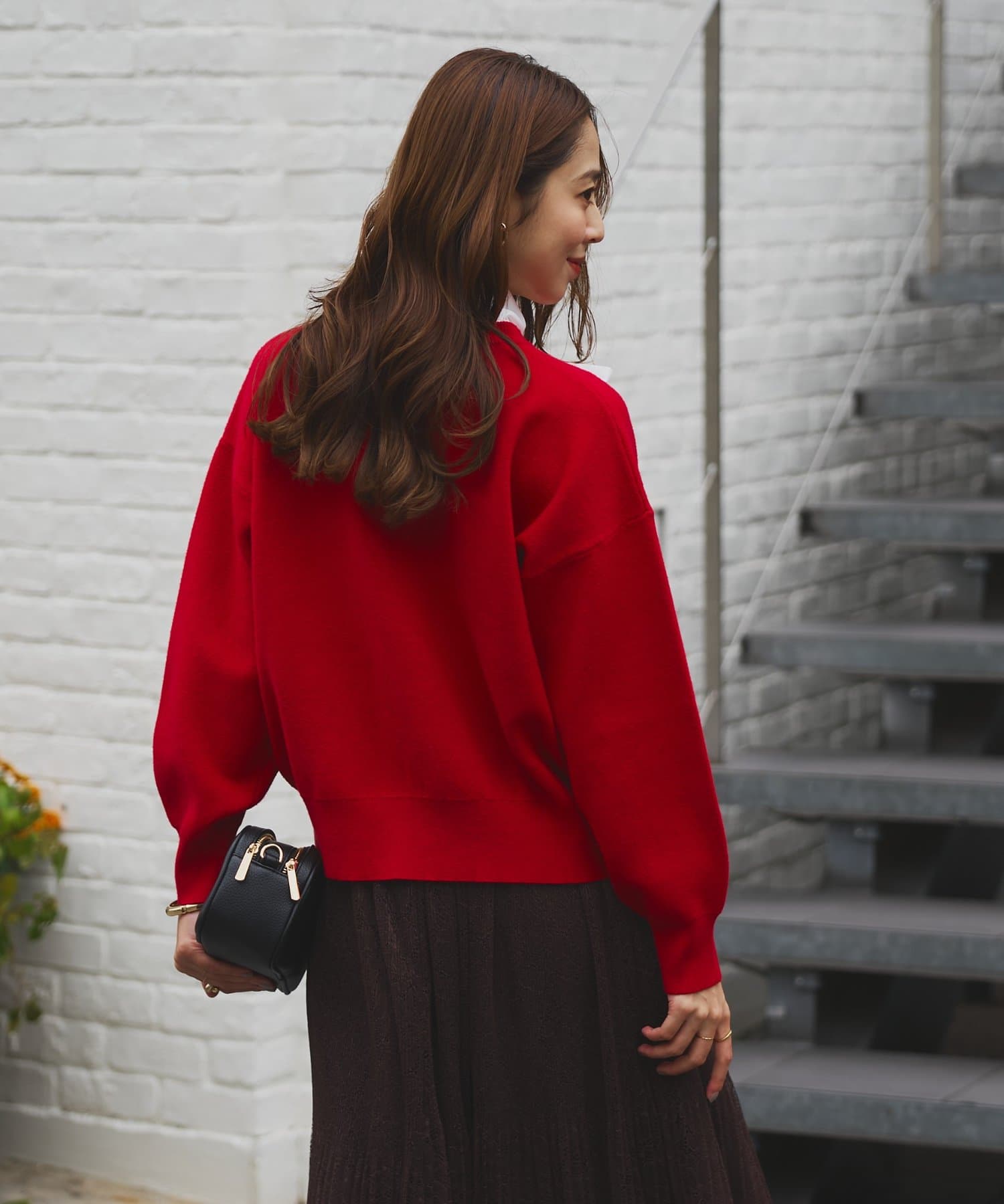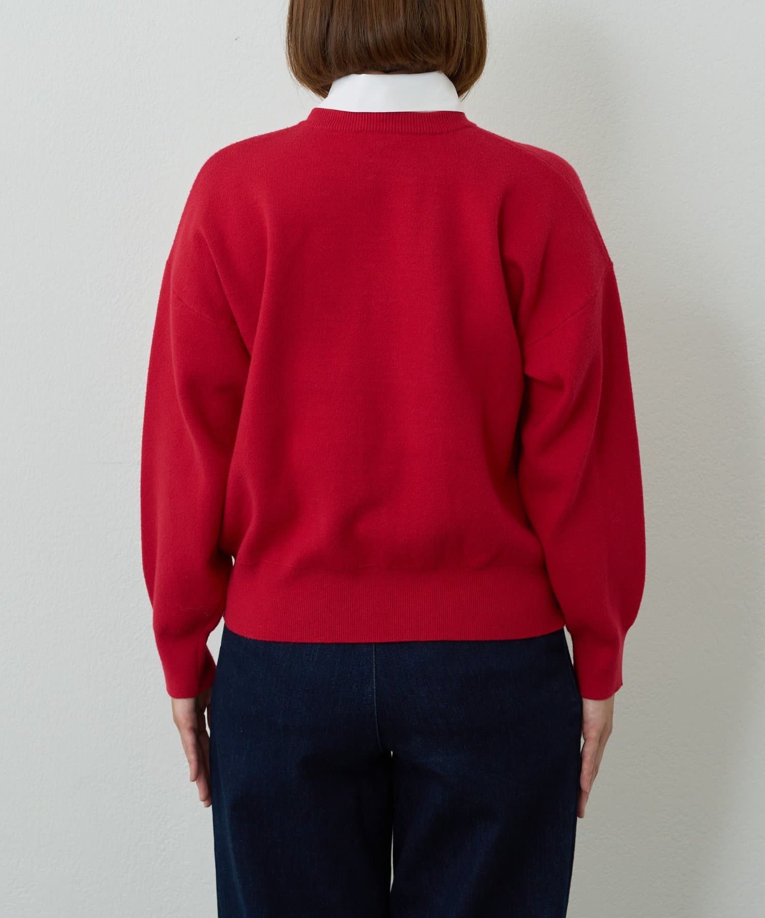 ・外してシンプルなクルーネックカーディガンとして、お手持ちのブラウスやカットソーとのレイヤードも楽しめます。