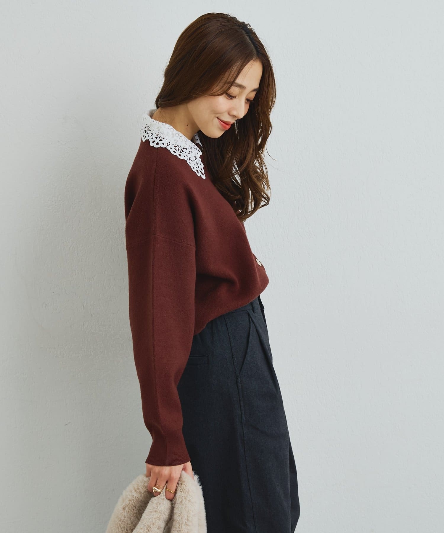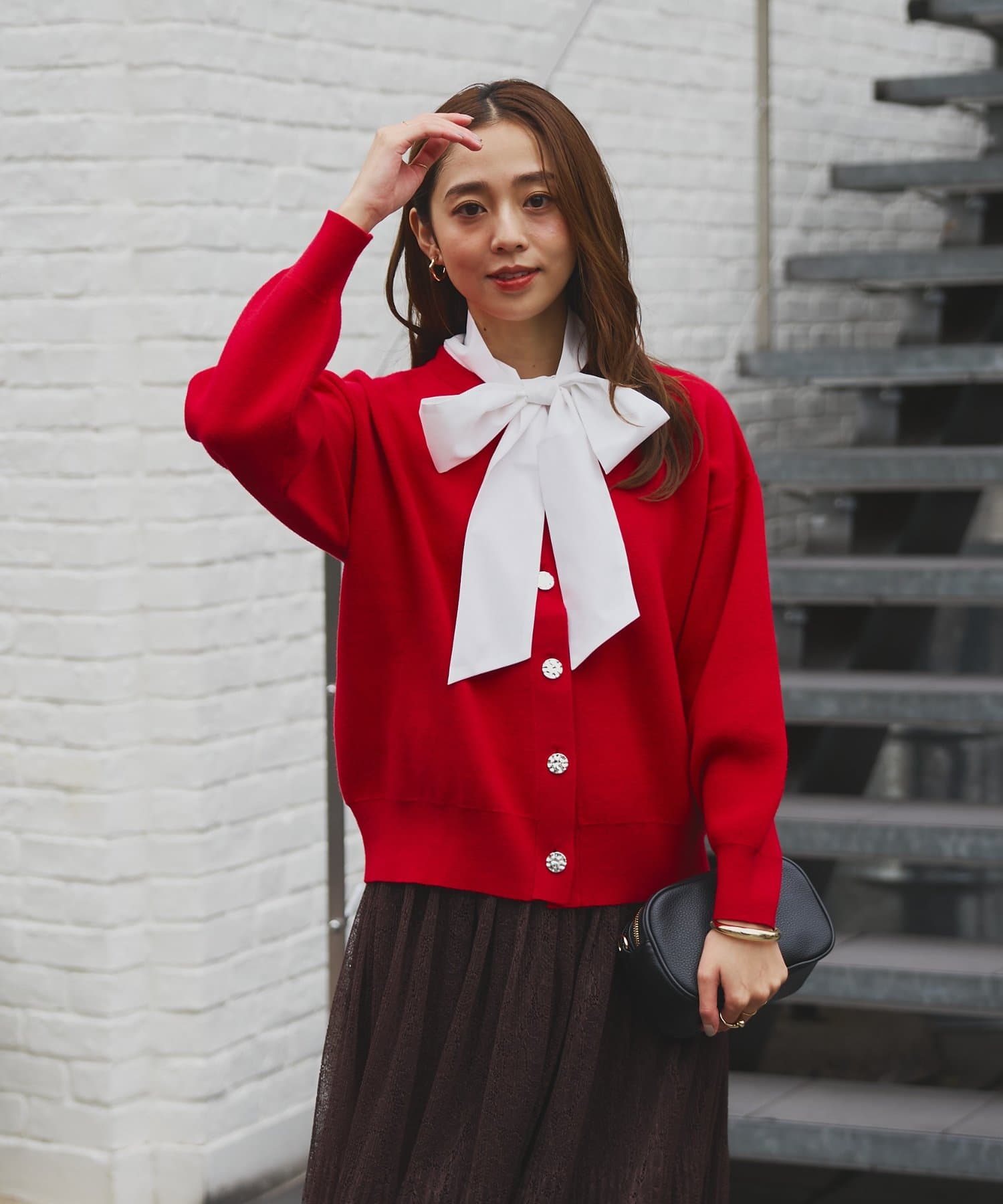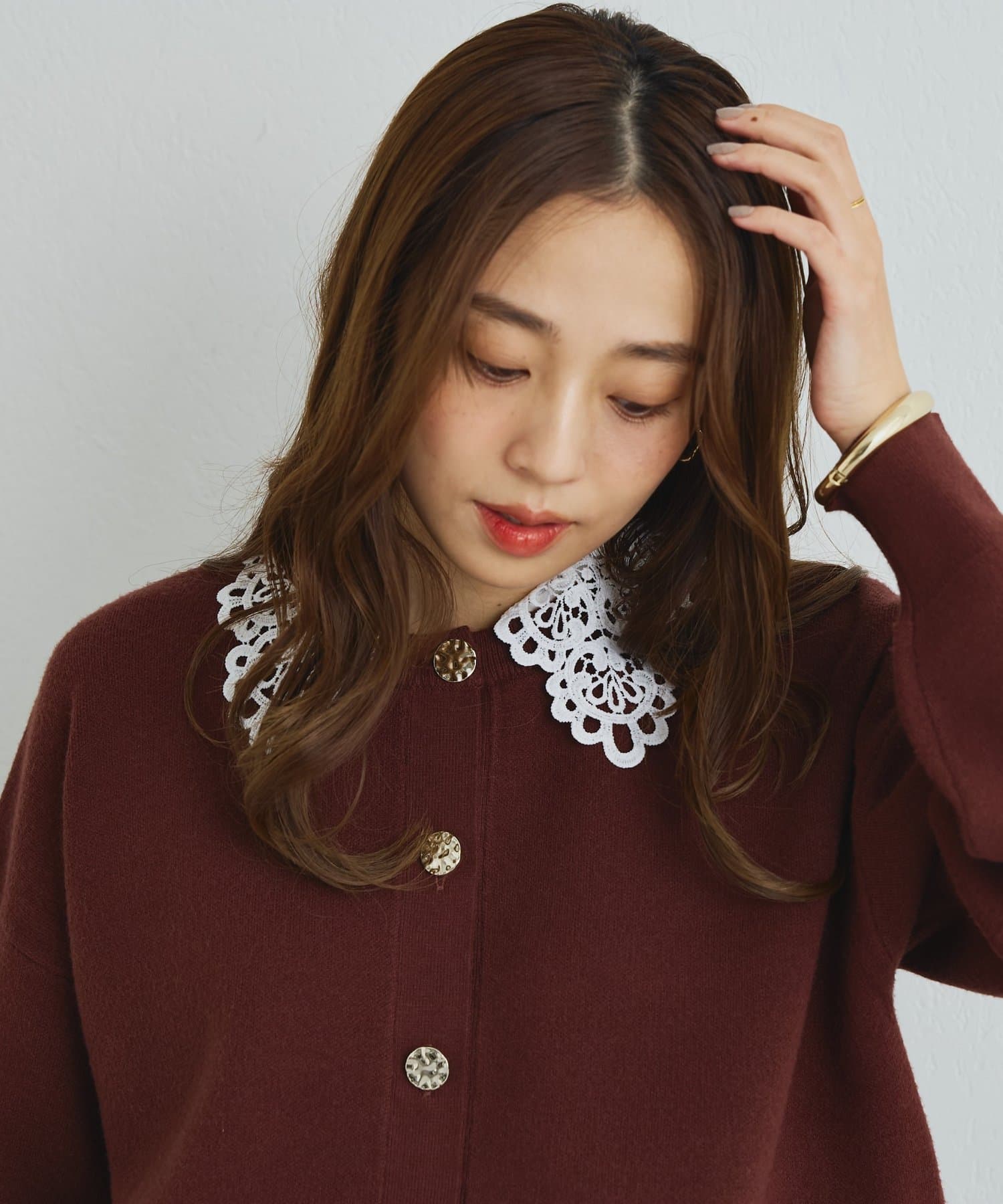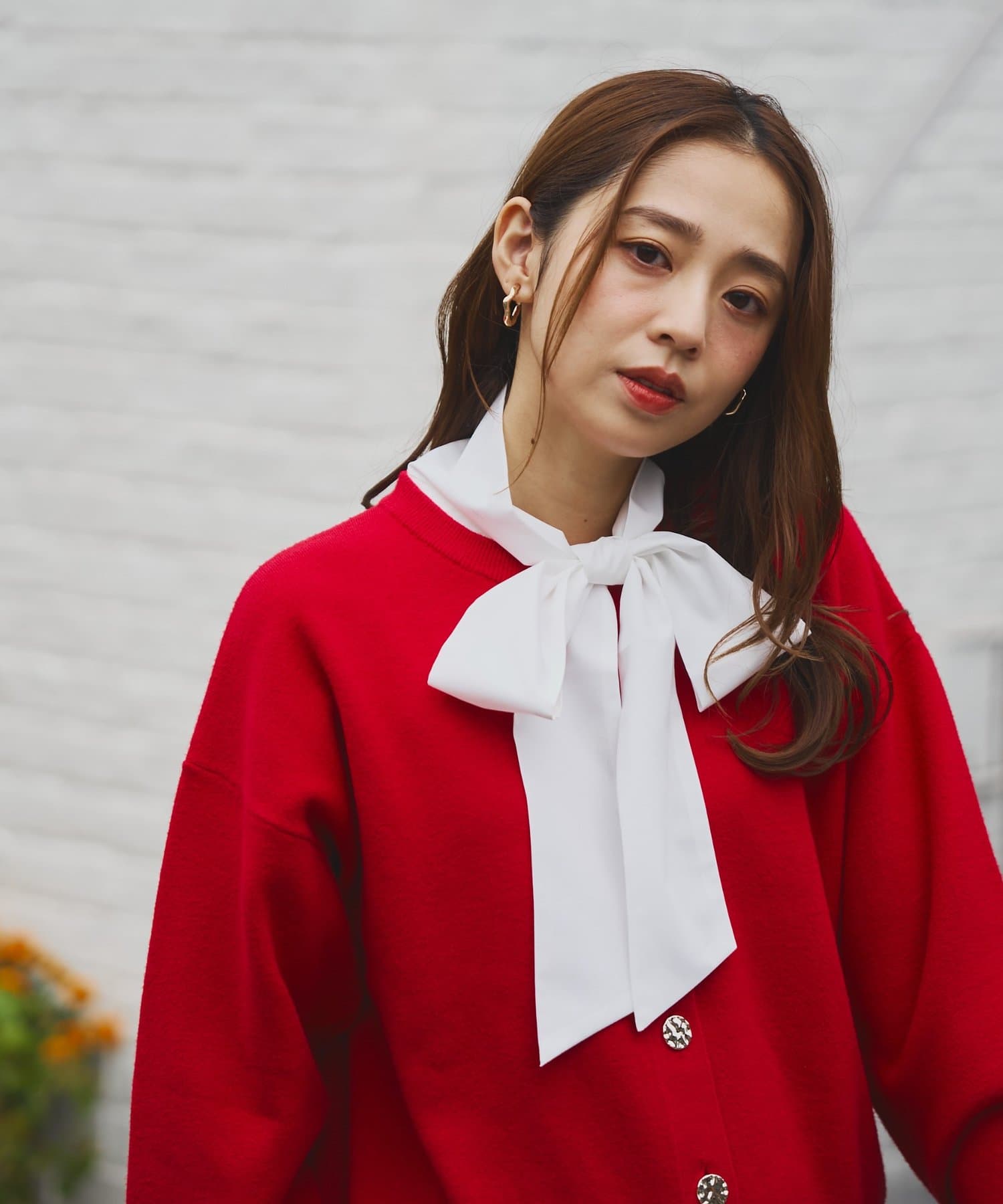 《大人フェミニンな雰囲気に》2WAYレース襟ボウタイカーデ