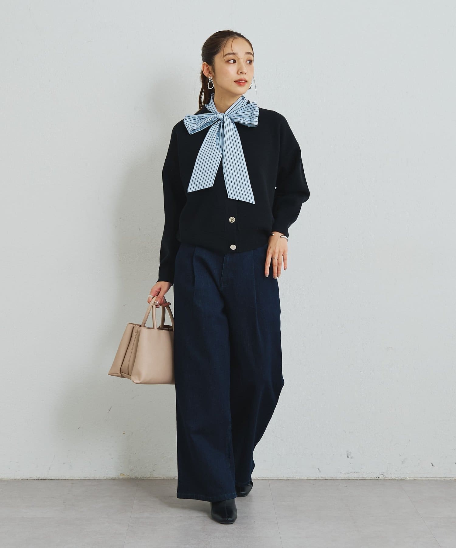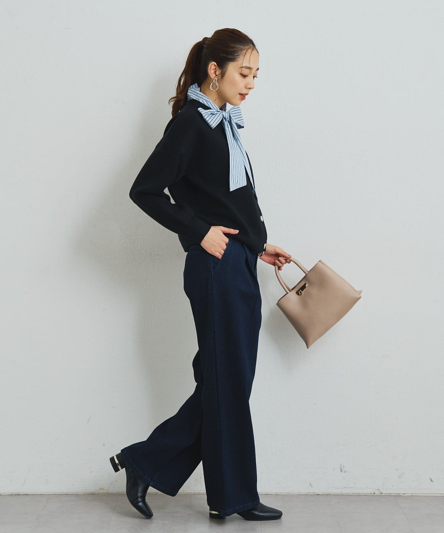 デニムやワイドパンツと合わせると、カジュアルダウンにまとめてくれます。