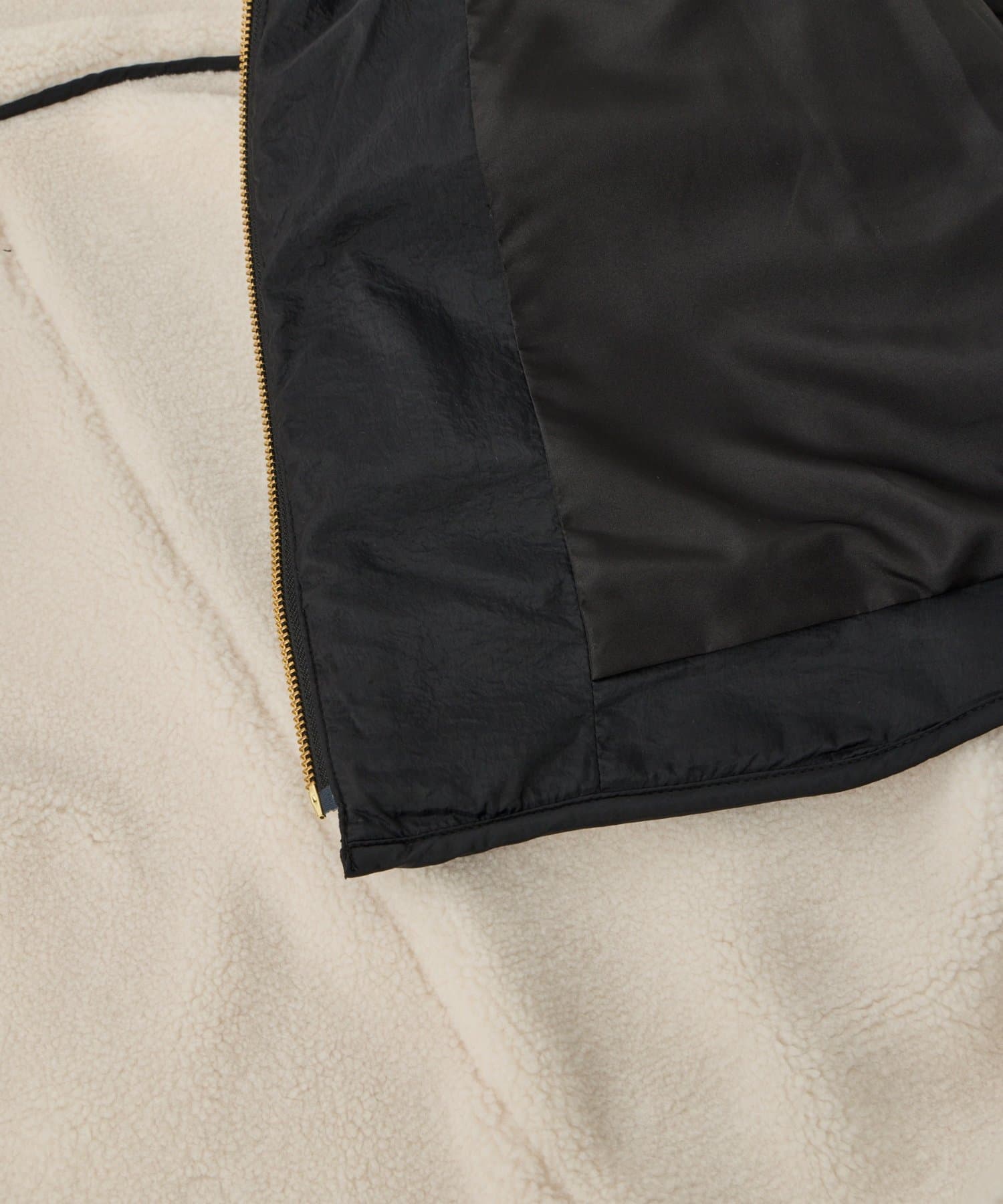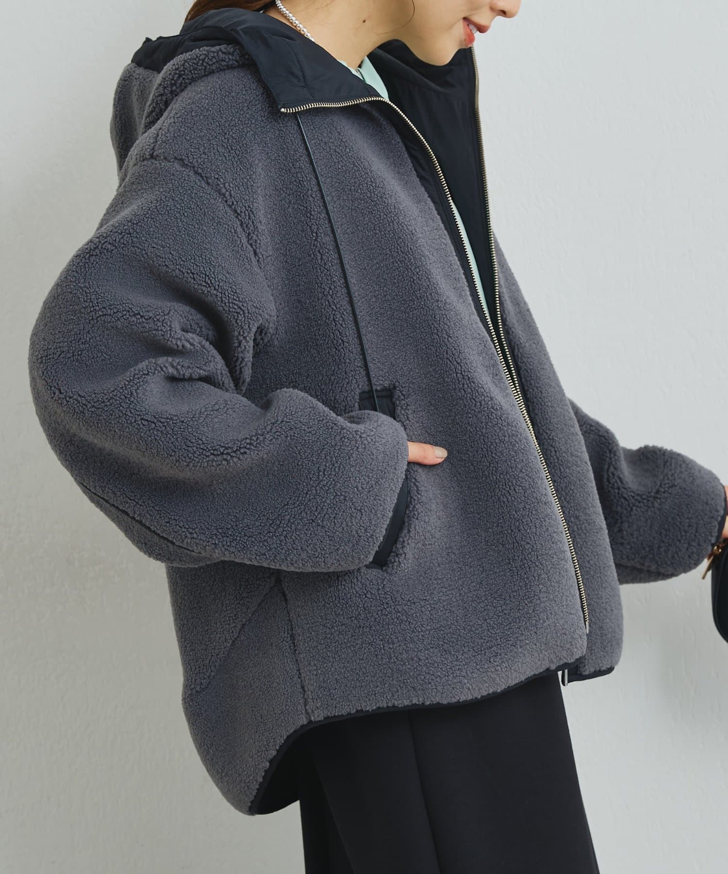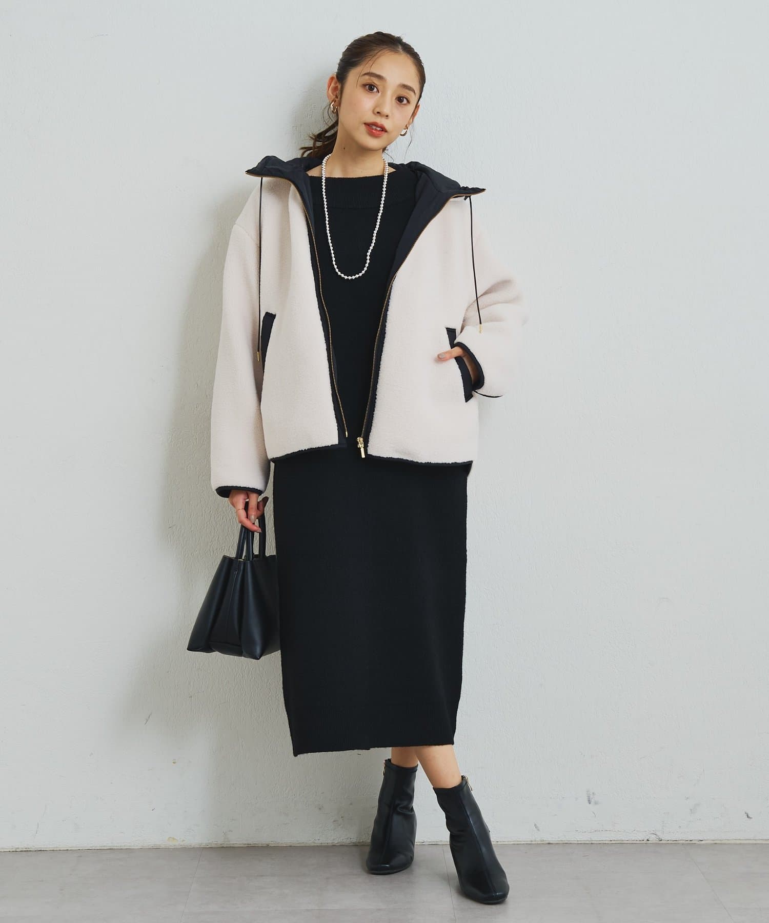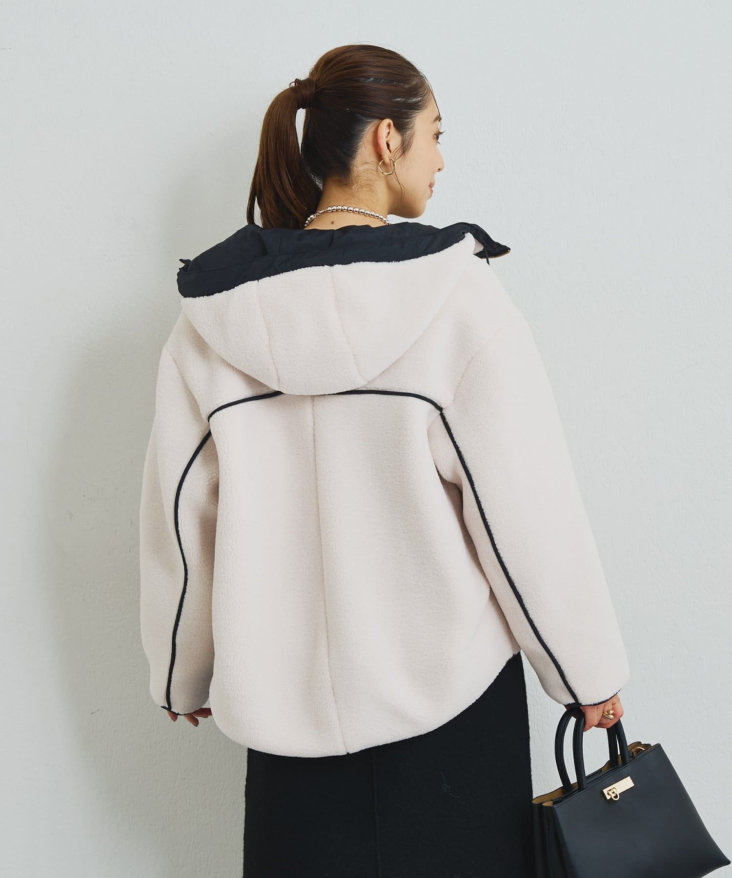 ・あたたかみのあるボア素材で仕立てられた、配色デザインがお洒落なコート♪