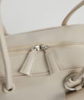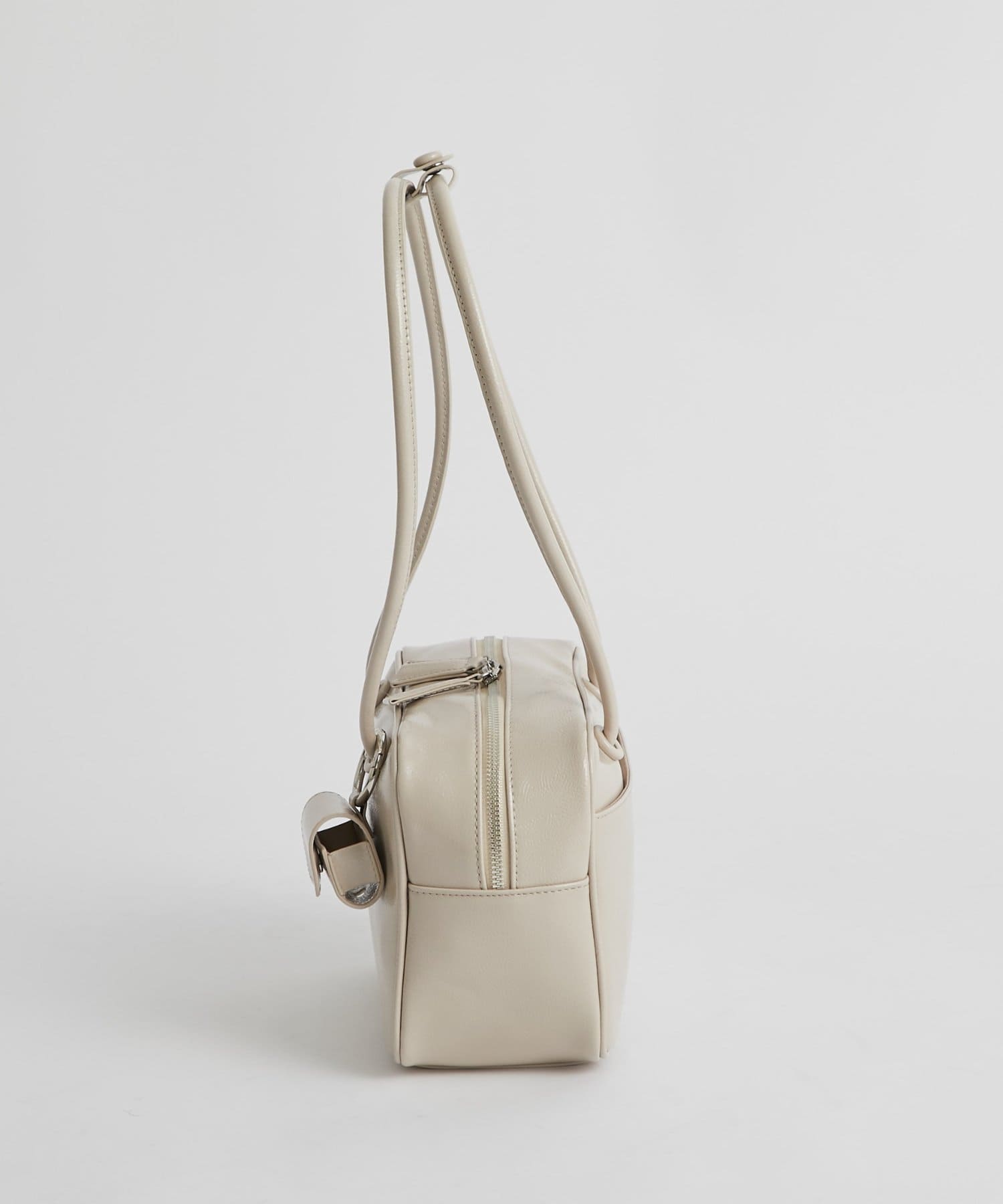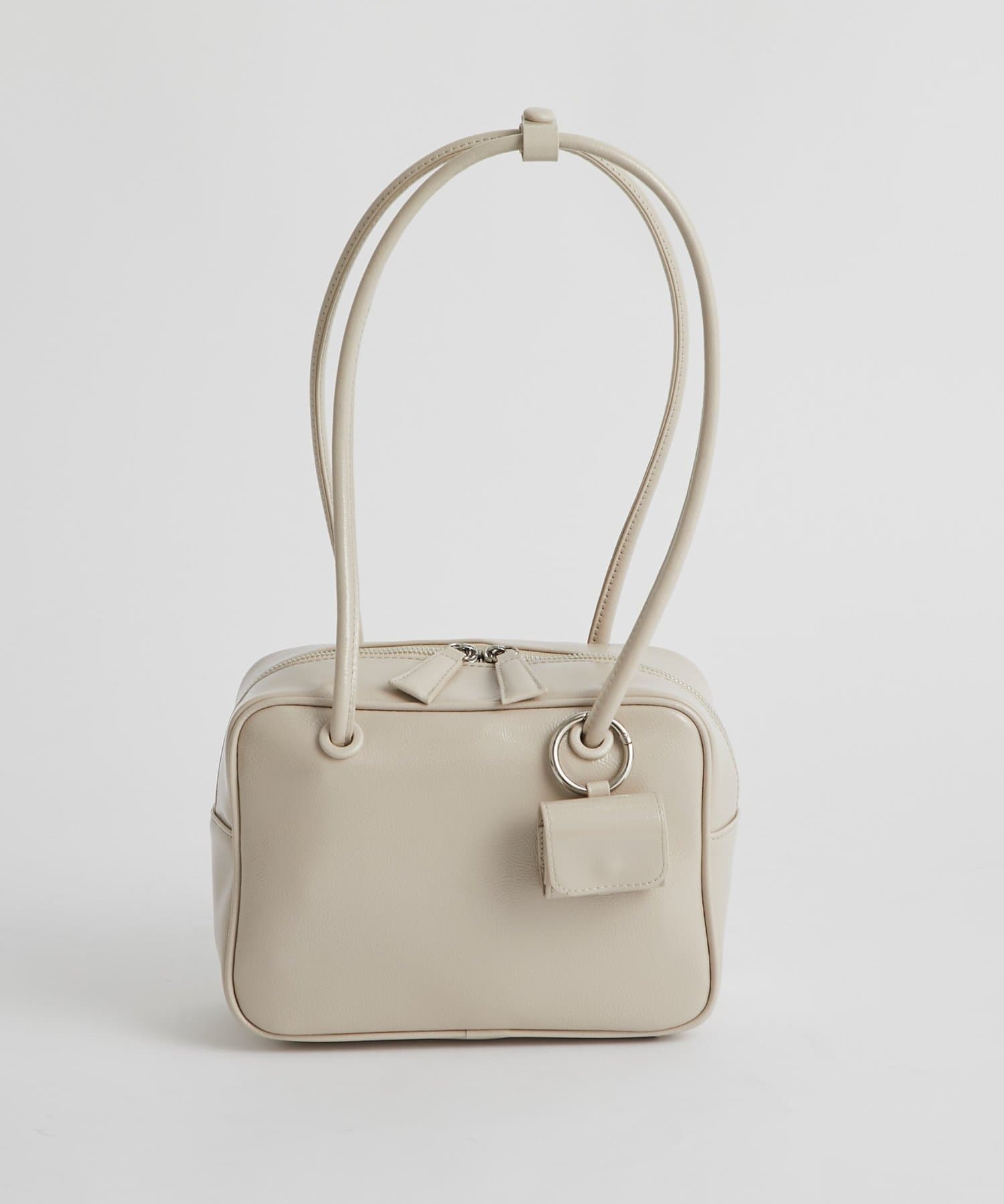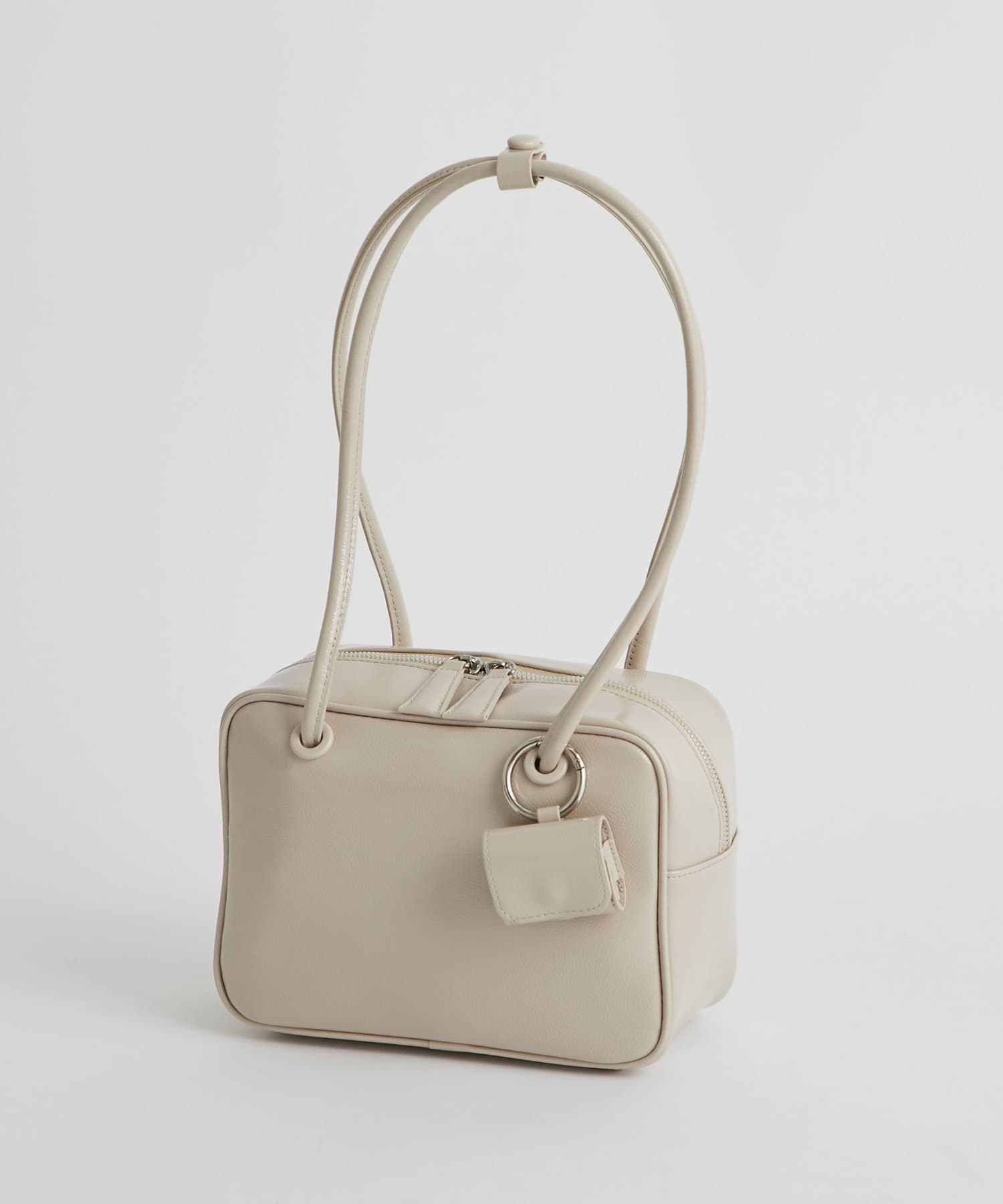 ・バッグの持ち手にさりげなくあしらわれたミニポーチが、デザインのアクセントに。