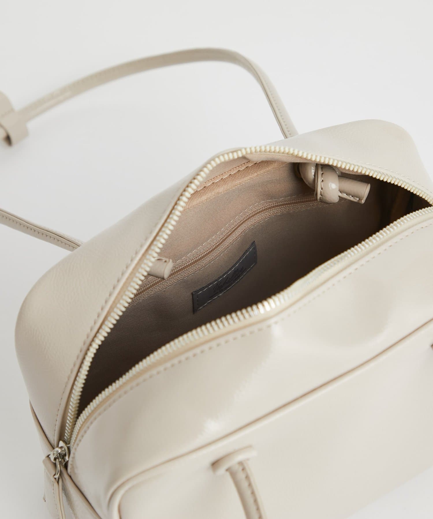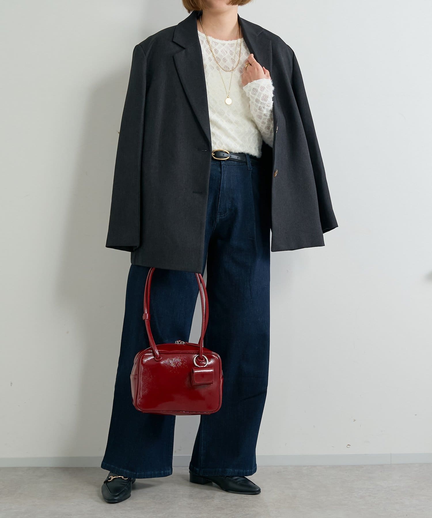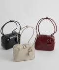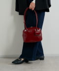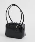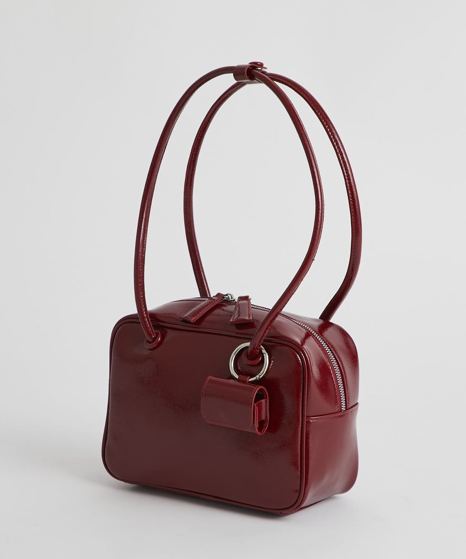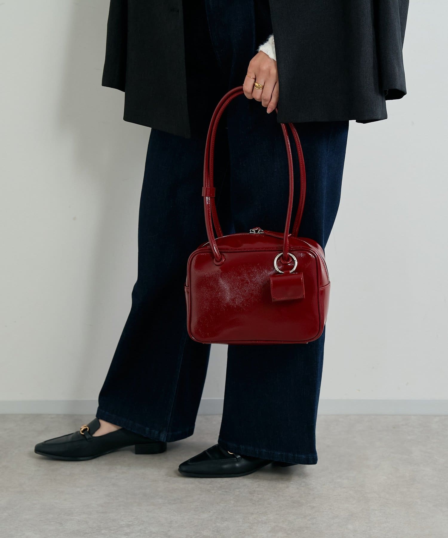 ・深みのあるカラーと艶やかな光沢が、コーディネートに大人の遊び心を添えるスクエアバッグ。