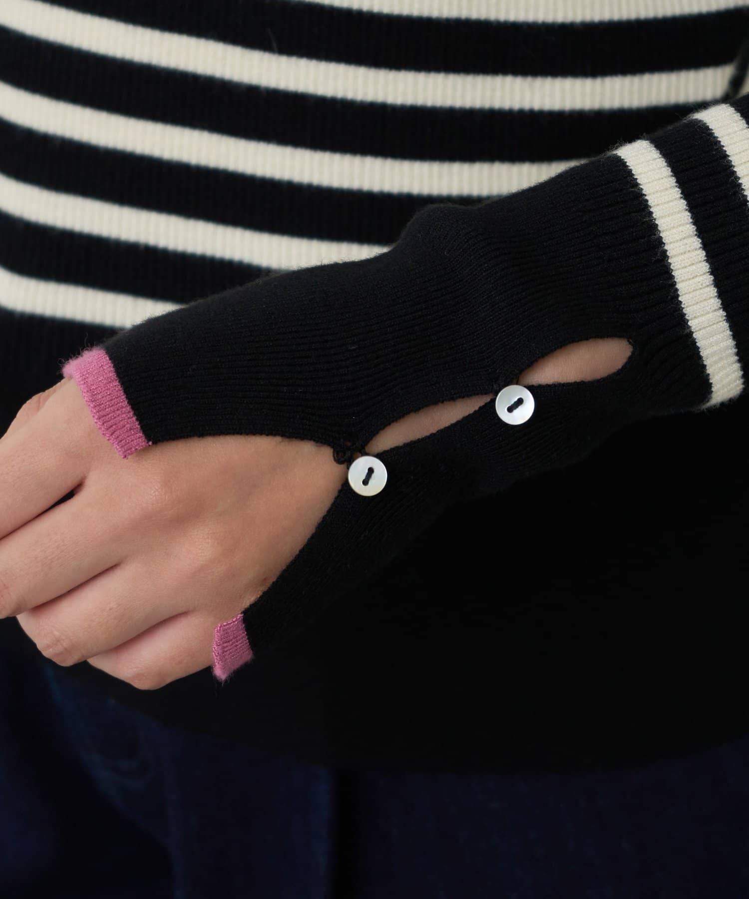 ・アクセントカラーやボタンがほどこされたカフスデザインもポイントになっています。