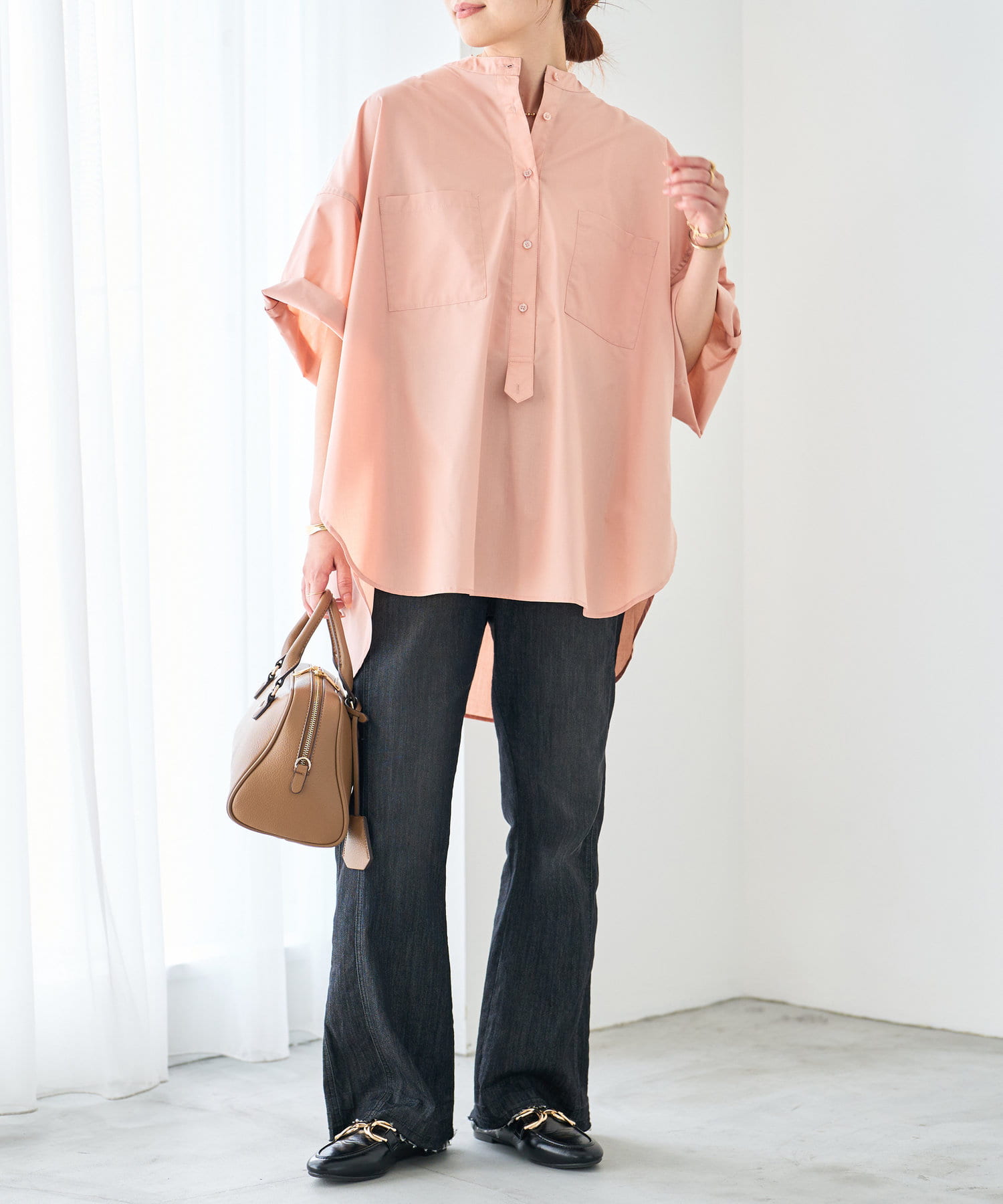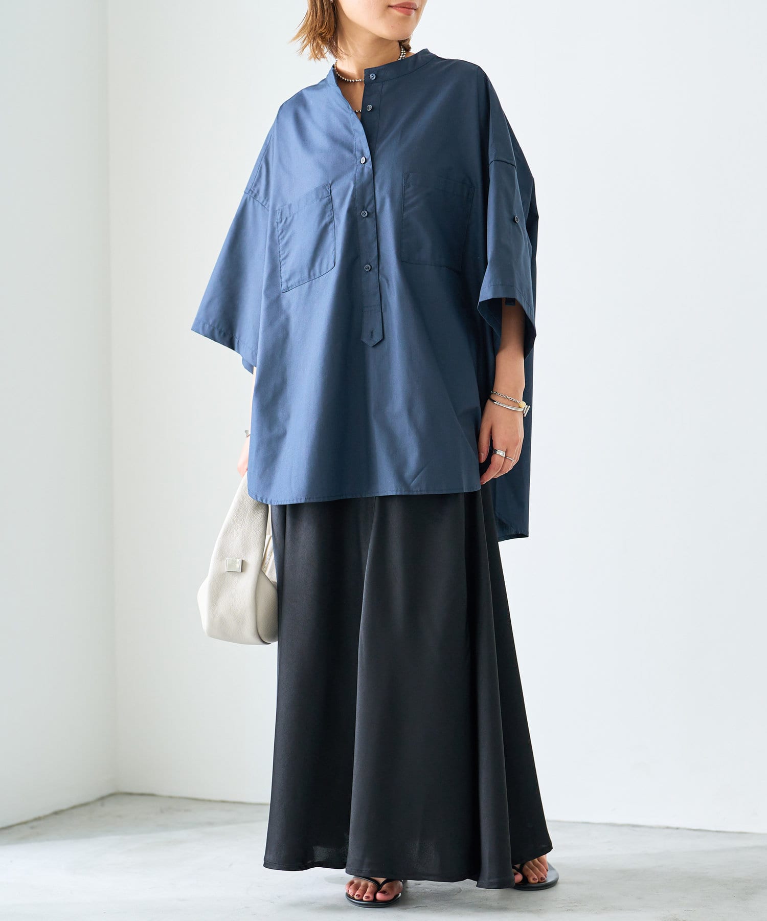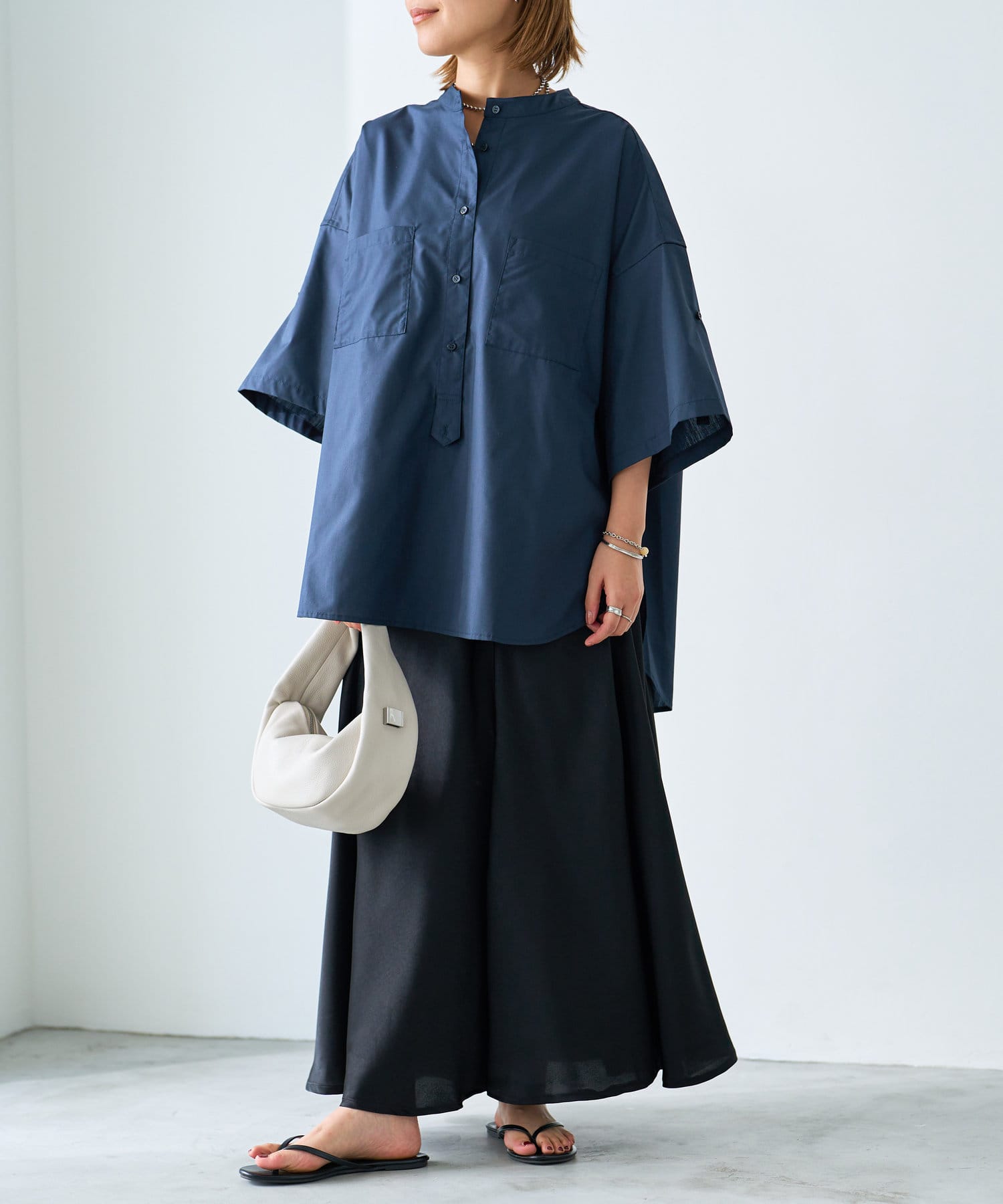 ・ルーズシルエットながらも品よく決まる半袖シャツ