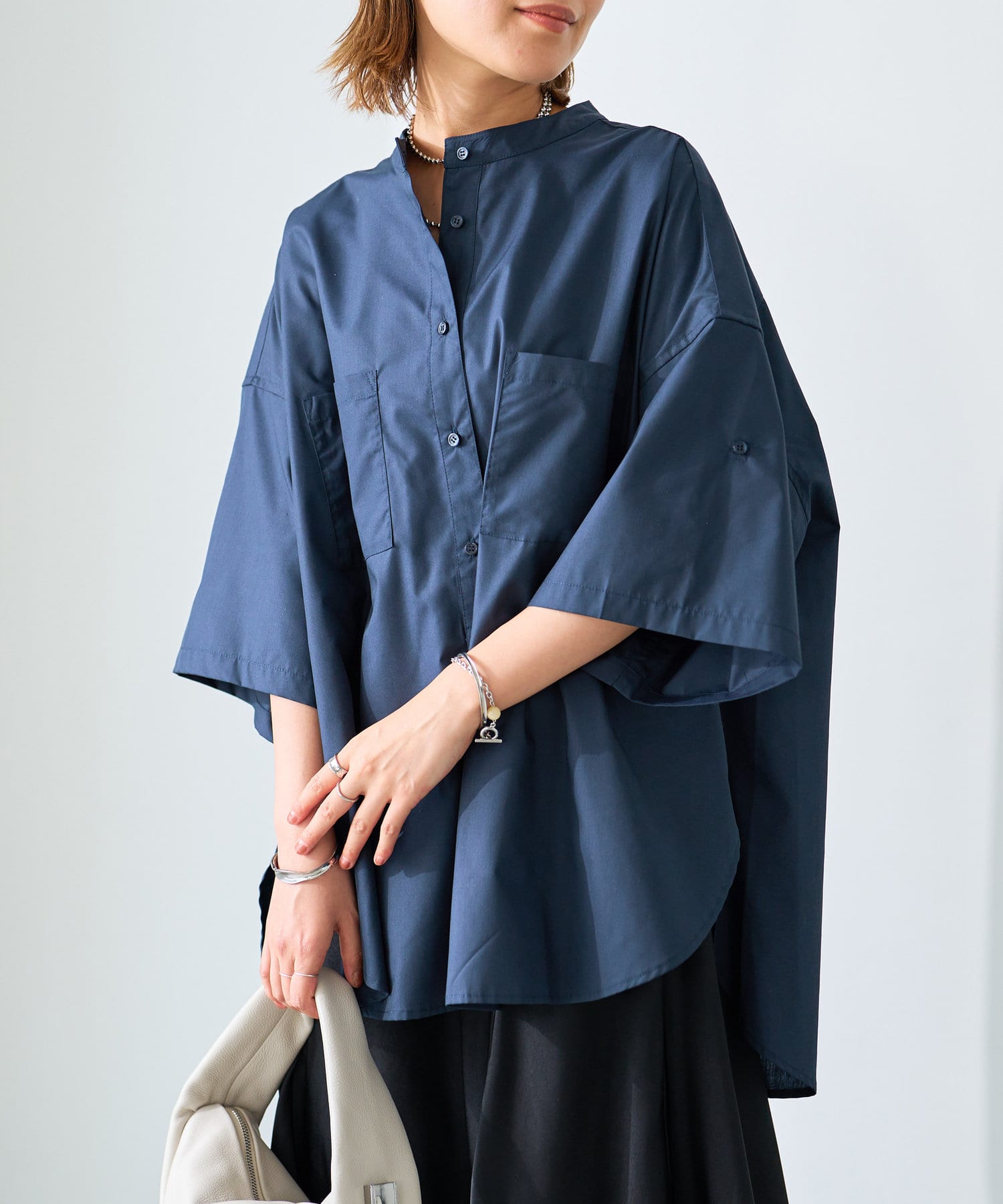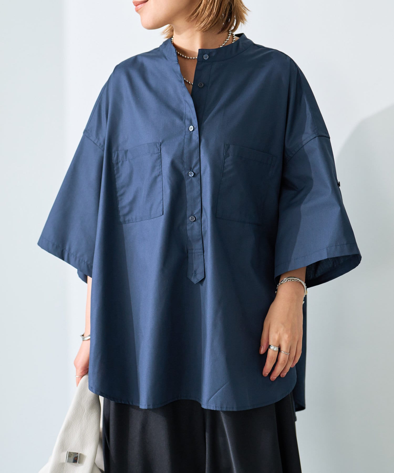 《袖アレンジ・体型カバー◎》ロールアップシャツ