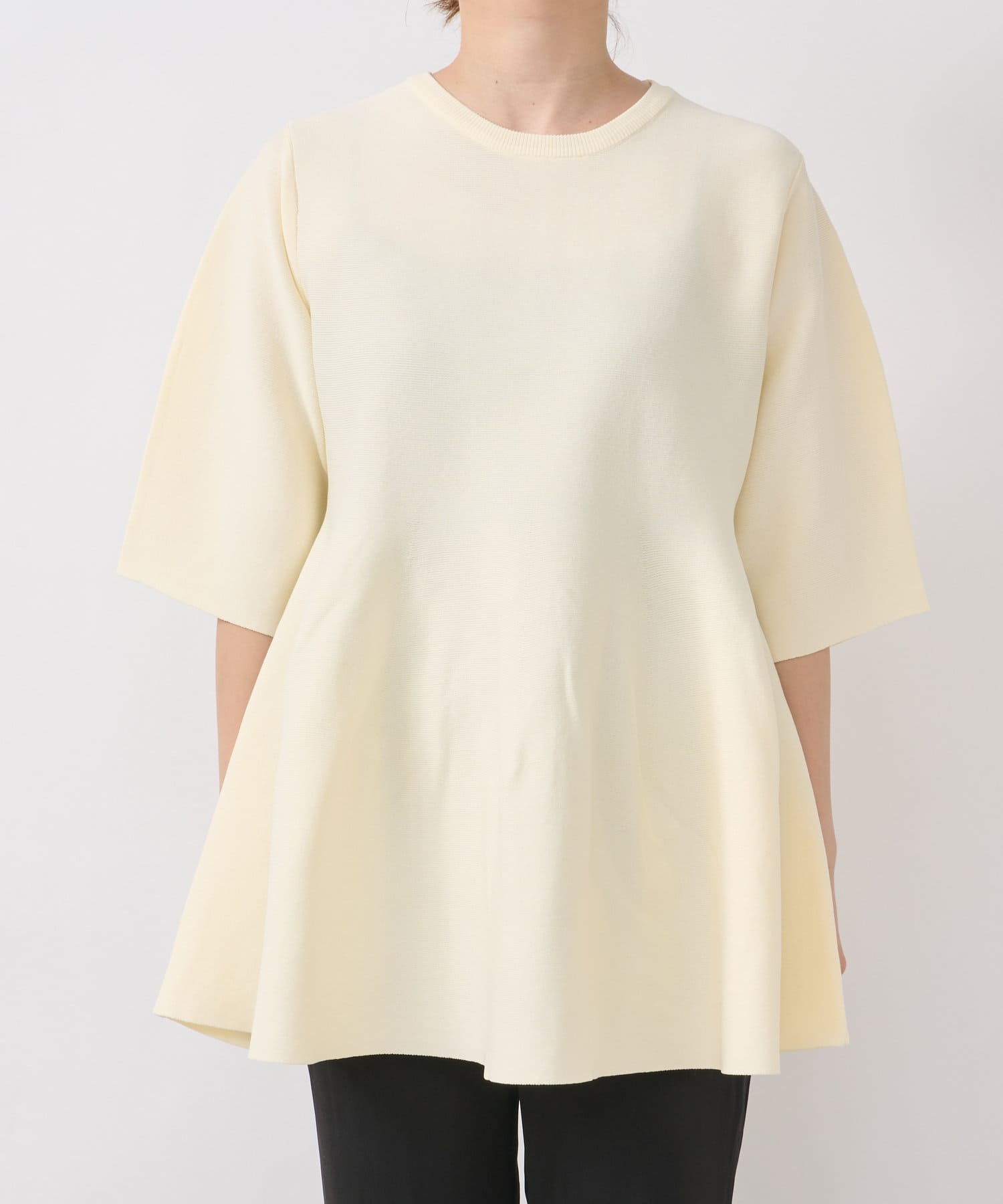 《メリハリ体系カバー◎》ペプラム五分袖ニット