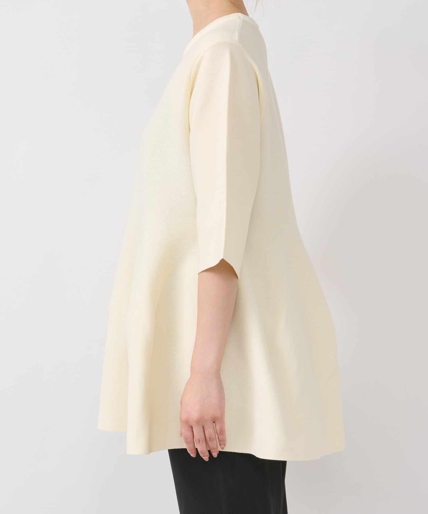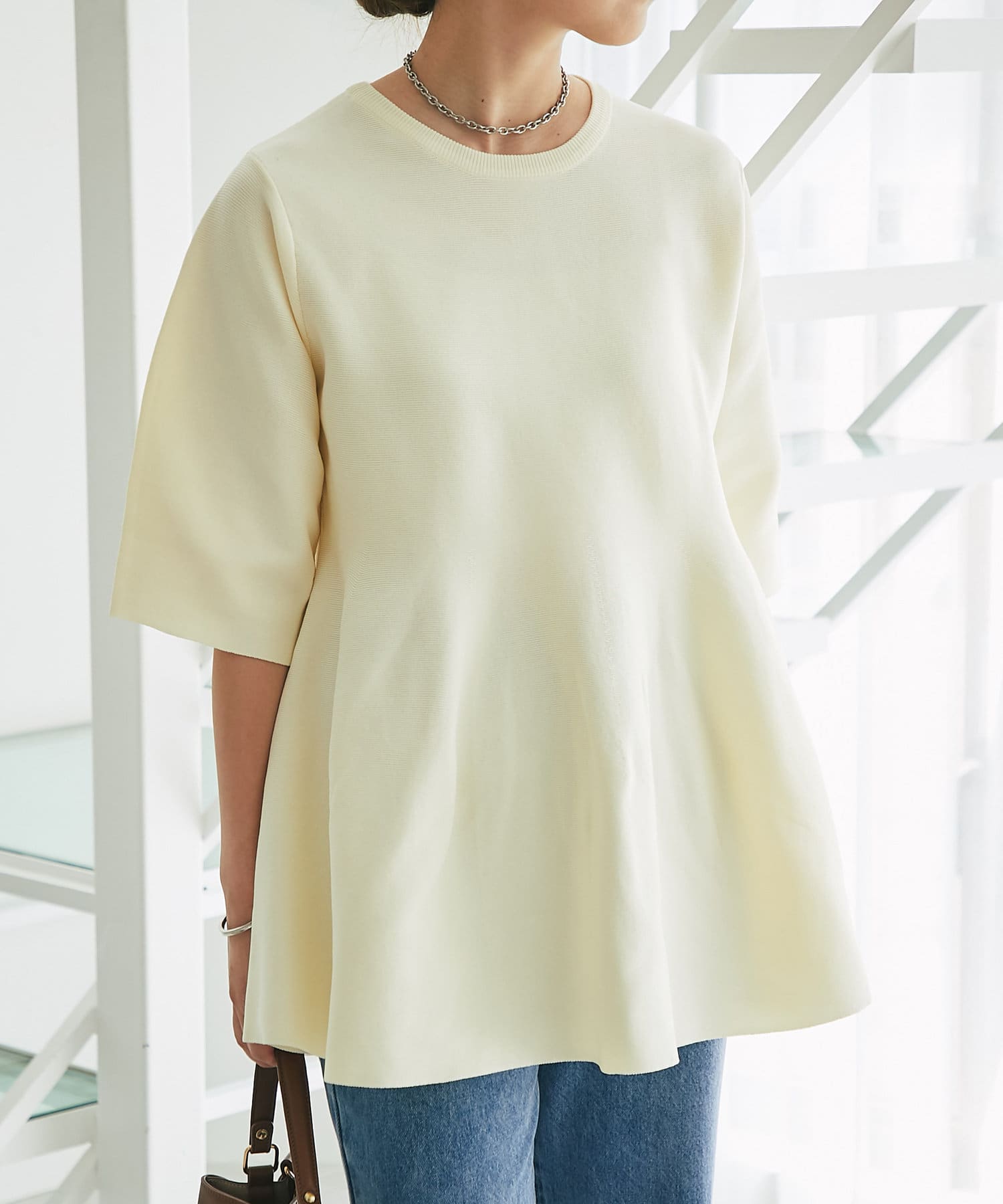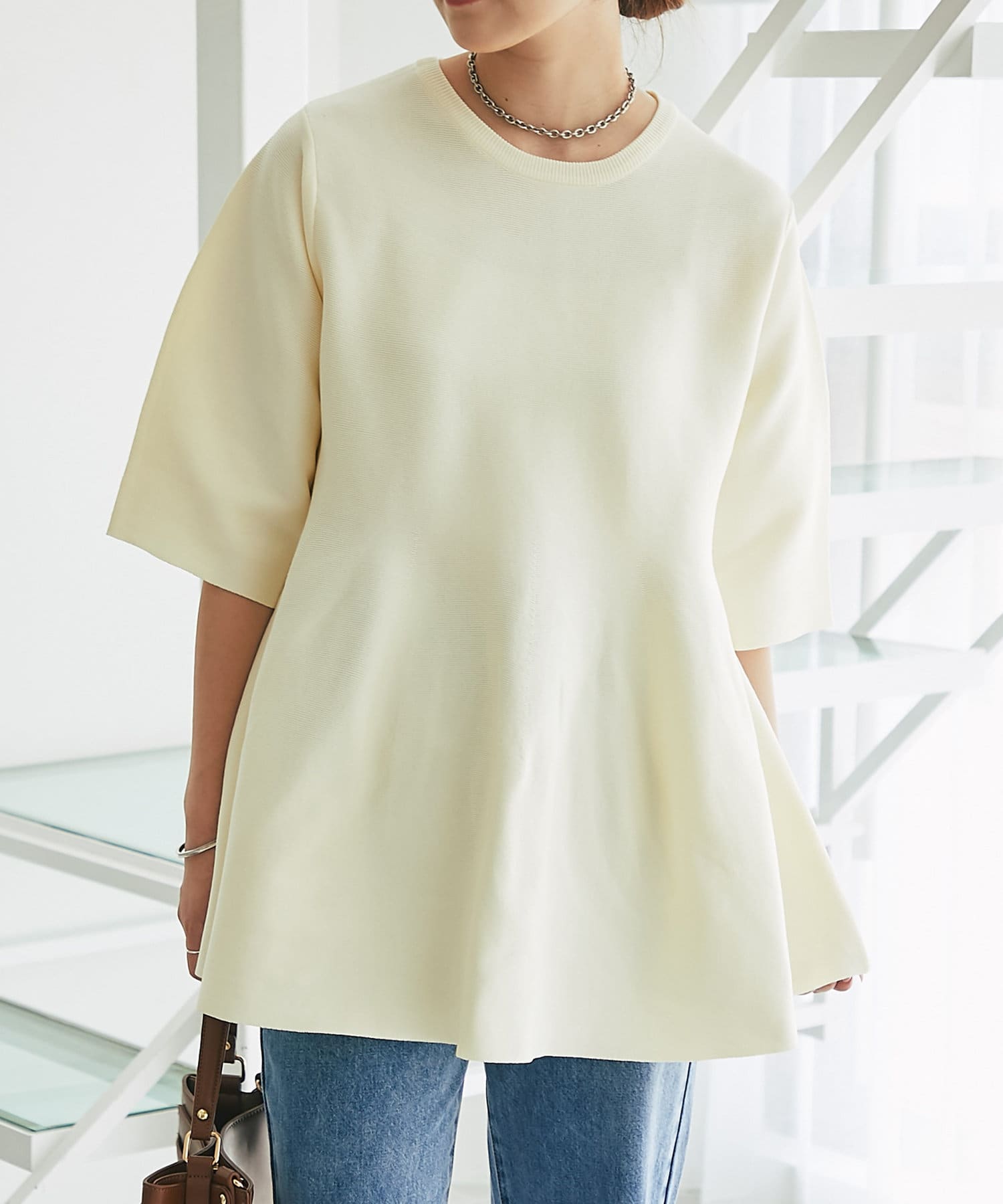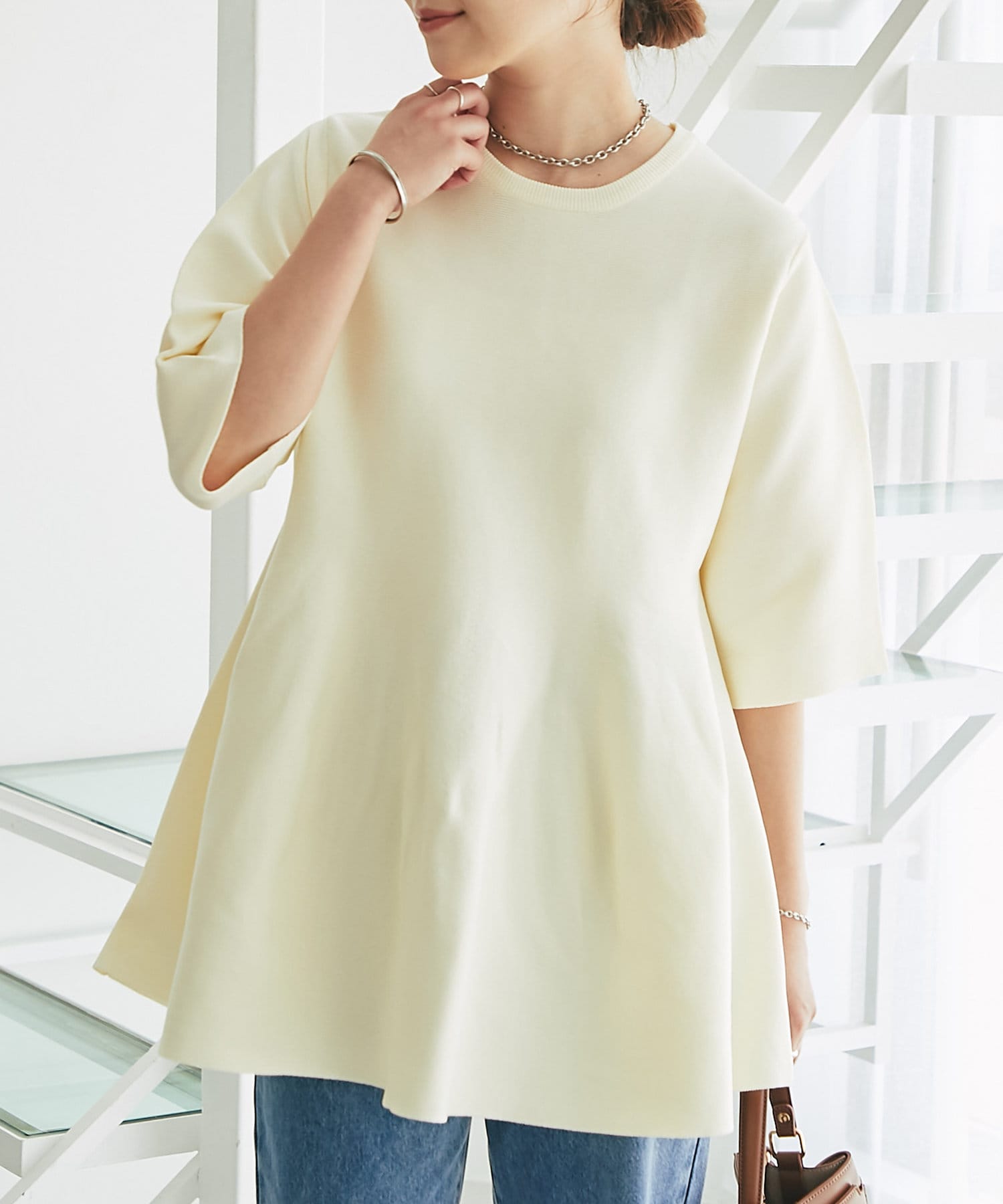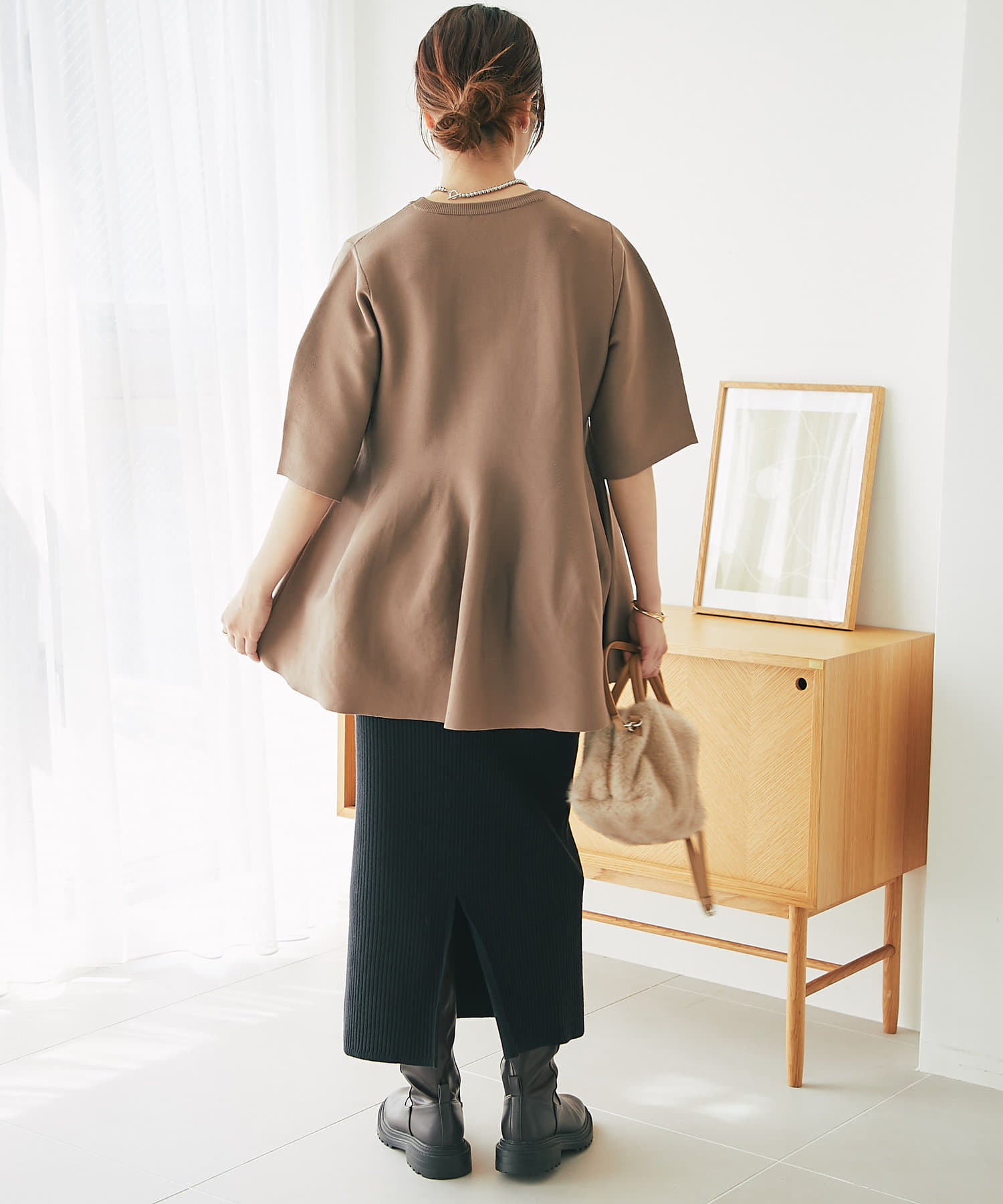 ふんわり広がるシルエットのニットは、