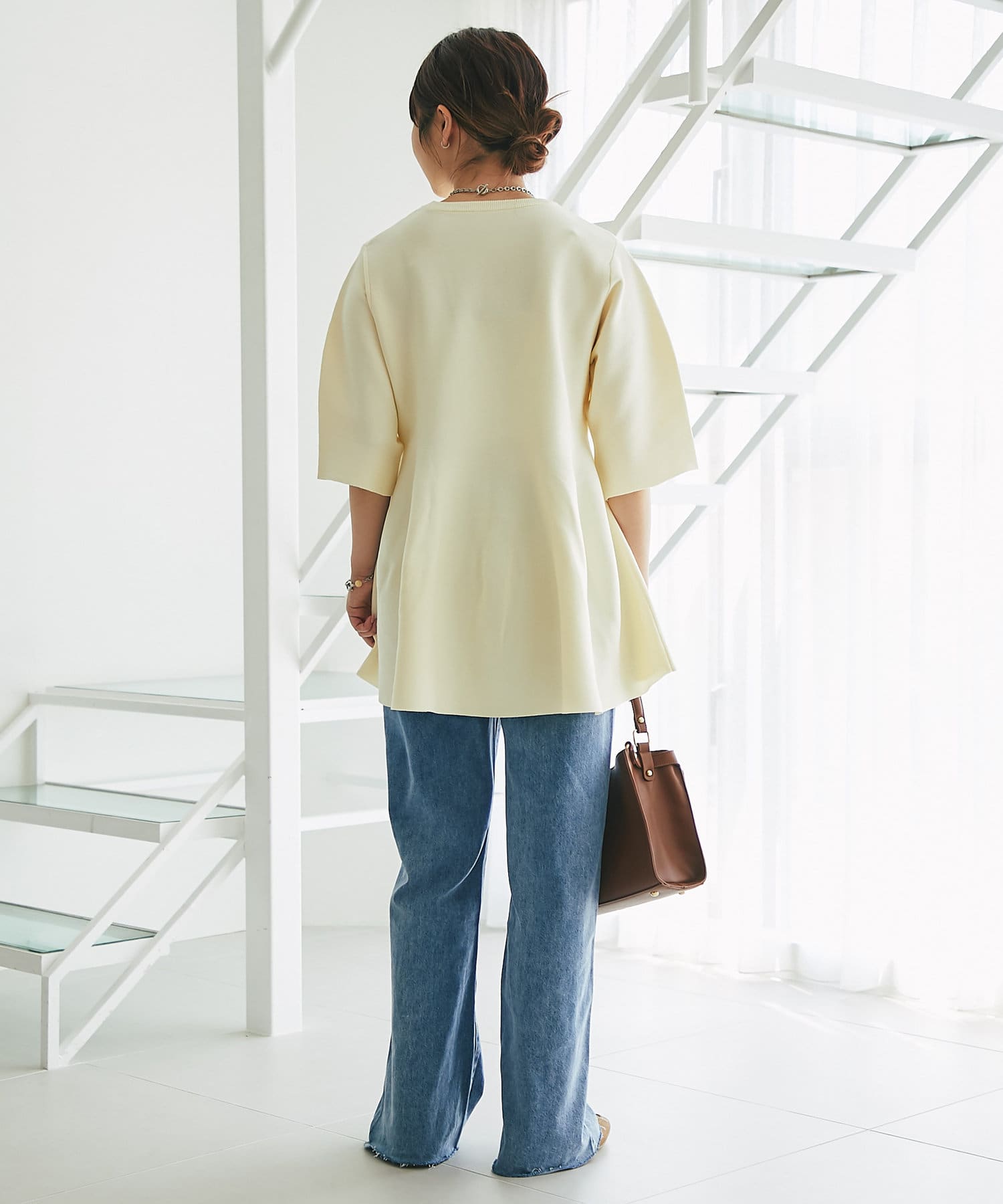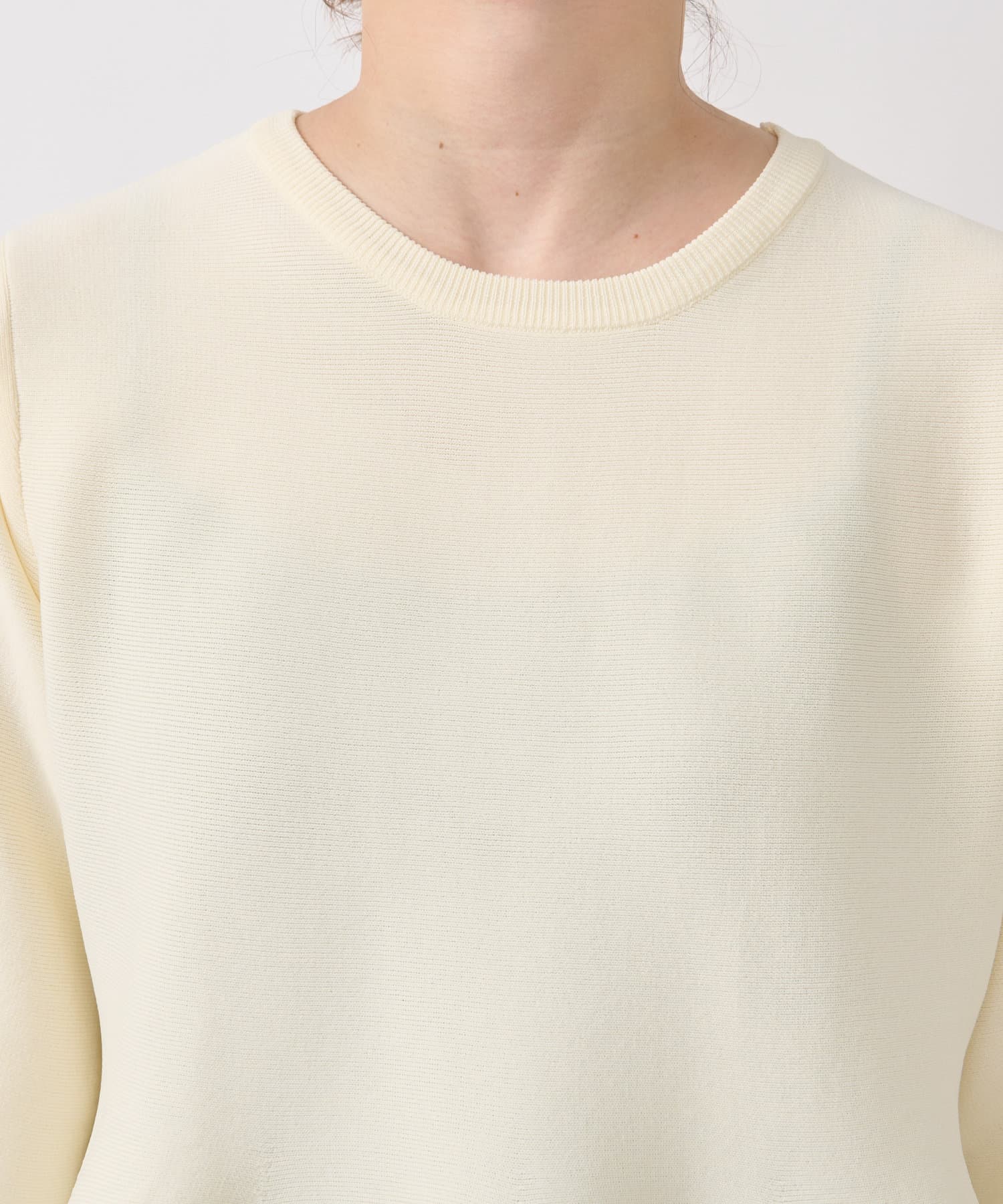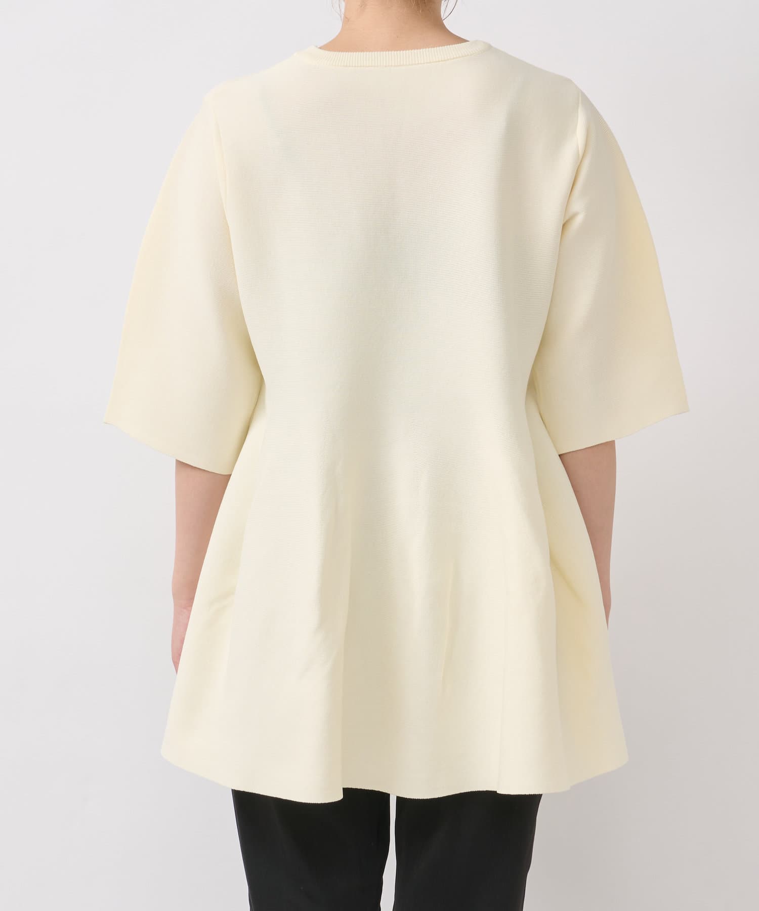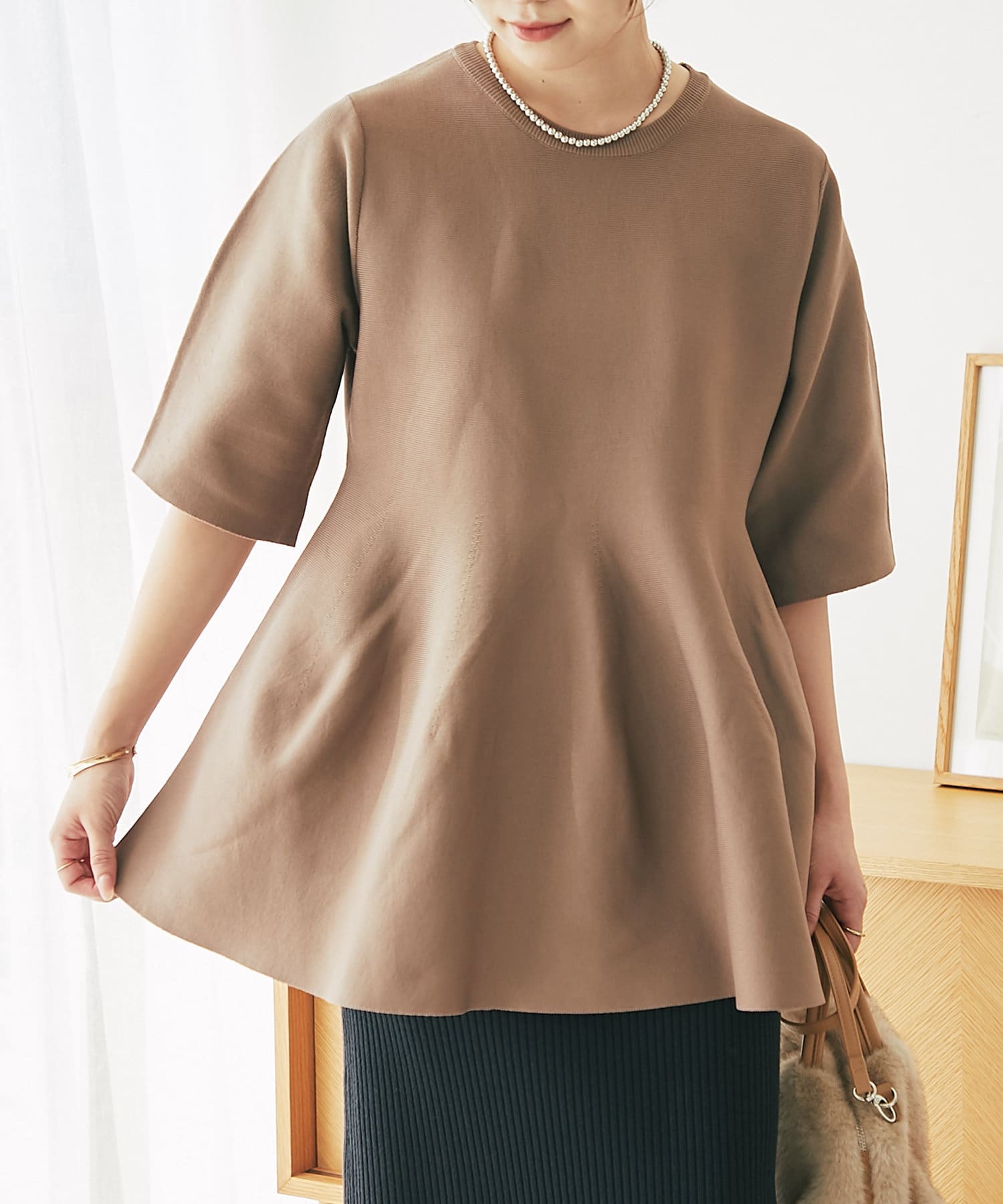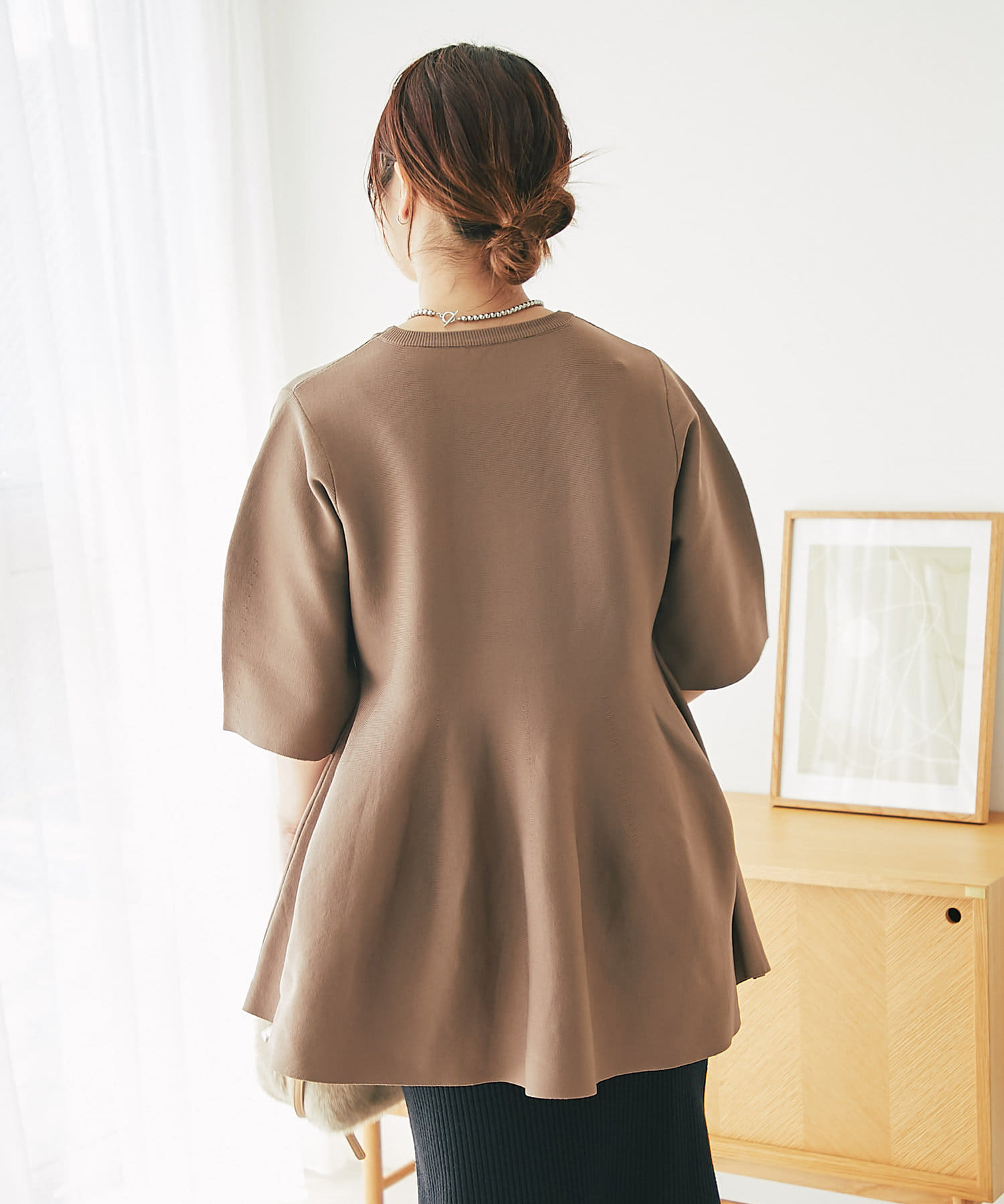 ・腰やヒップ周りをカバーできるペプラムデザインのニット