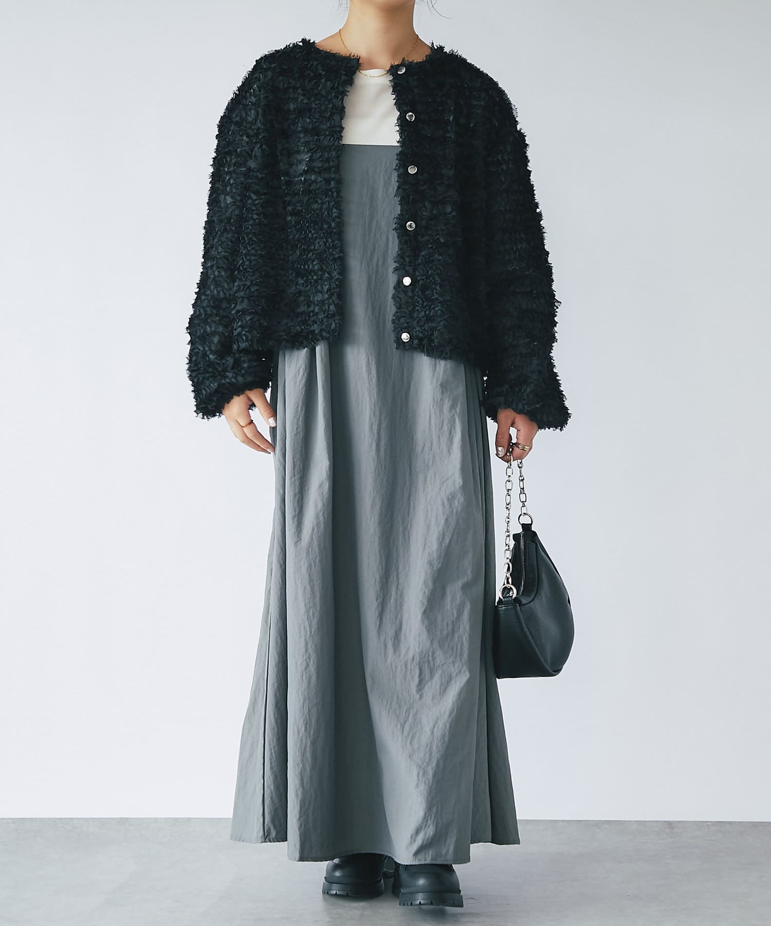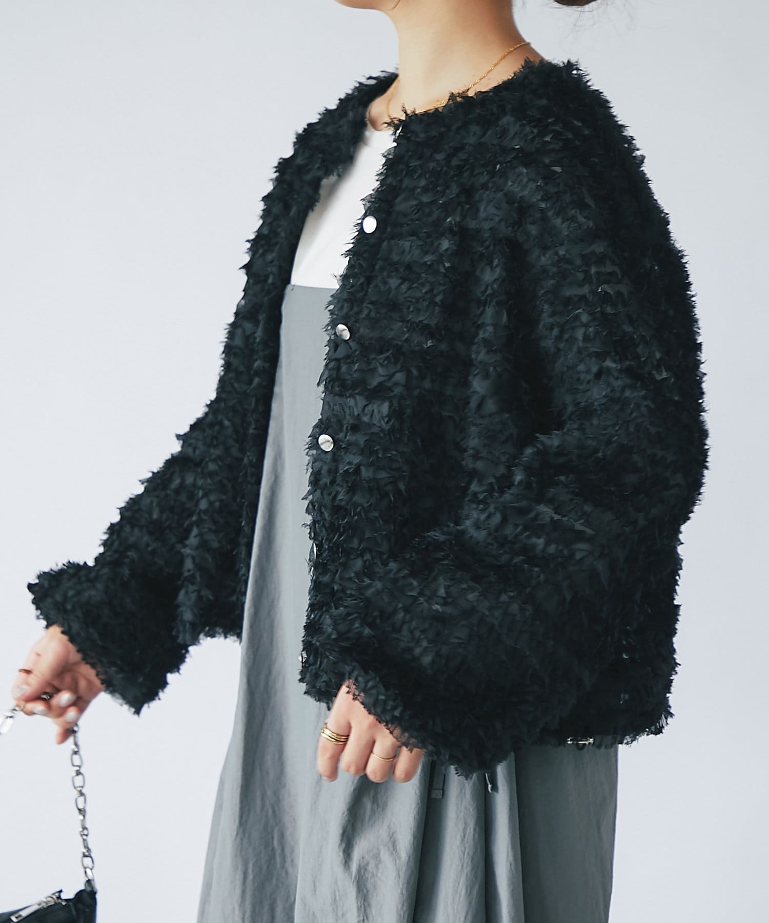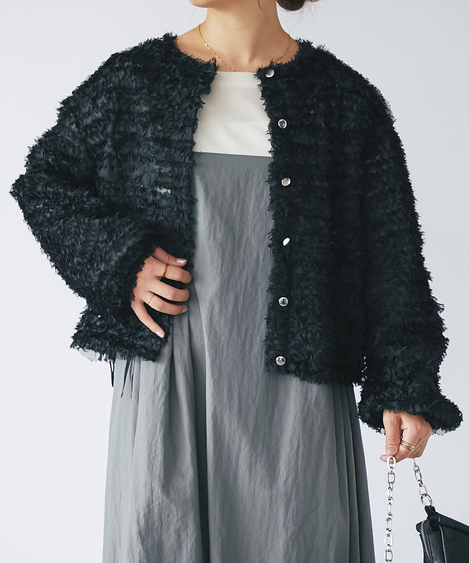 トレンドのレイヤードスタイルもストレスなく楽しめます♪