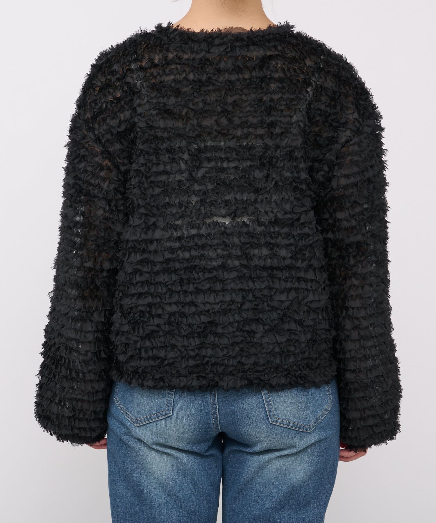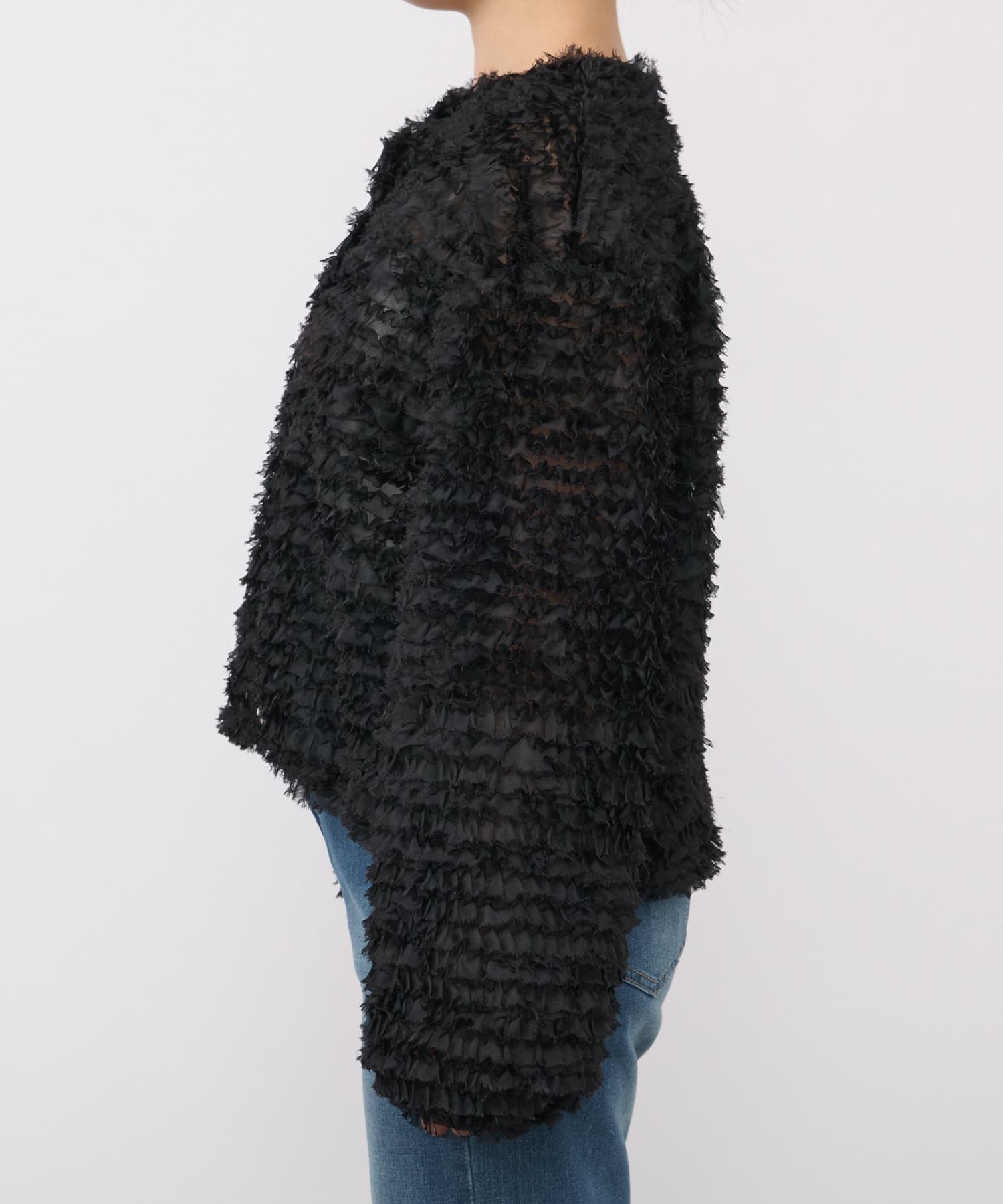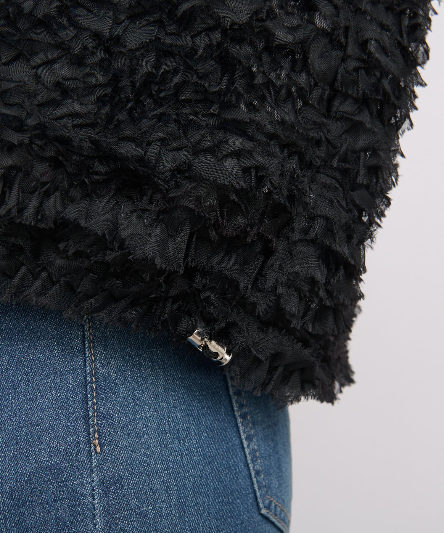 チュールのフリルデザインで特別な日に着たいトップス。