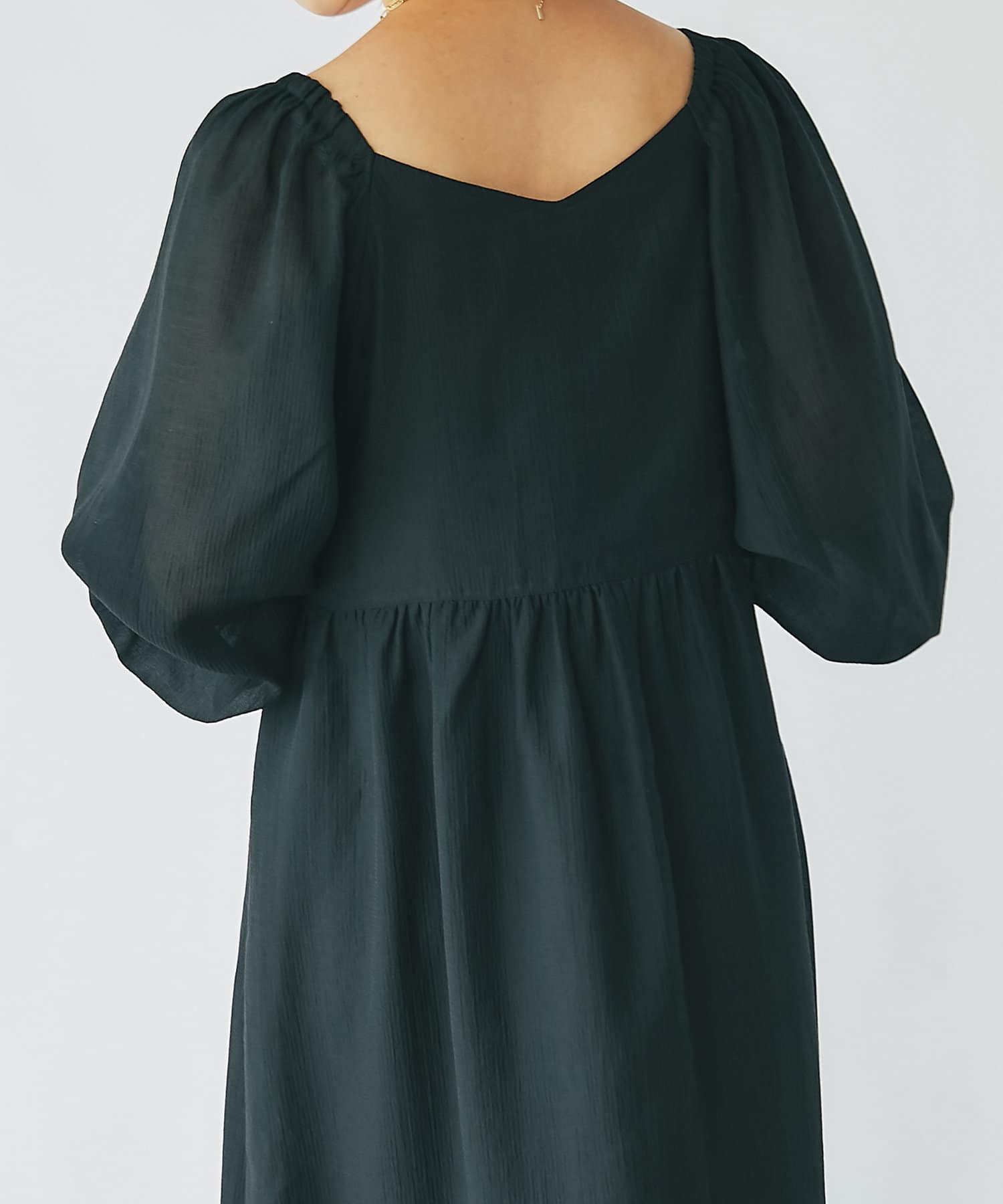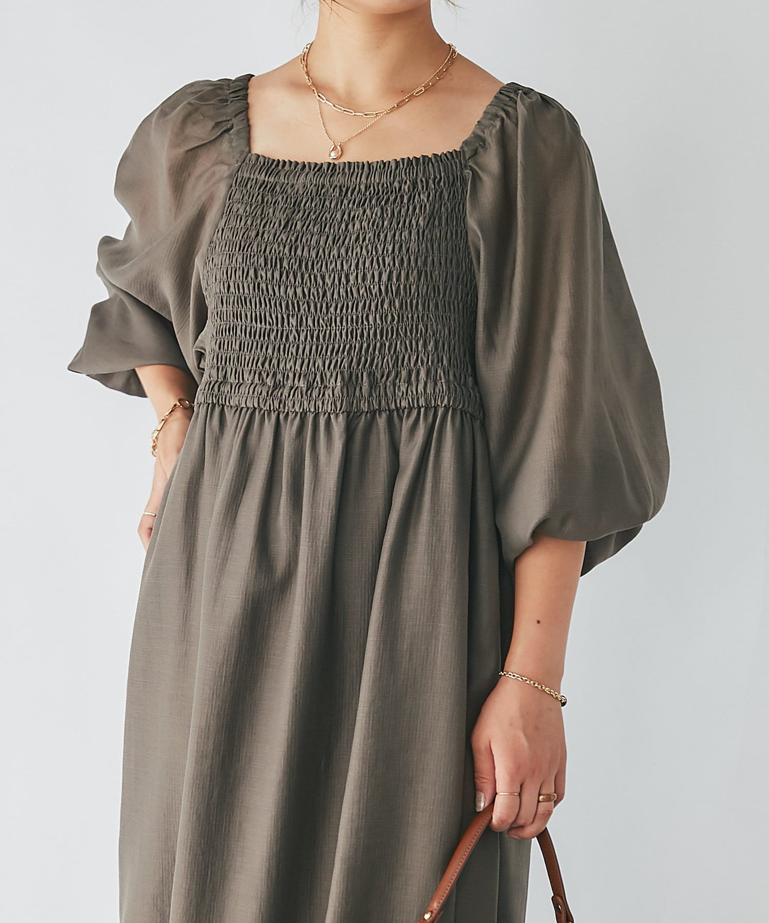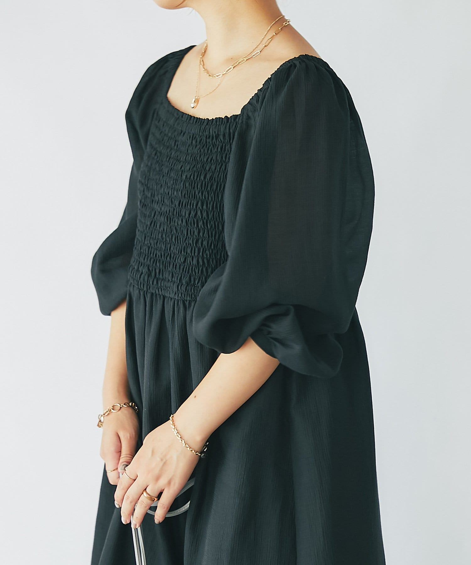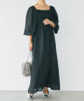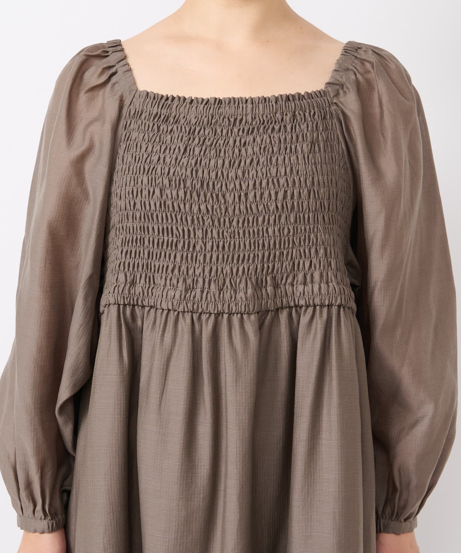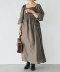 【un dix cors】シャーリングスクエアネックワンピース