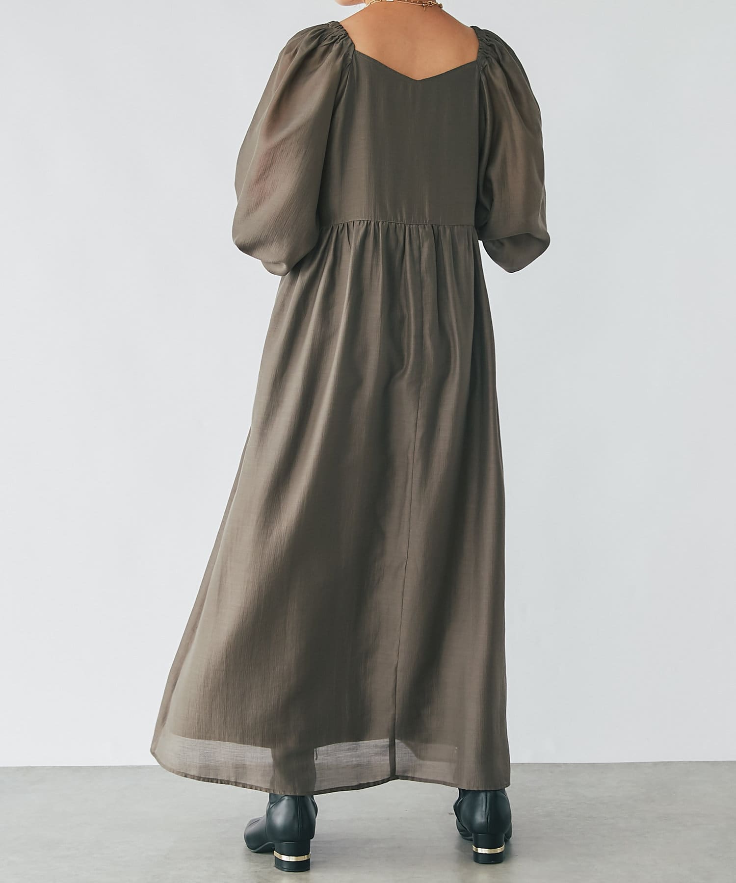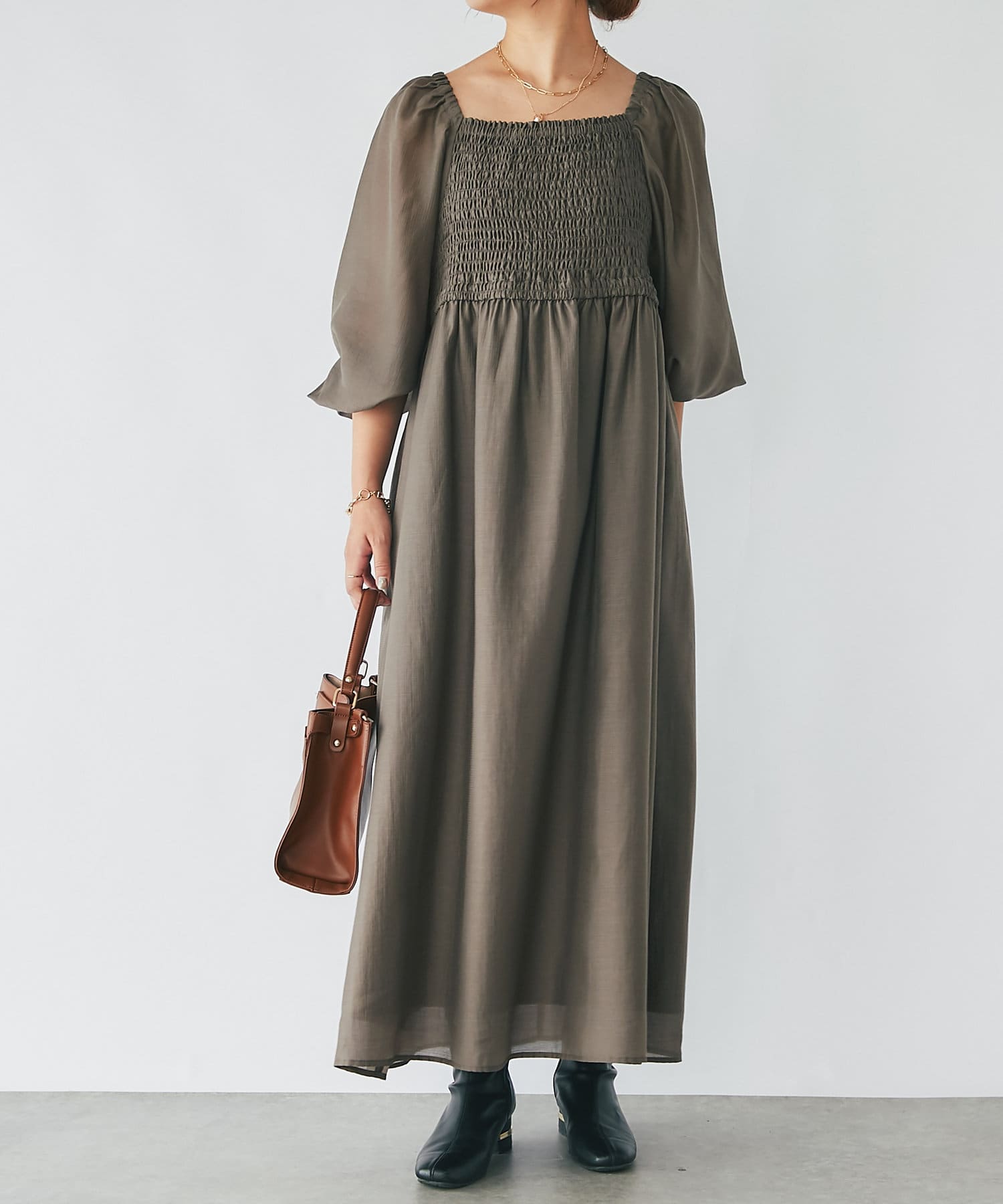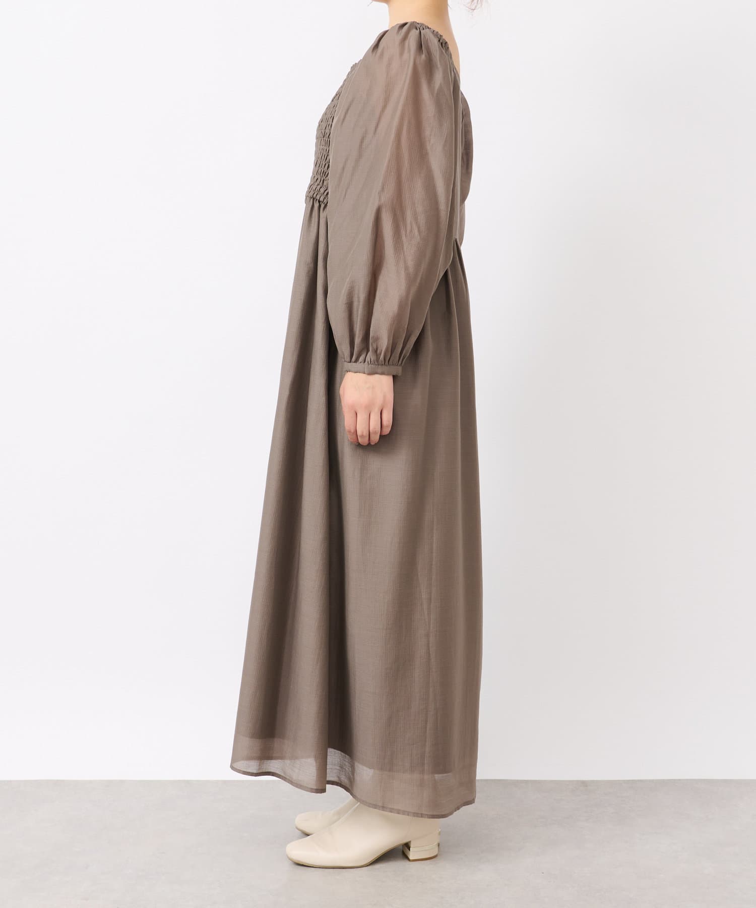 【un dix cors】シャーリングスクエアネックワンピース