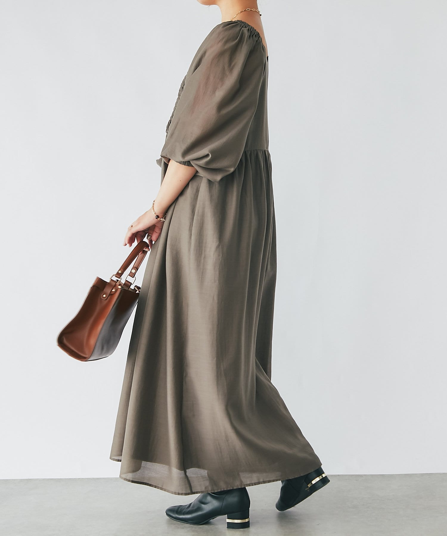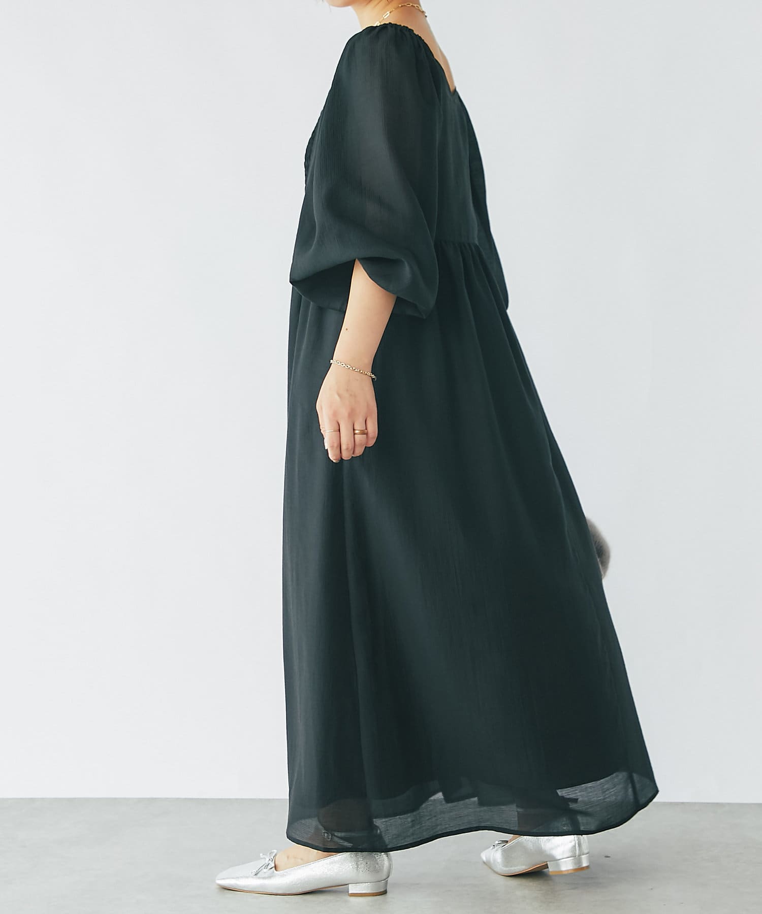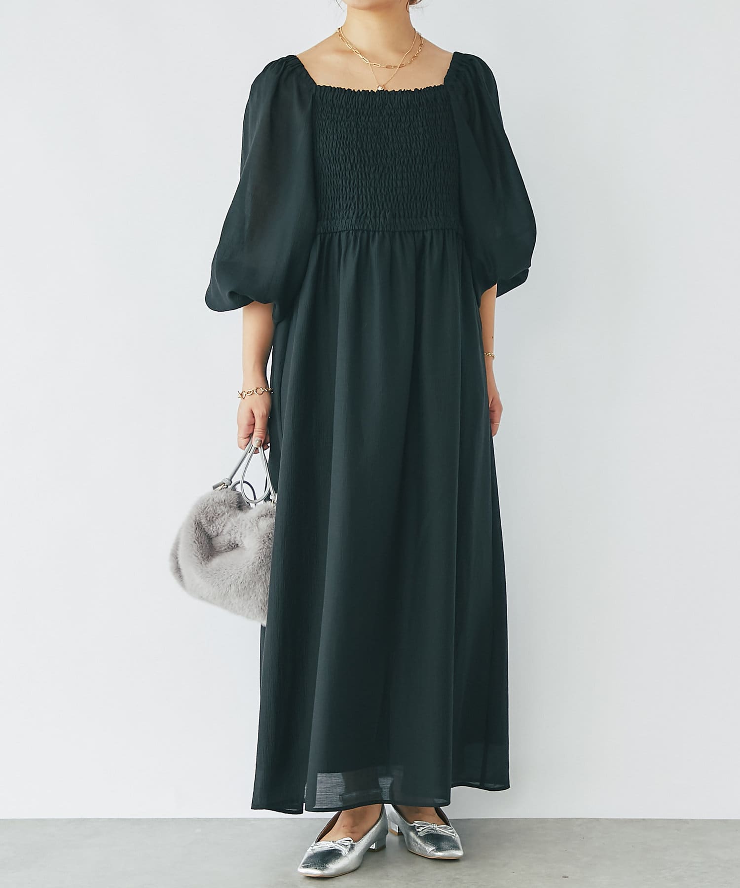 ふわりと広がってくれるパフスリーブが華やかなワンピース