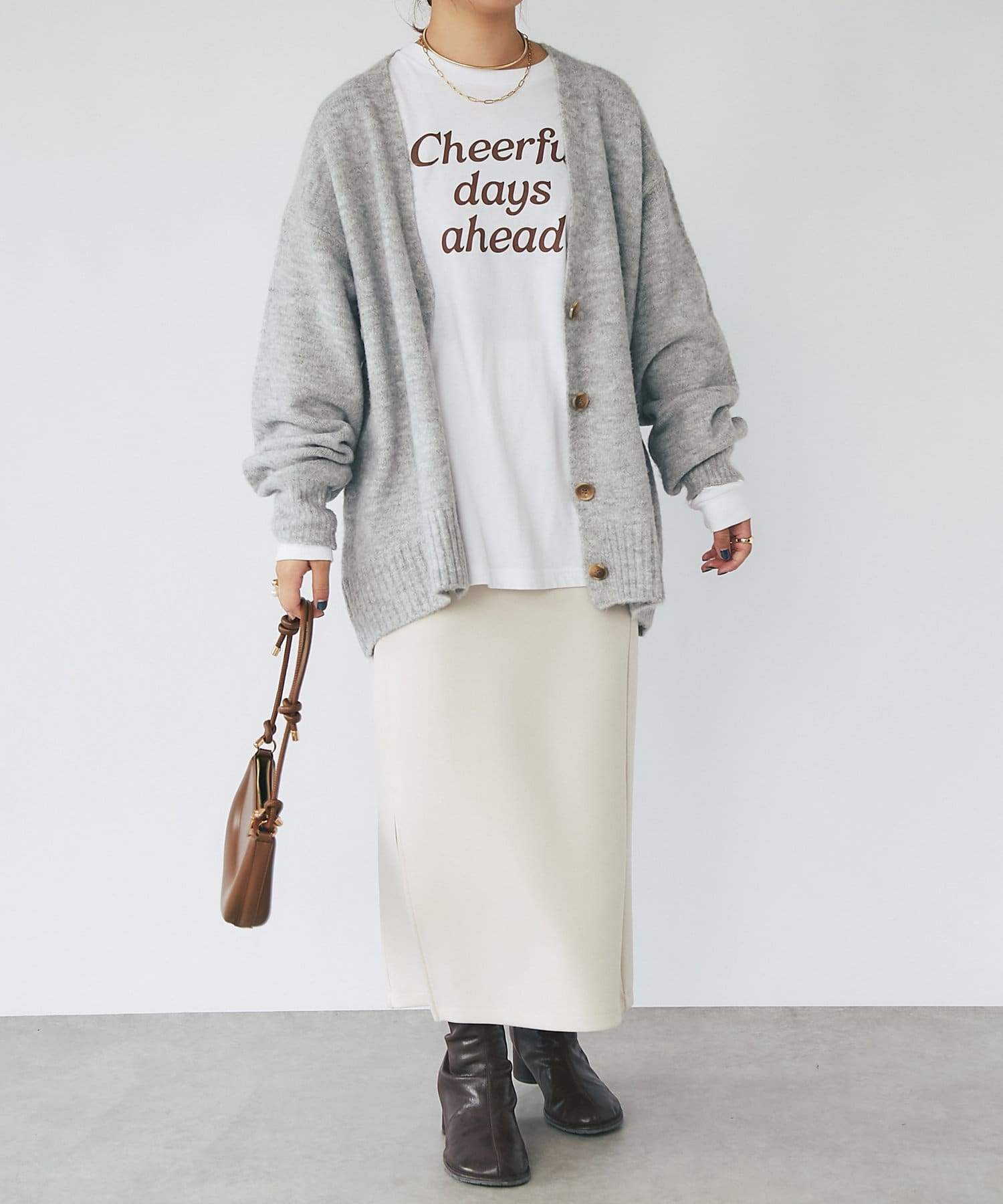 首元の開きが広めなのでロゴロンTなどと合わせるのもおすすめ。