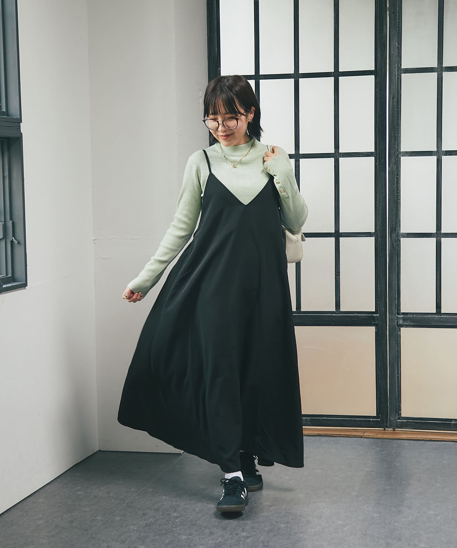 コンパクトなシルエットでキャミワンピやベストのインナーに使いやすいです。
