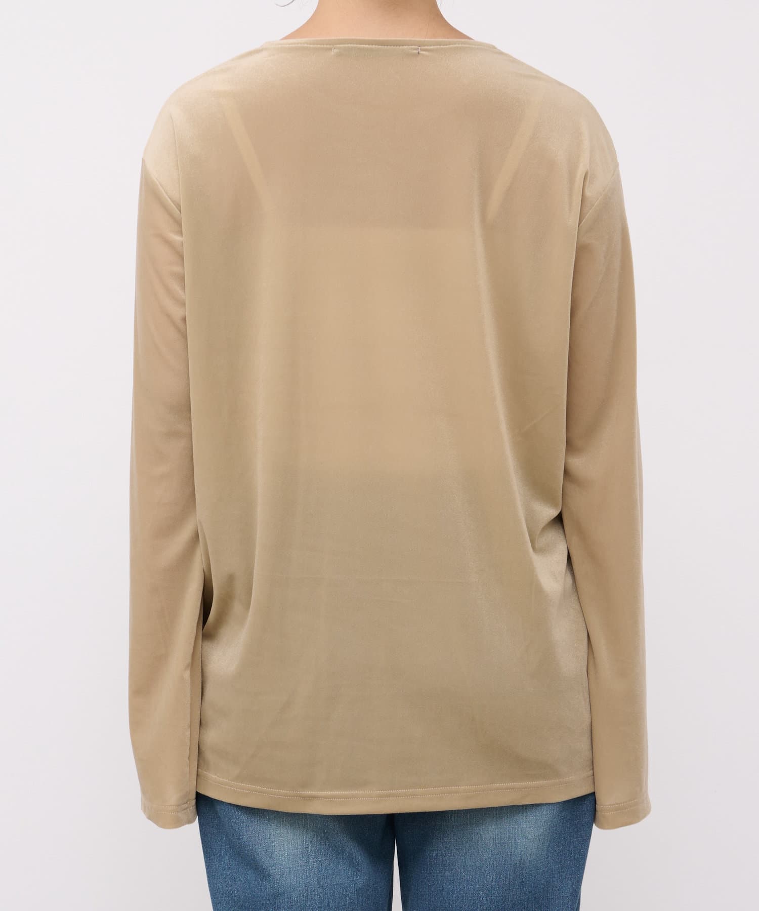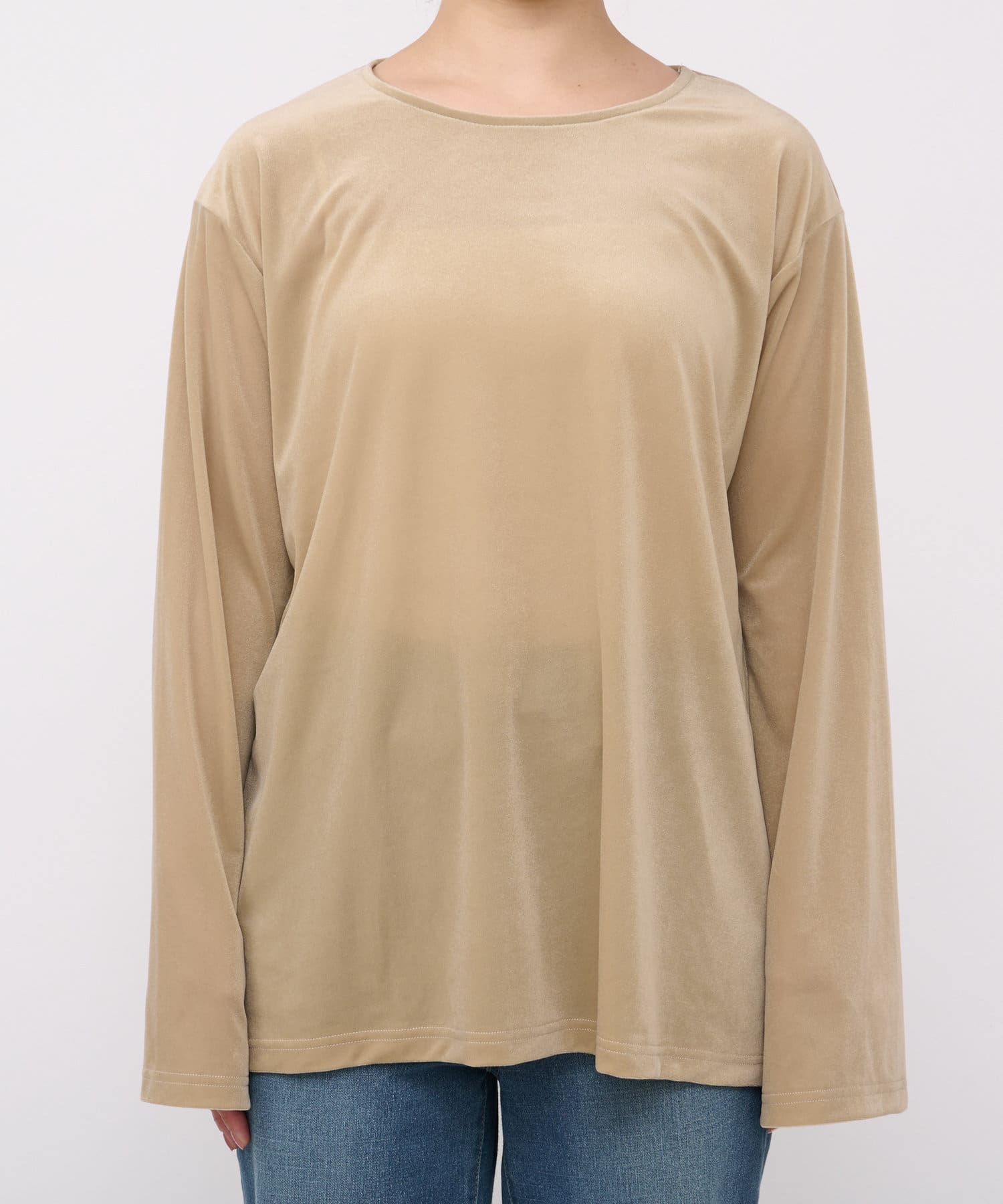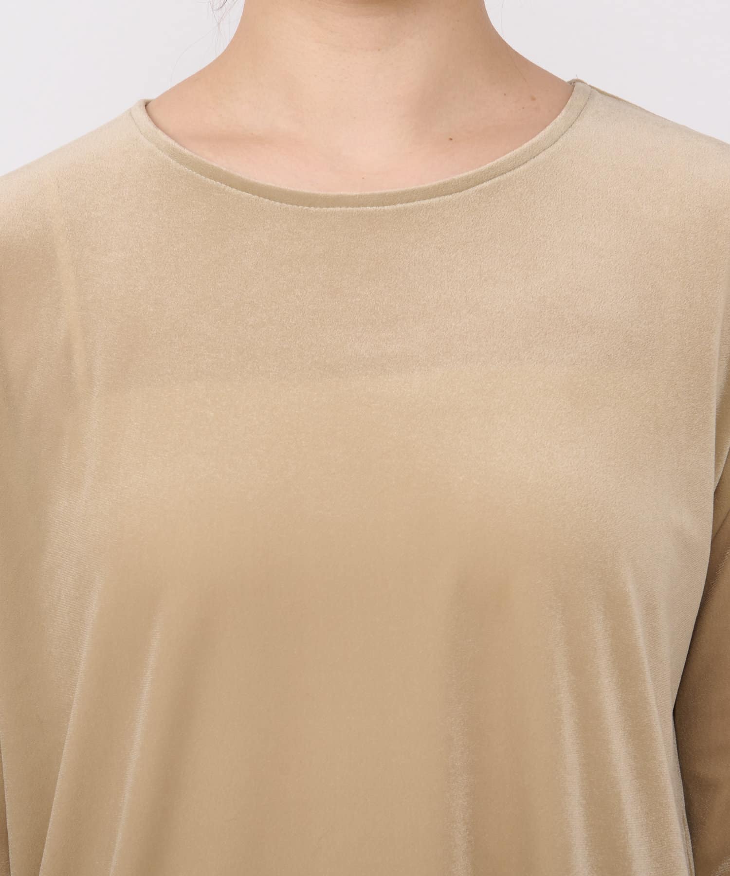 《微光沢感が上品見せ》シアーベロアベルスリーブカットソー