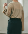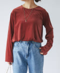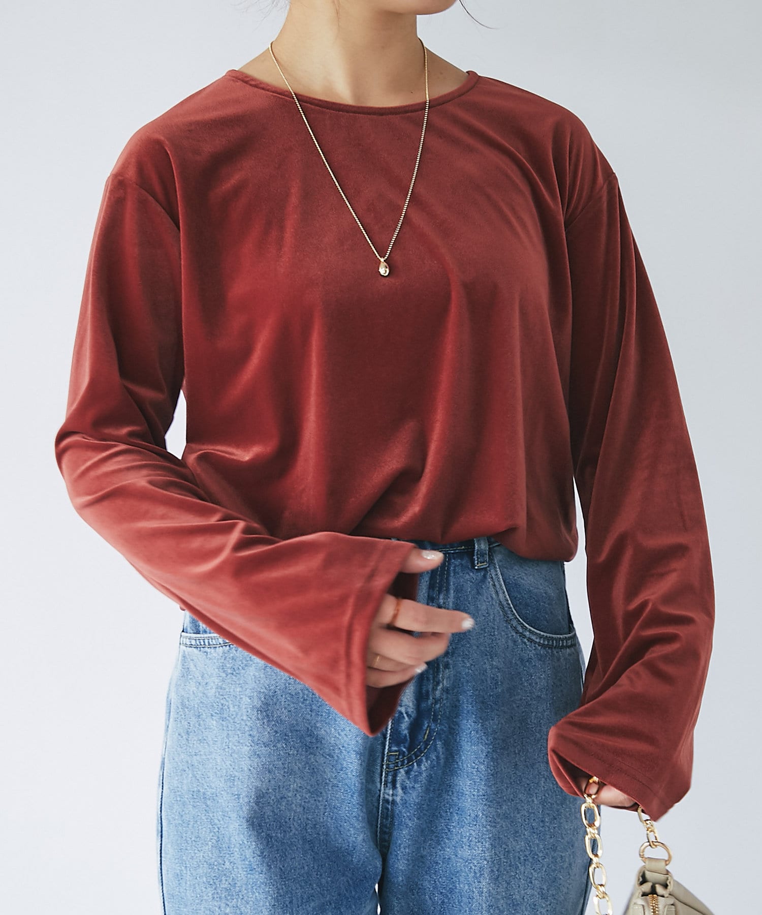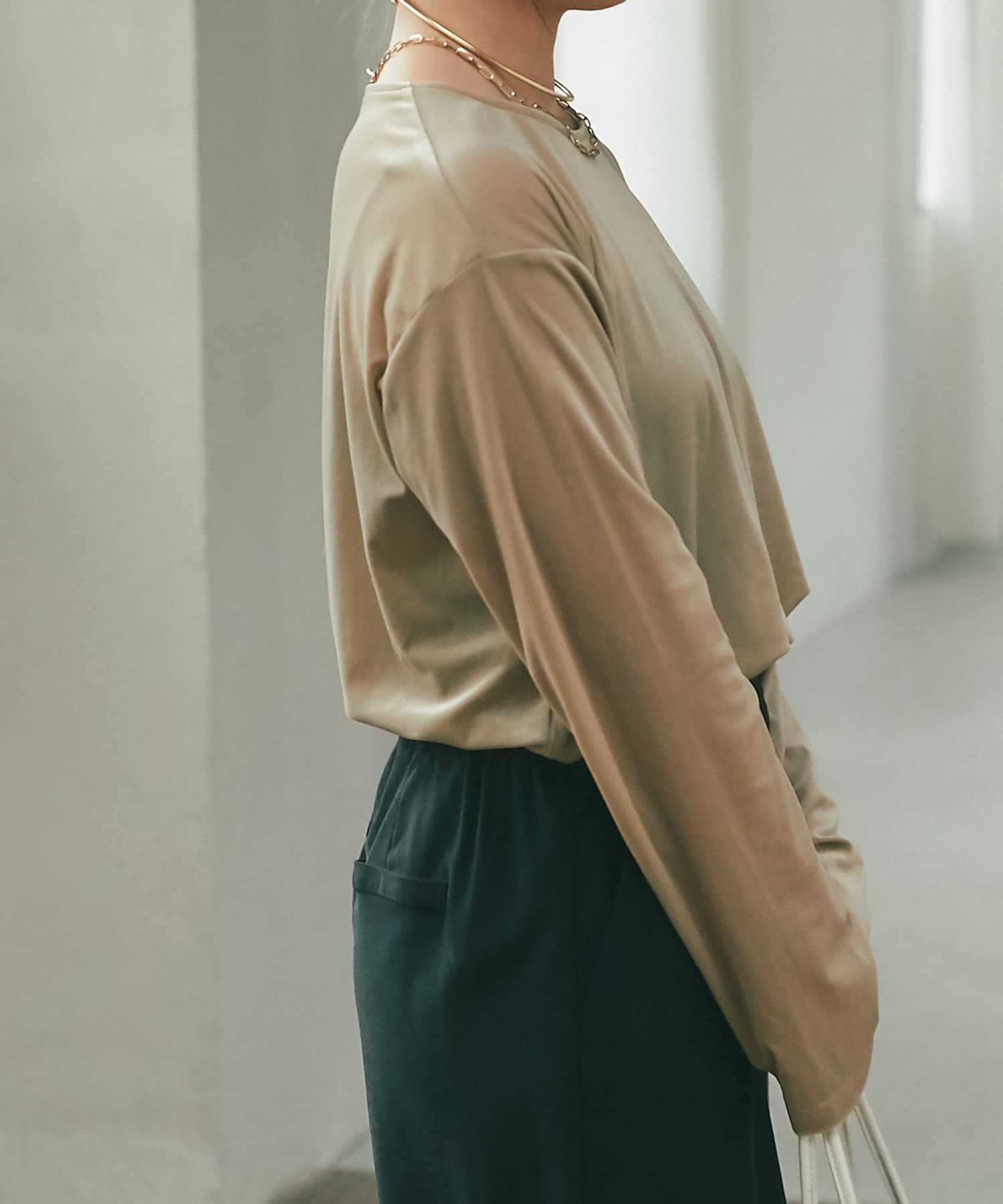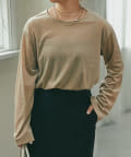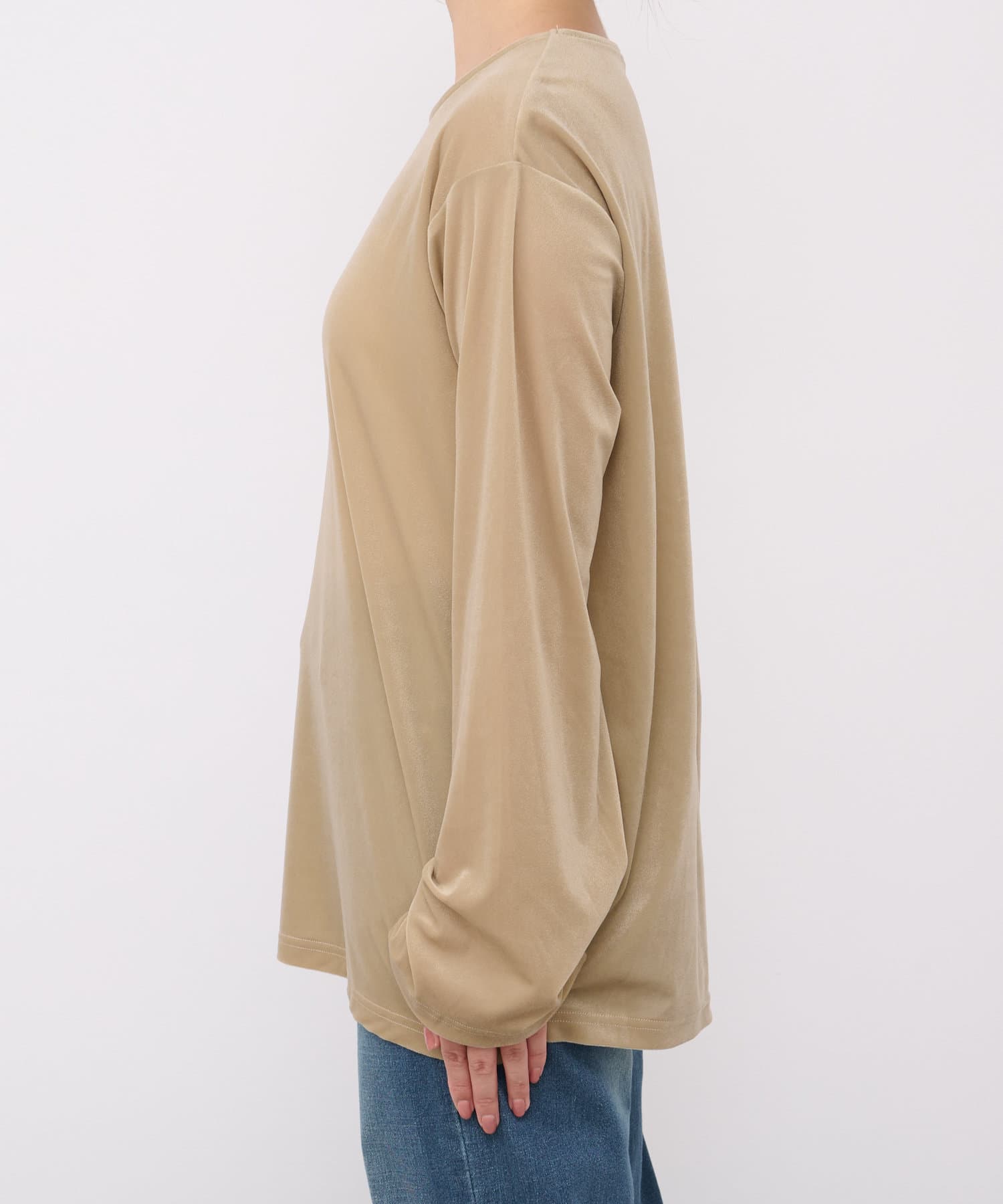 《微光沢感が上品見せ》シアーベロアベルスリーブカットソー