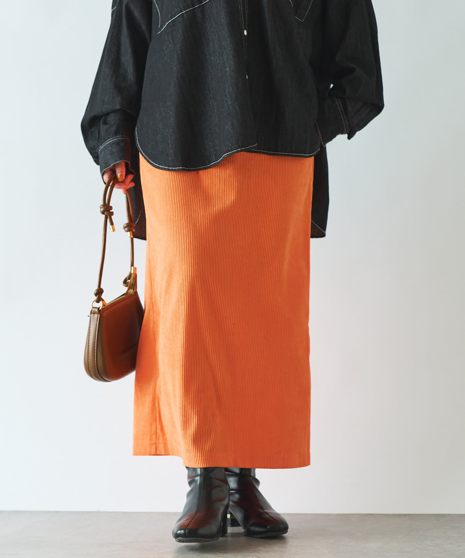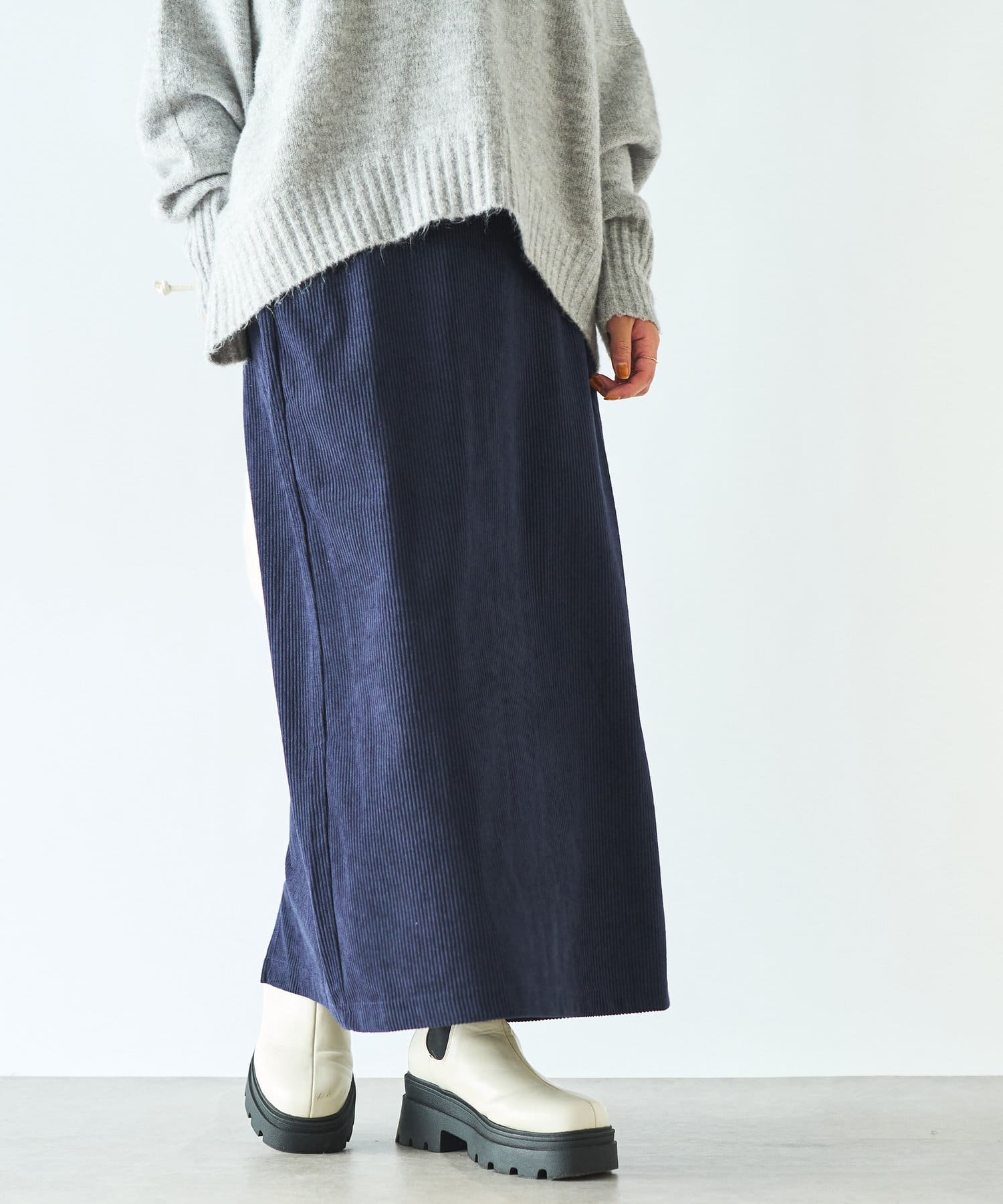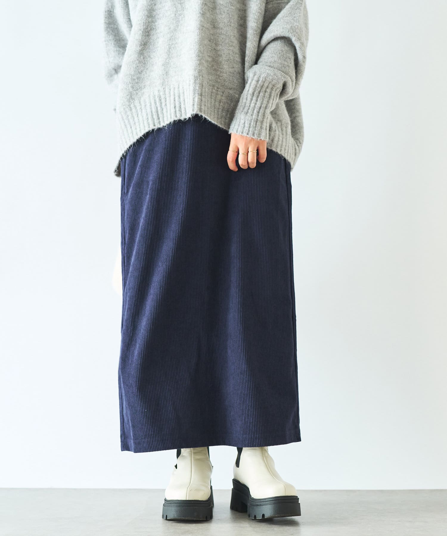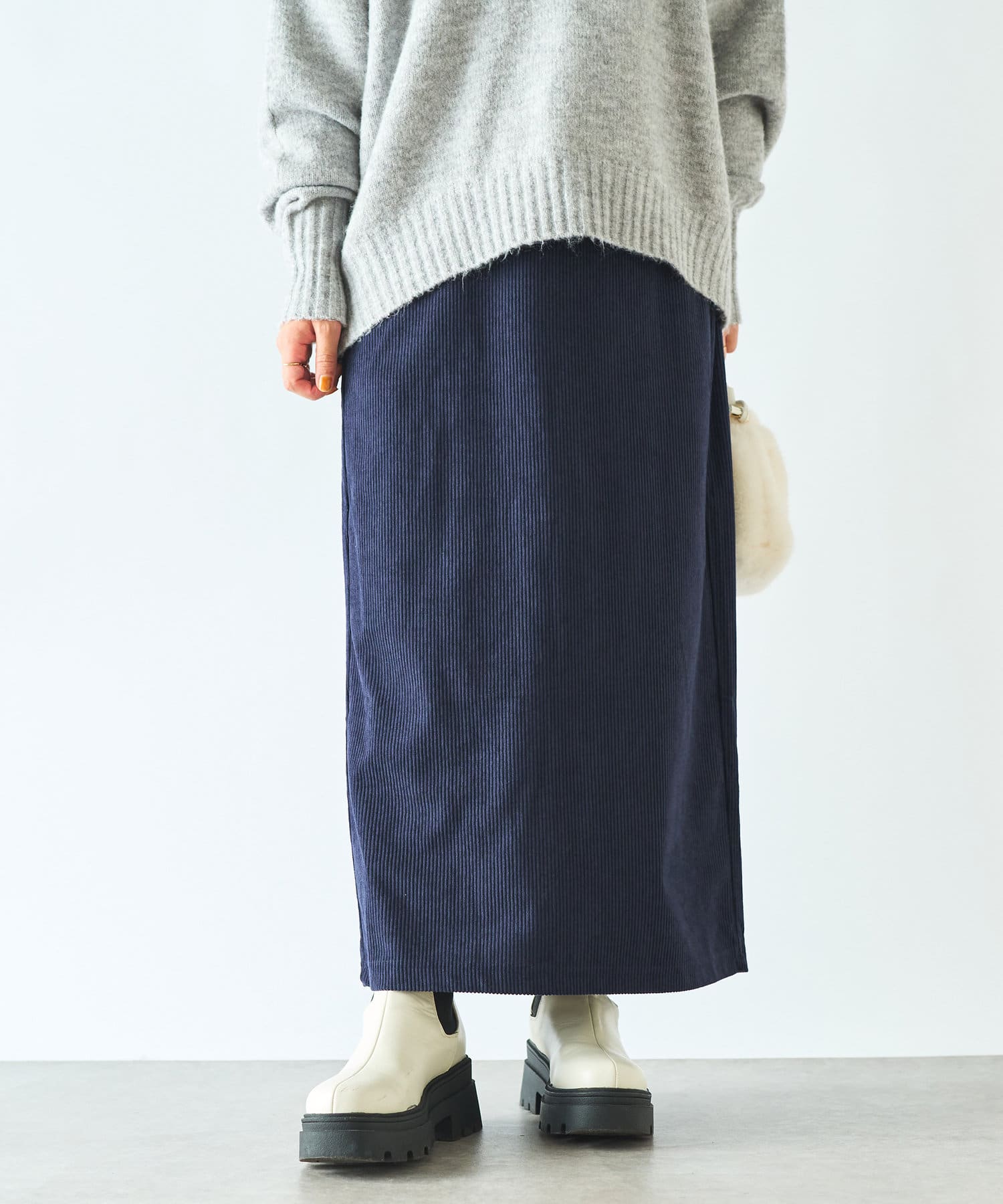 ・暖かみを感じる柔らかなコーデュロイ素材のナロースカート