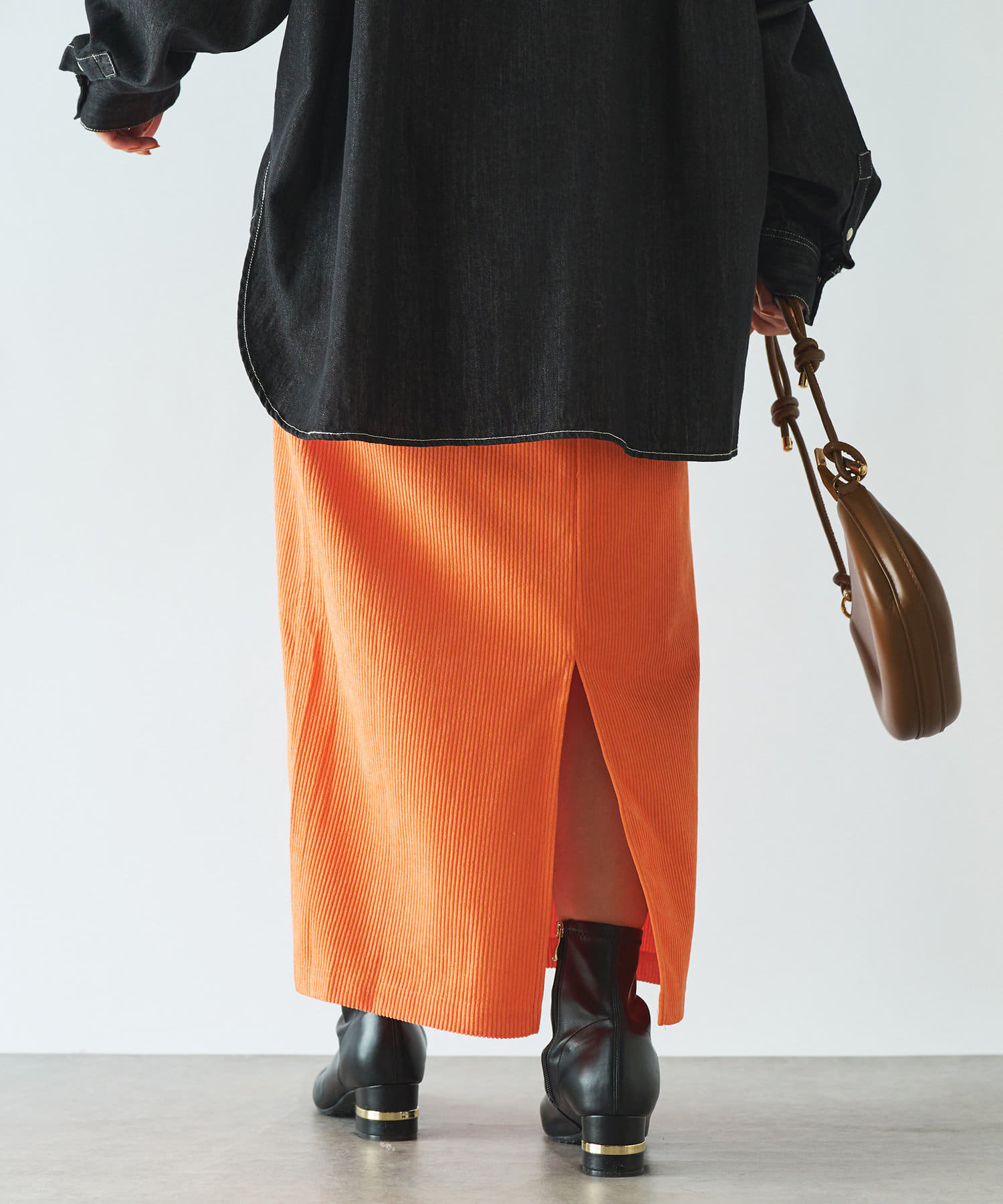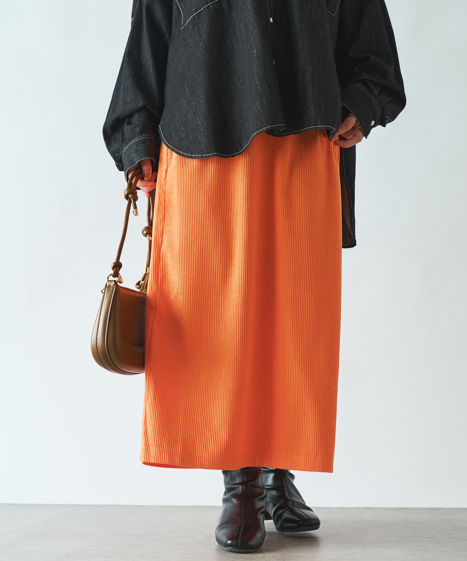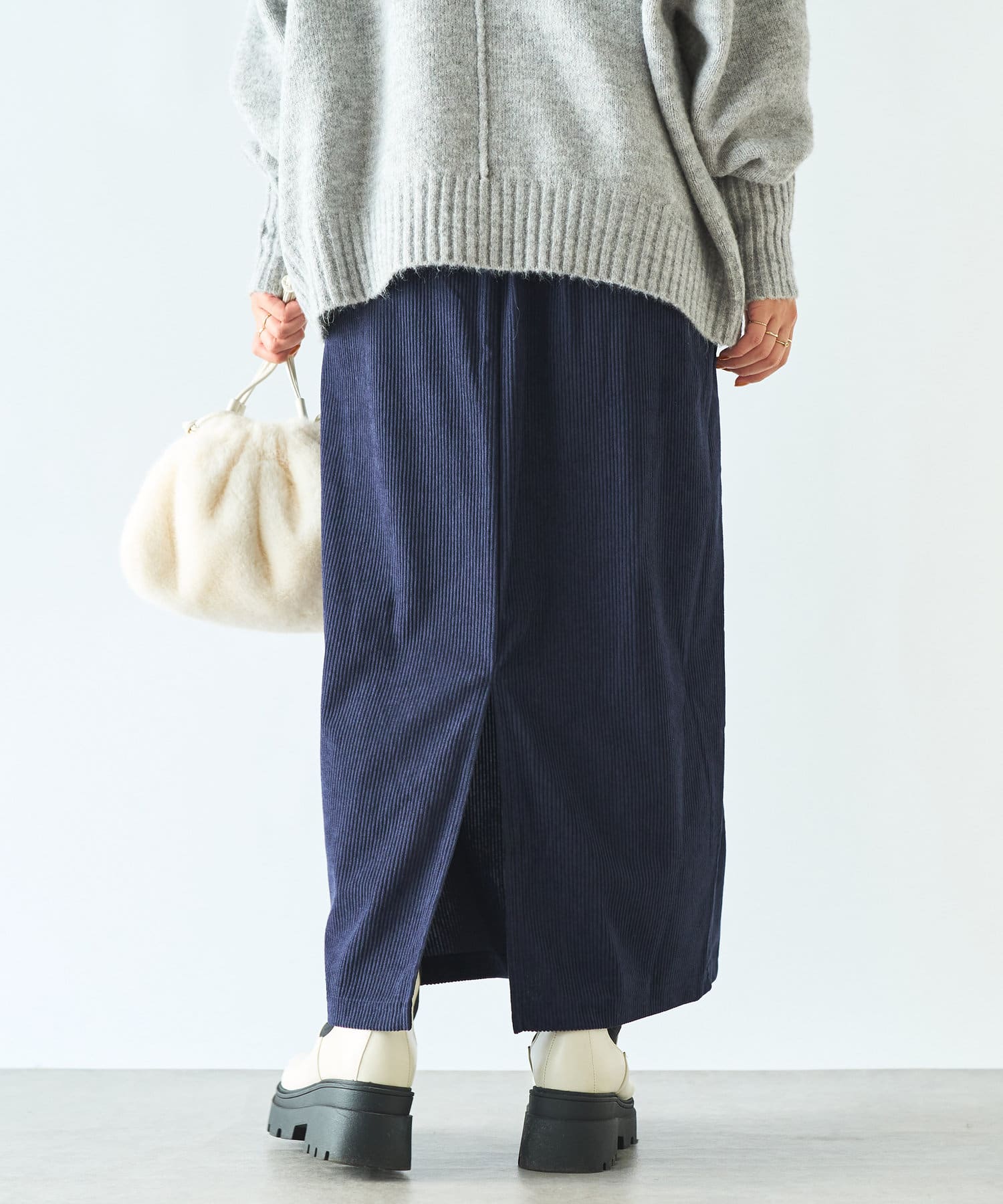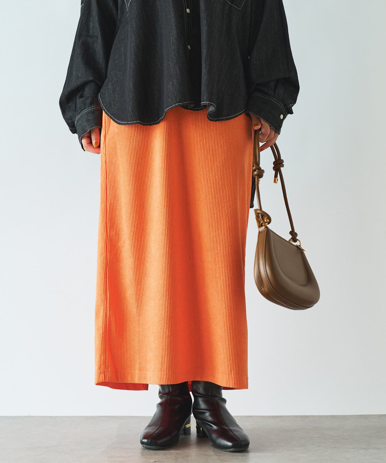 ・暖かみを感じる柔らかなコーデュロイ素材のナロースカート