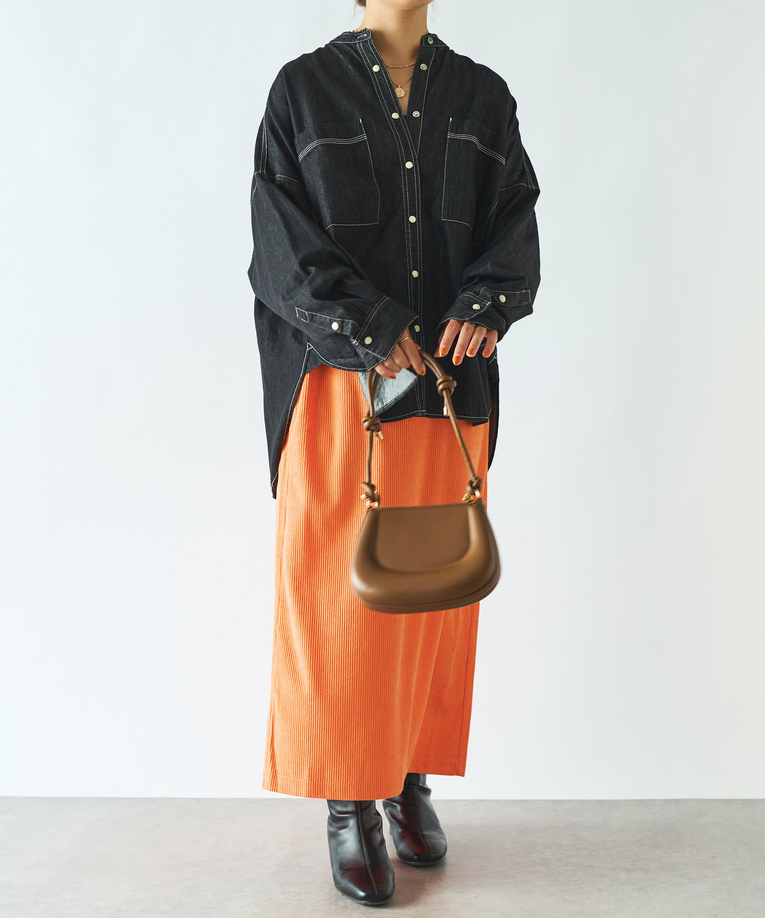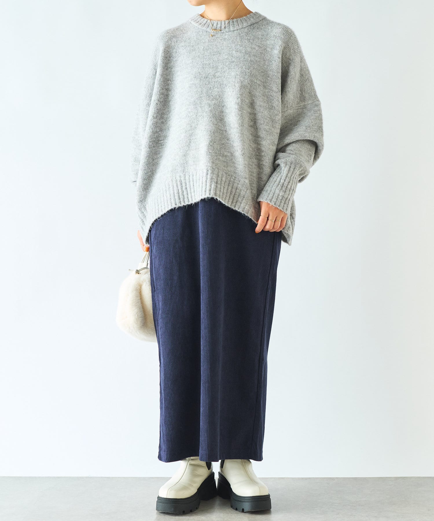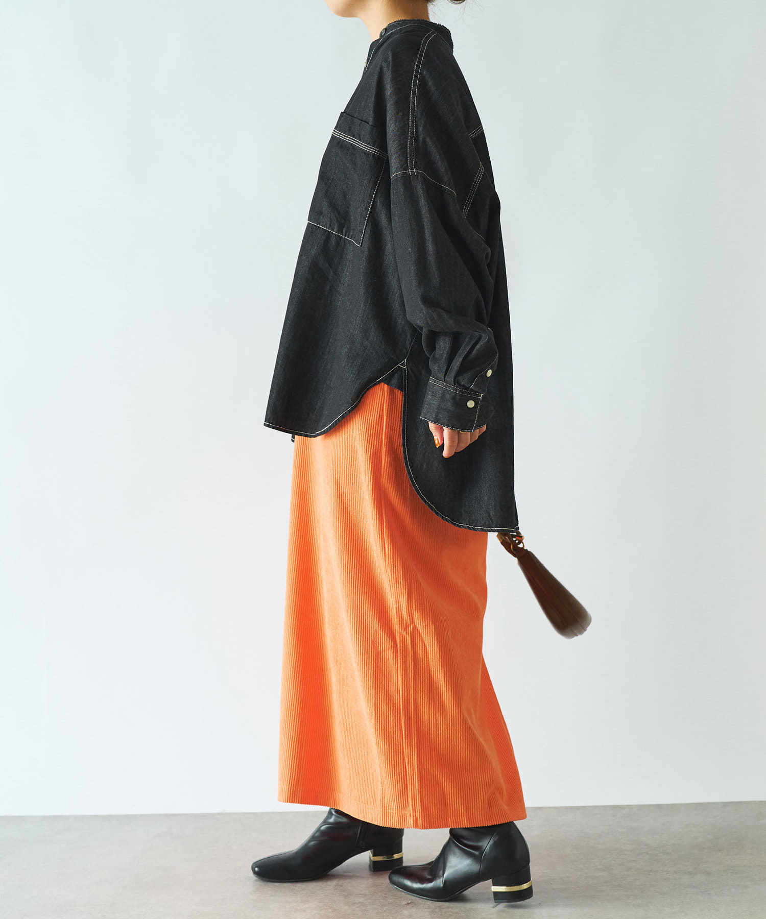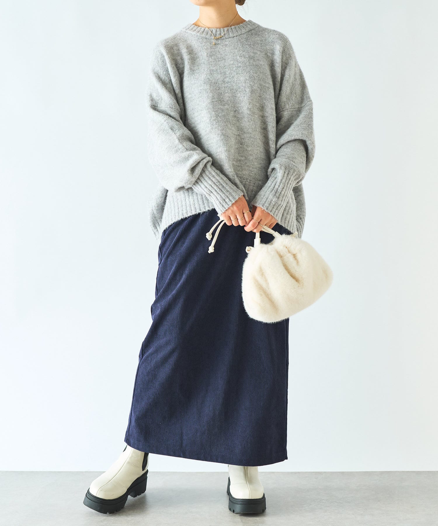 ・暖かみを感じる柔らかなコーデュロイ素材のナロースカート