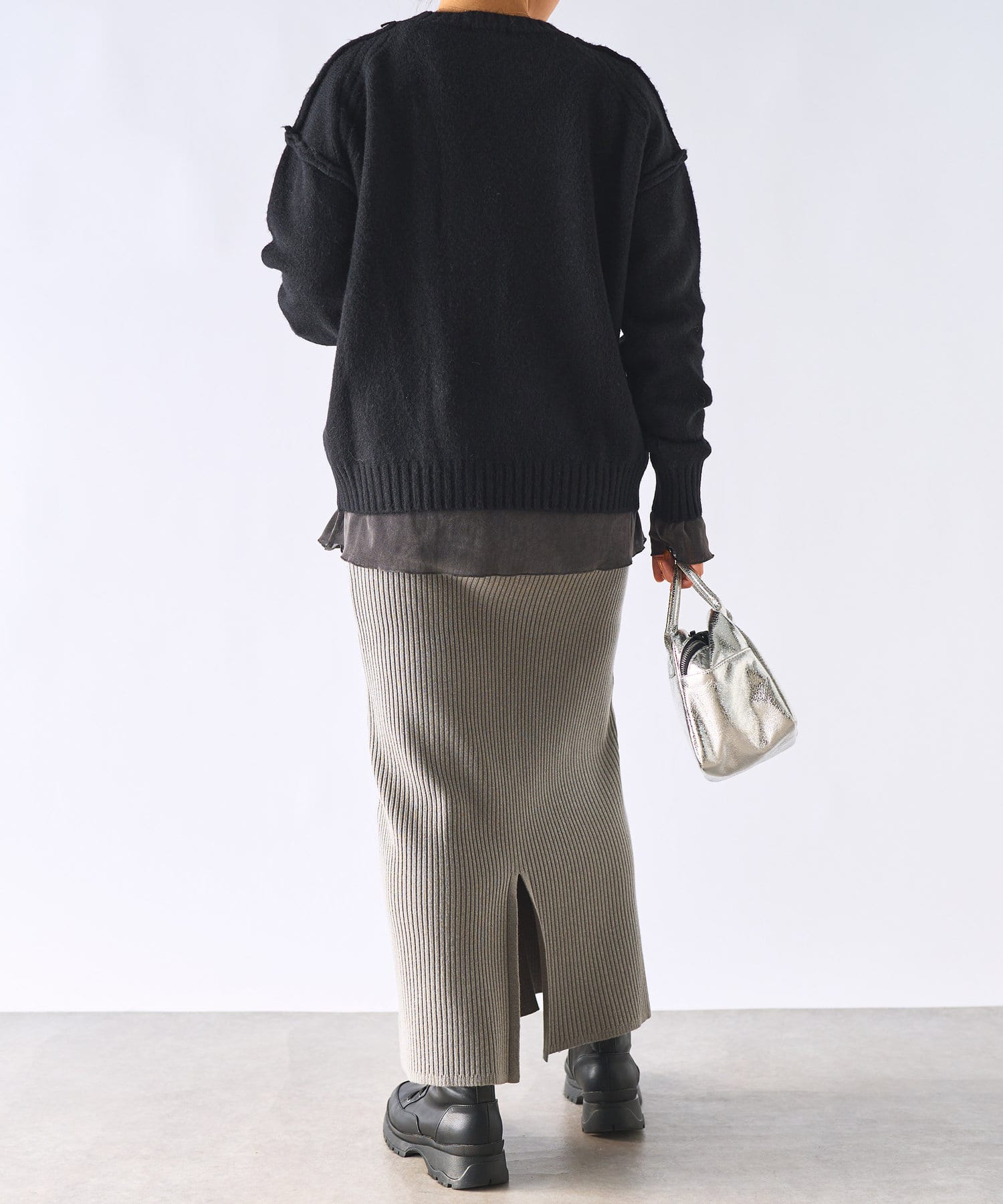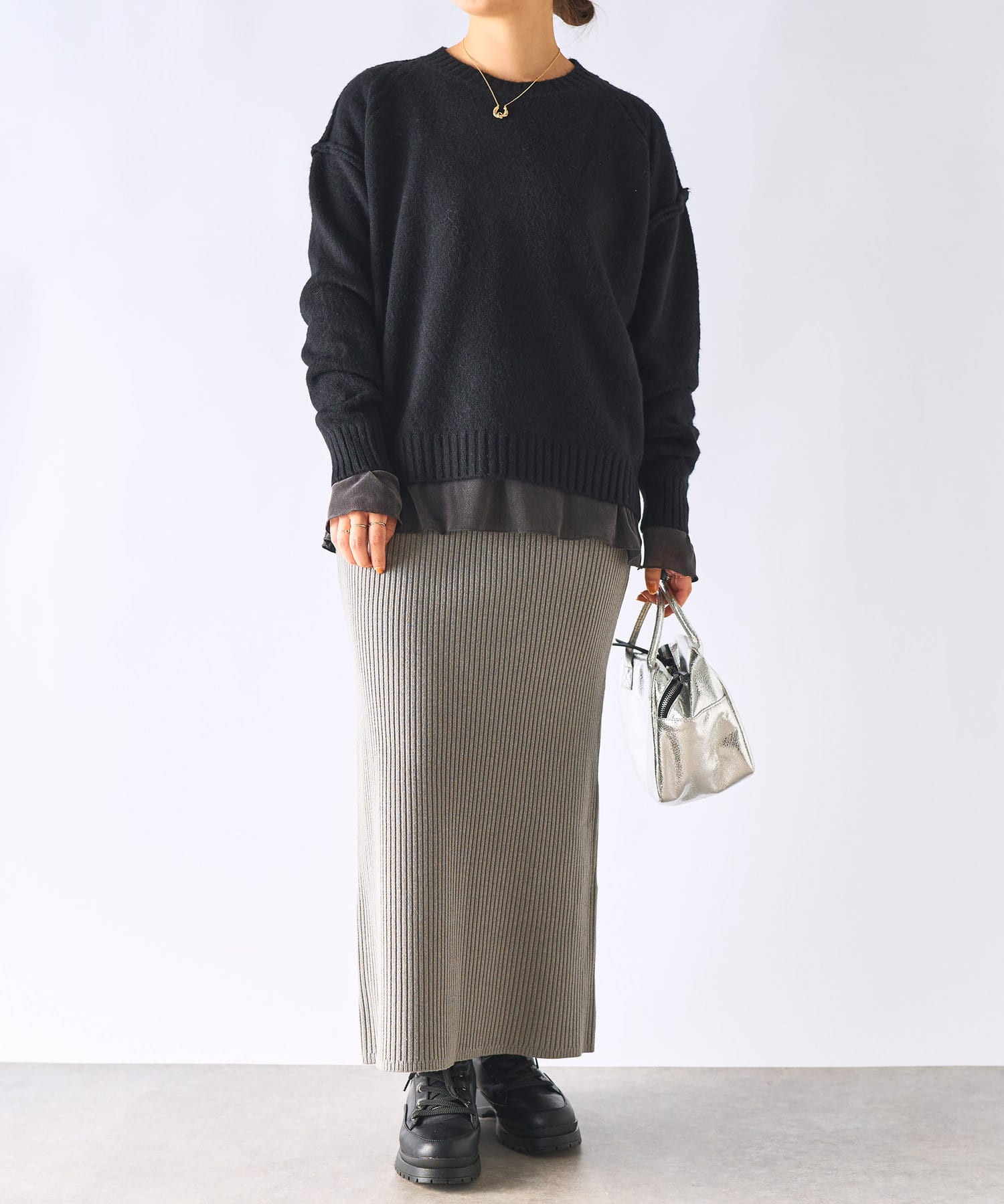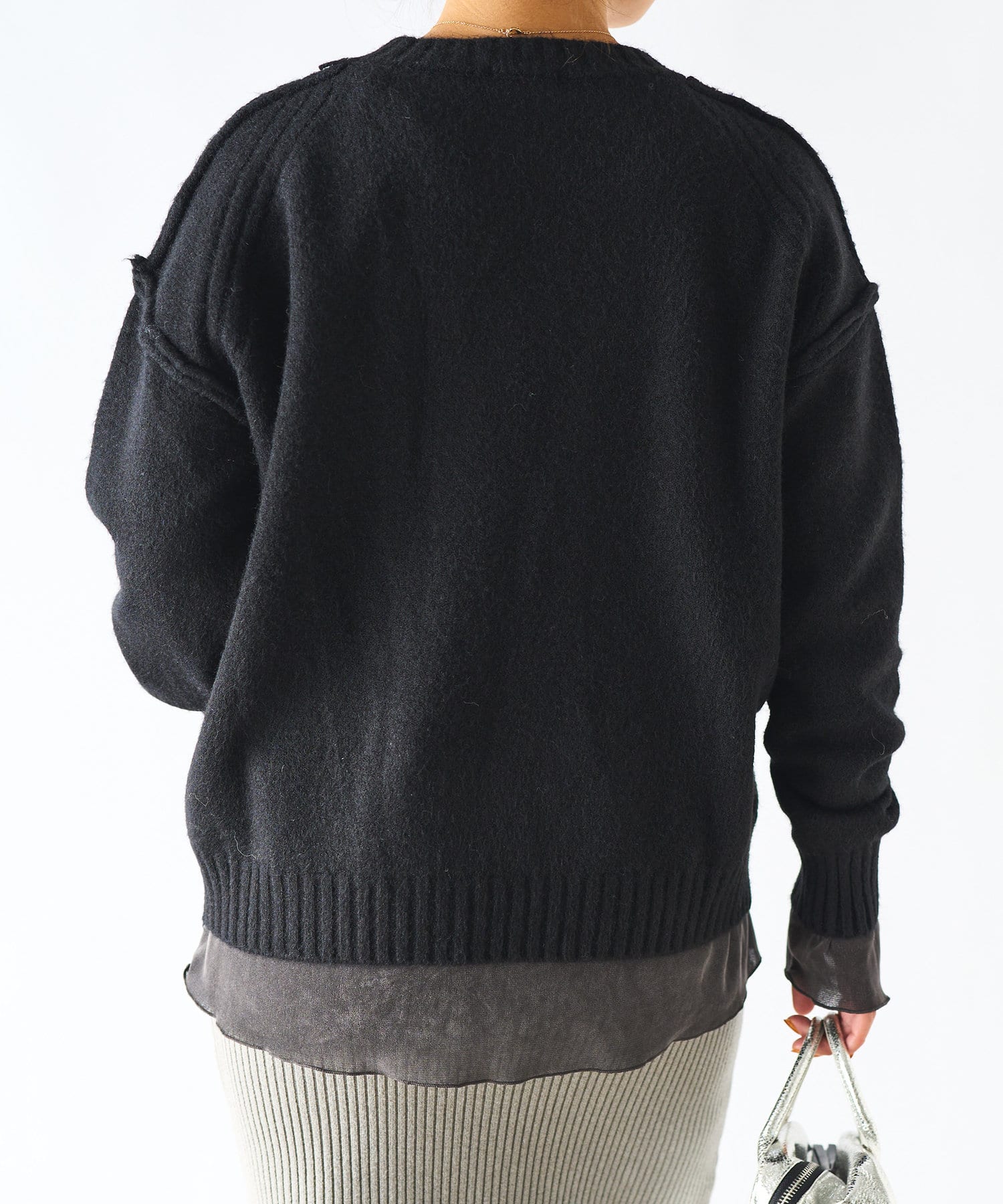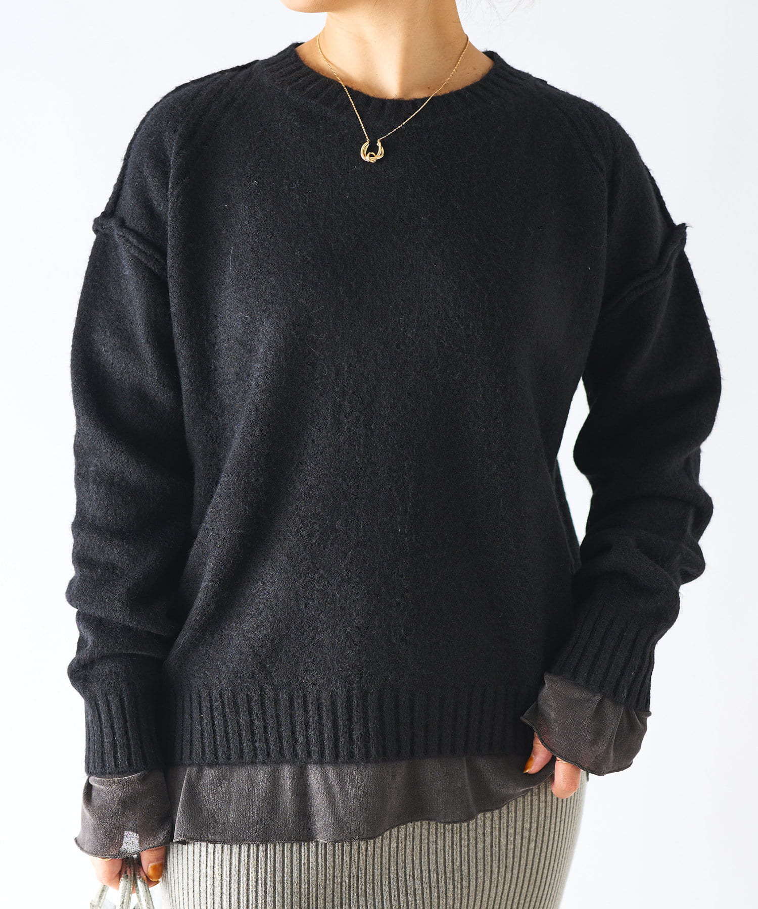 ・ゆったりめの身幅と着丈で幅広いスタイリングに着用できるもっちりニット