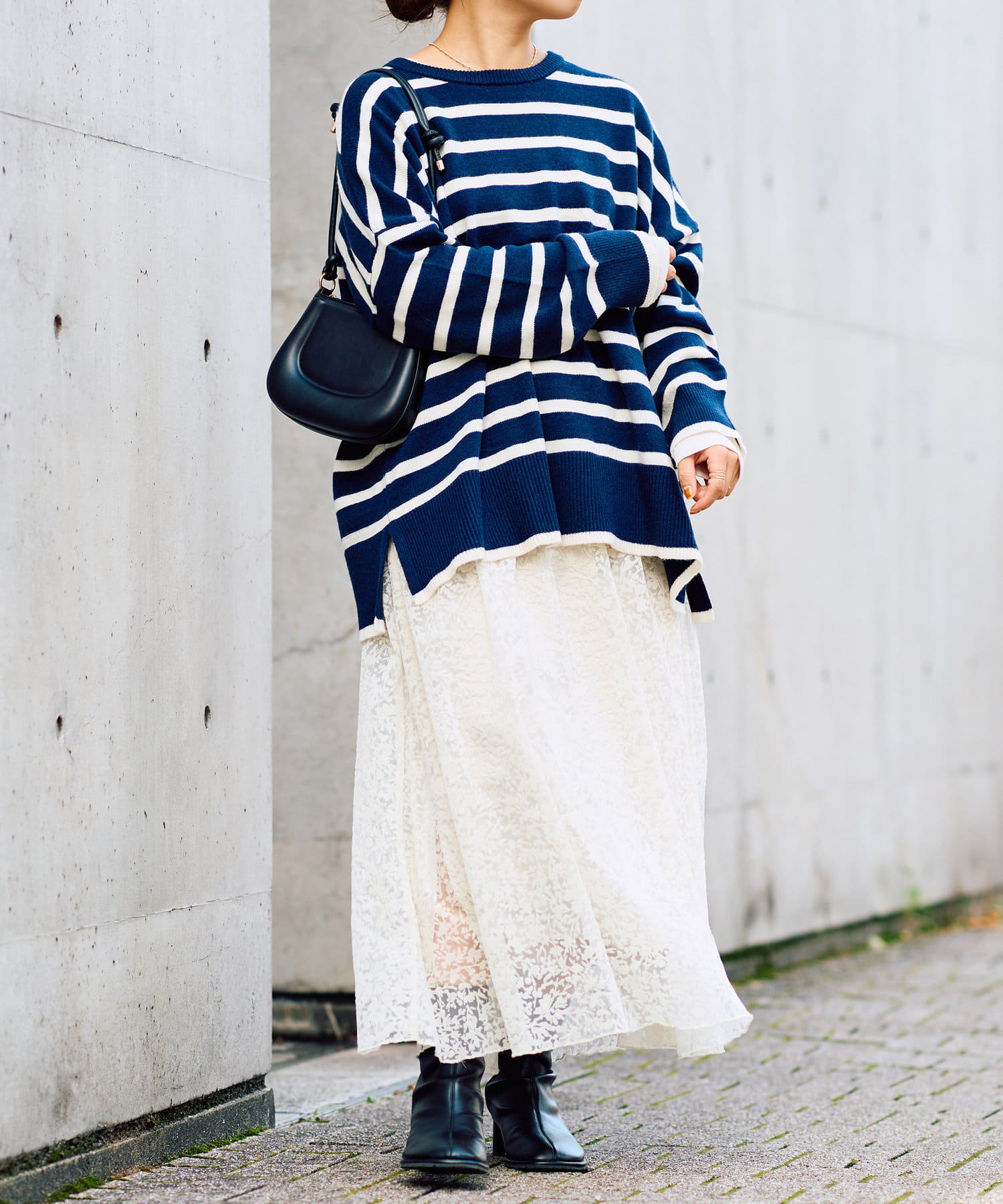 ボトムを選ばないのでキレイめからカジュアルまで幅広いコーデで楽しめます!