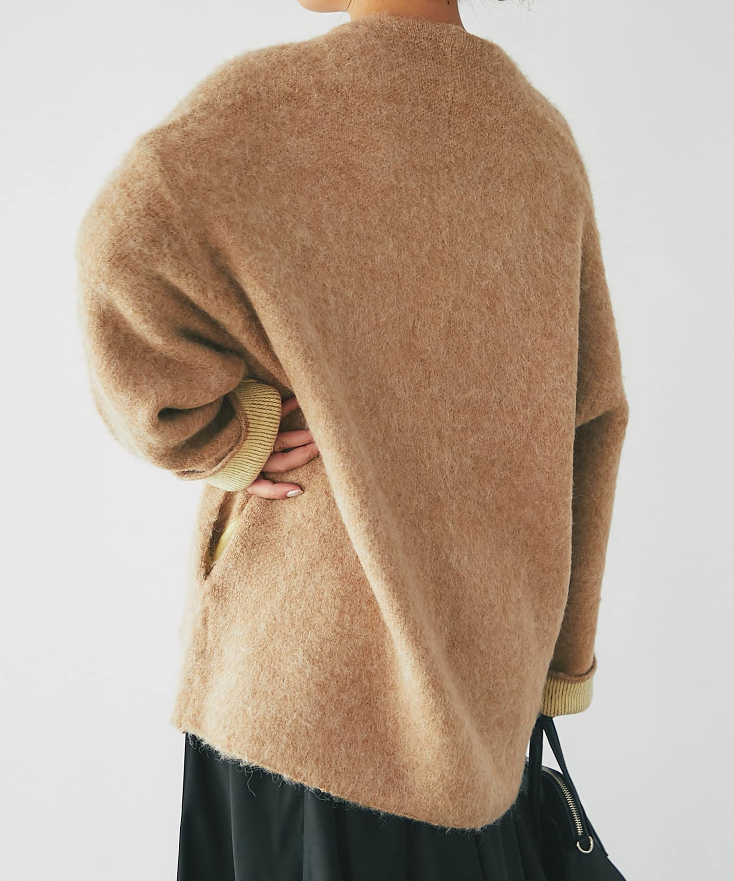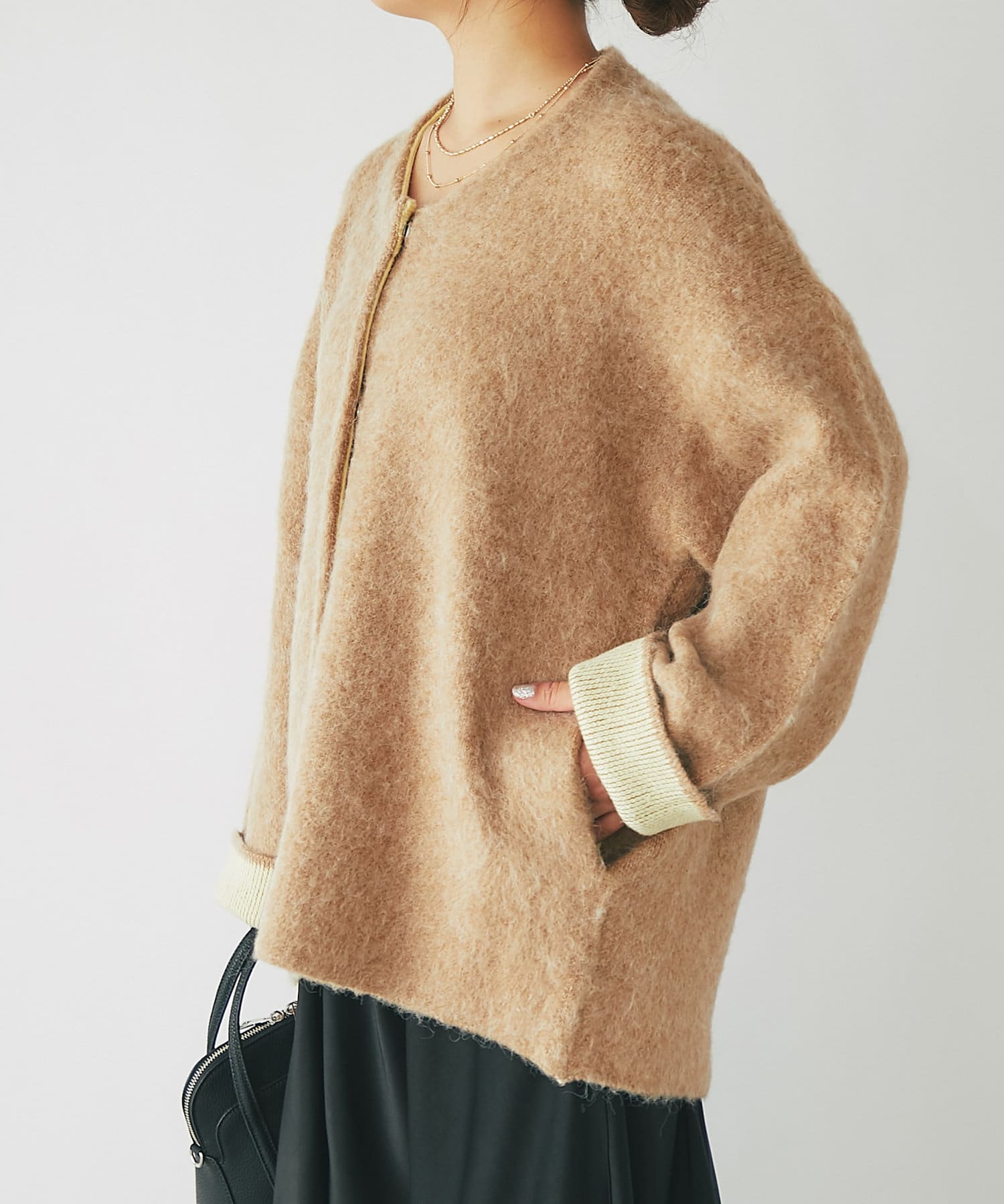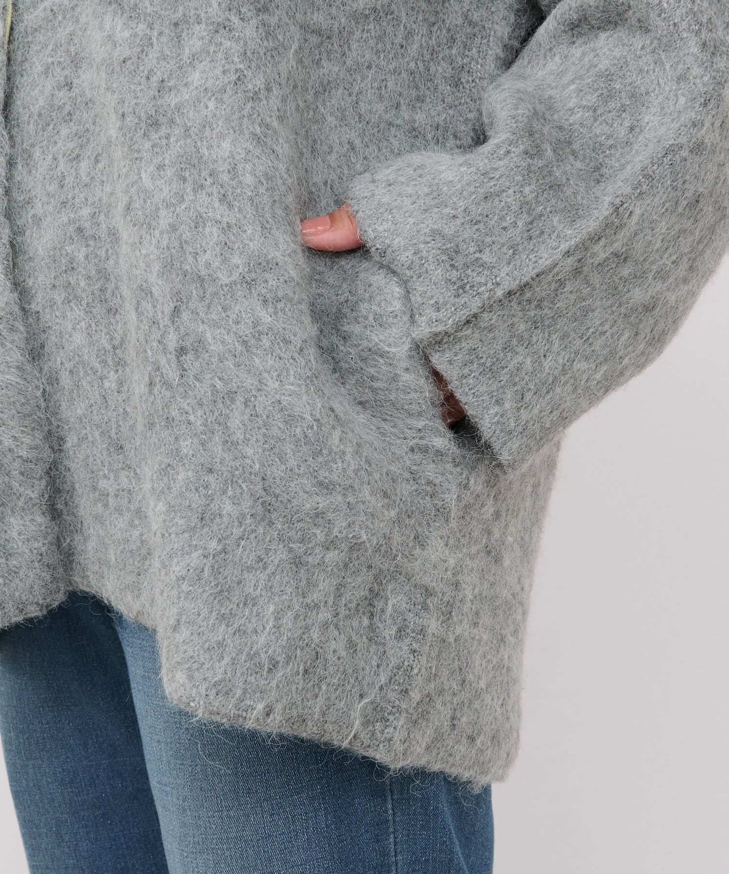 ・毛足のある柔らかなフェザーニットコート