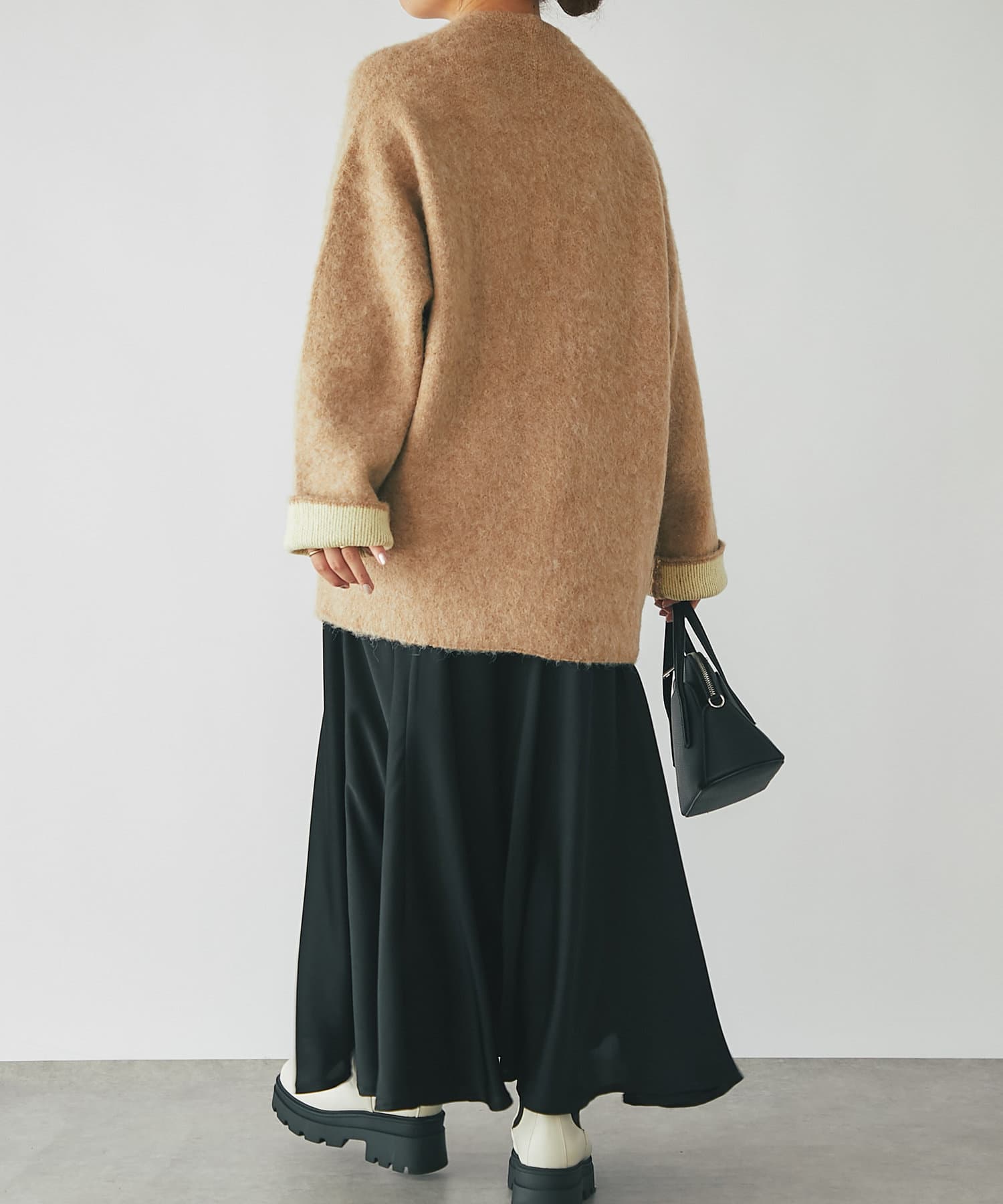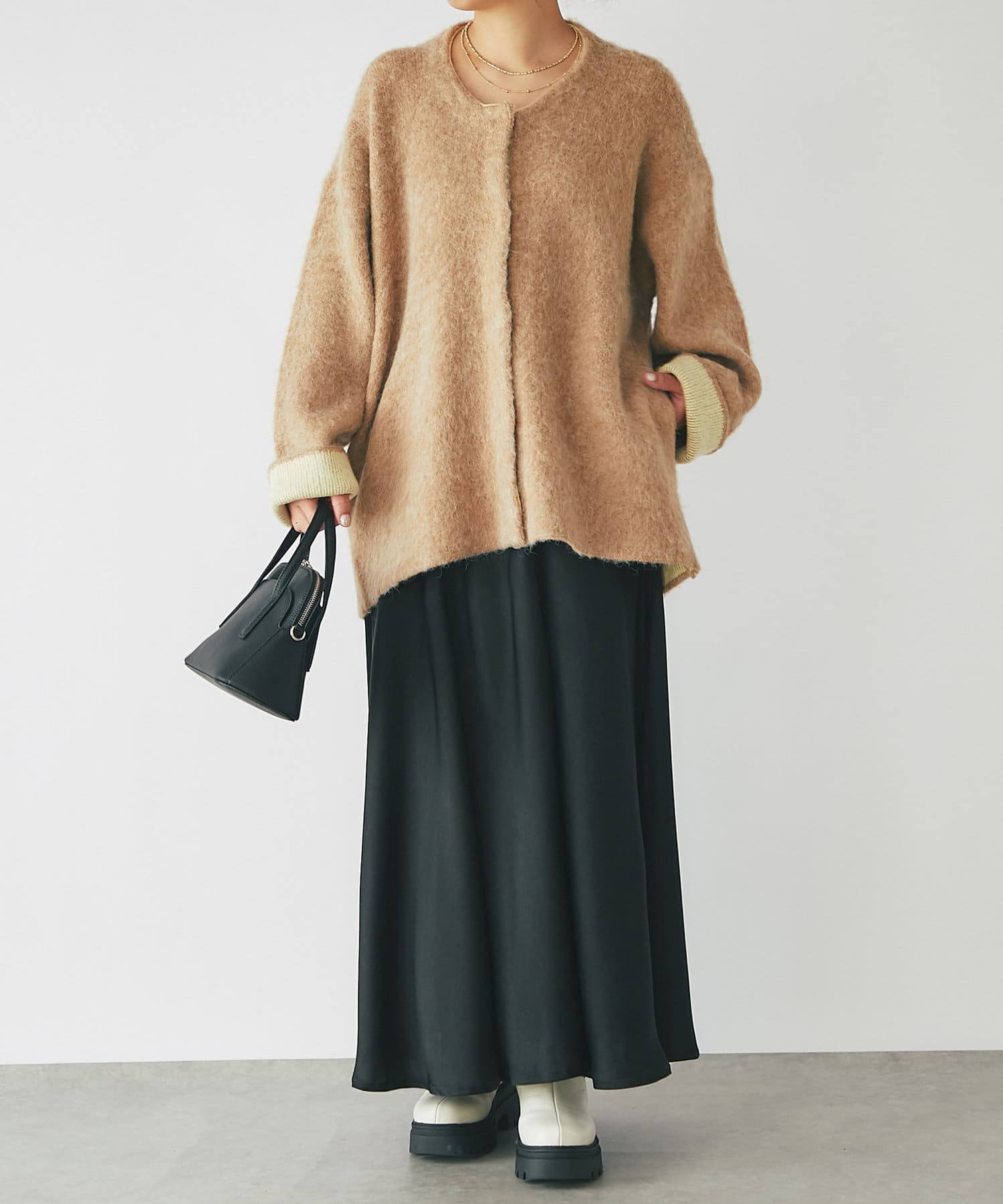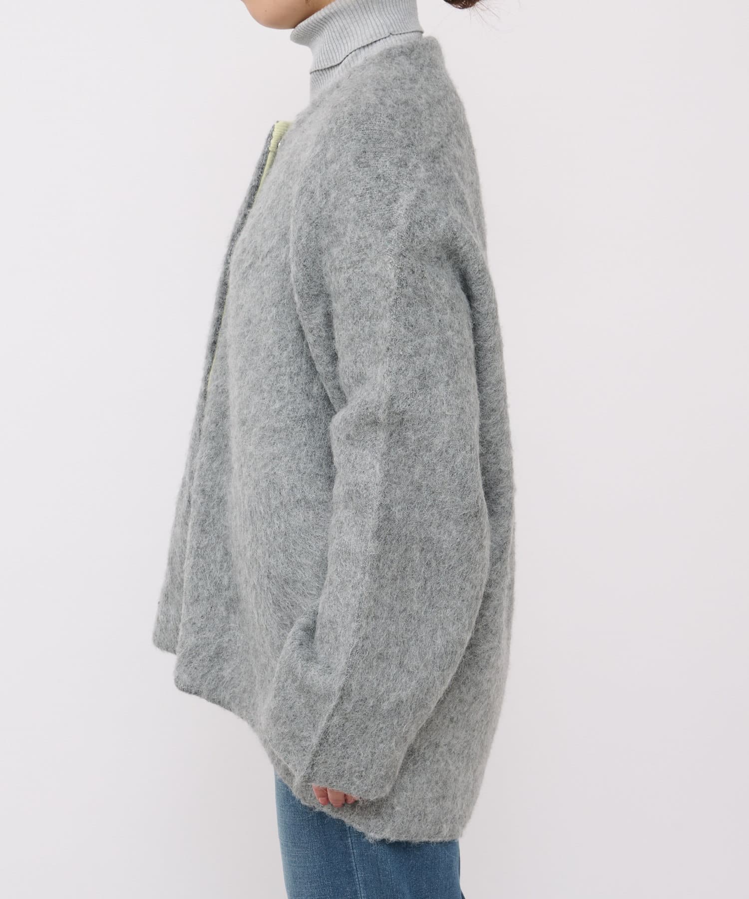 ・毛足のある柔らかなフェザーニットコート