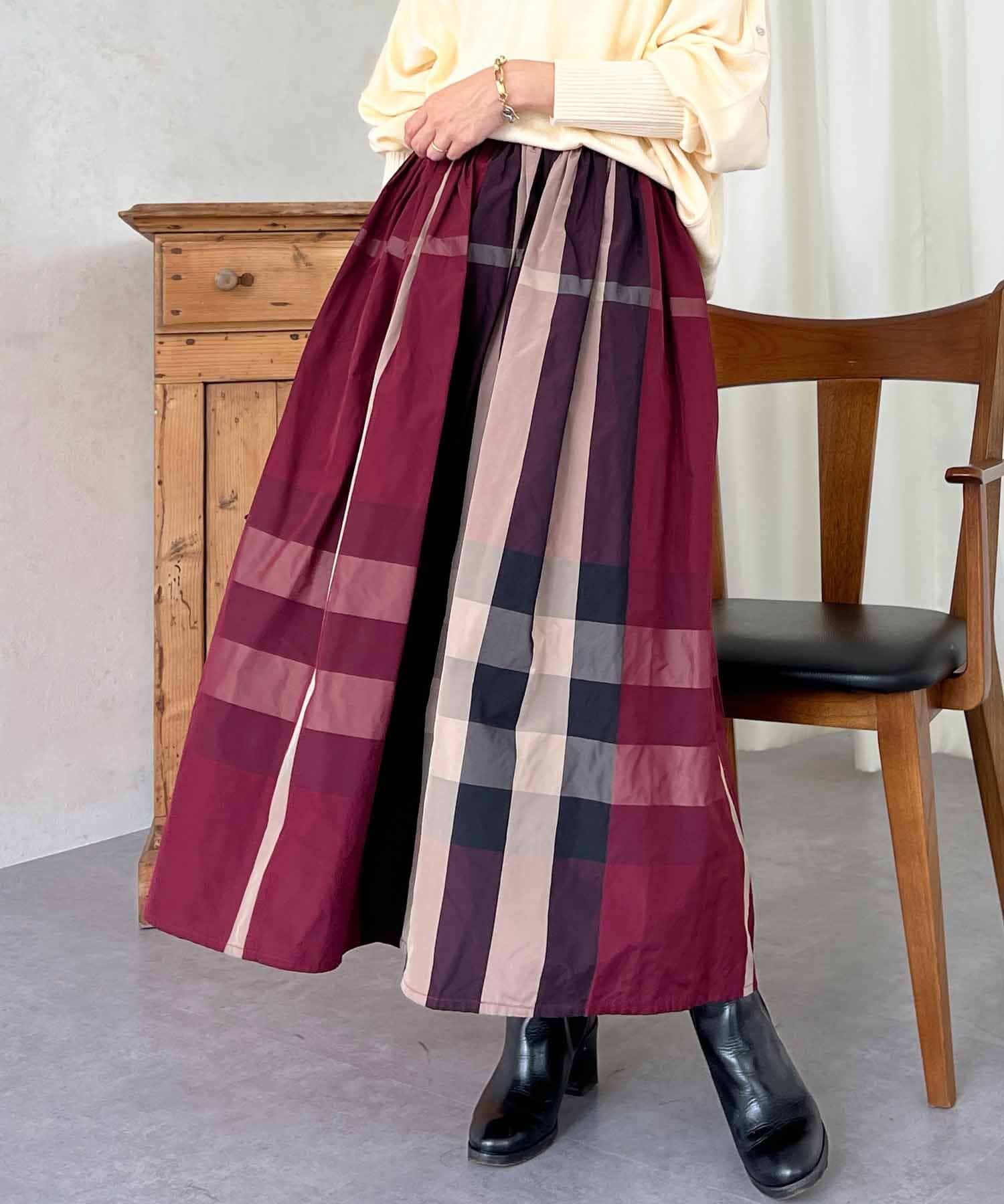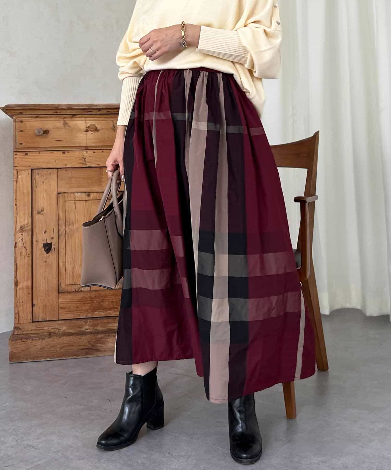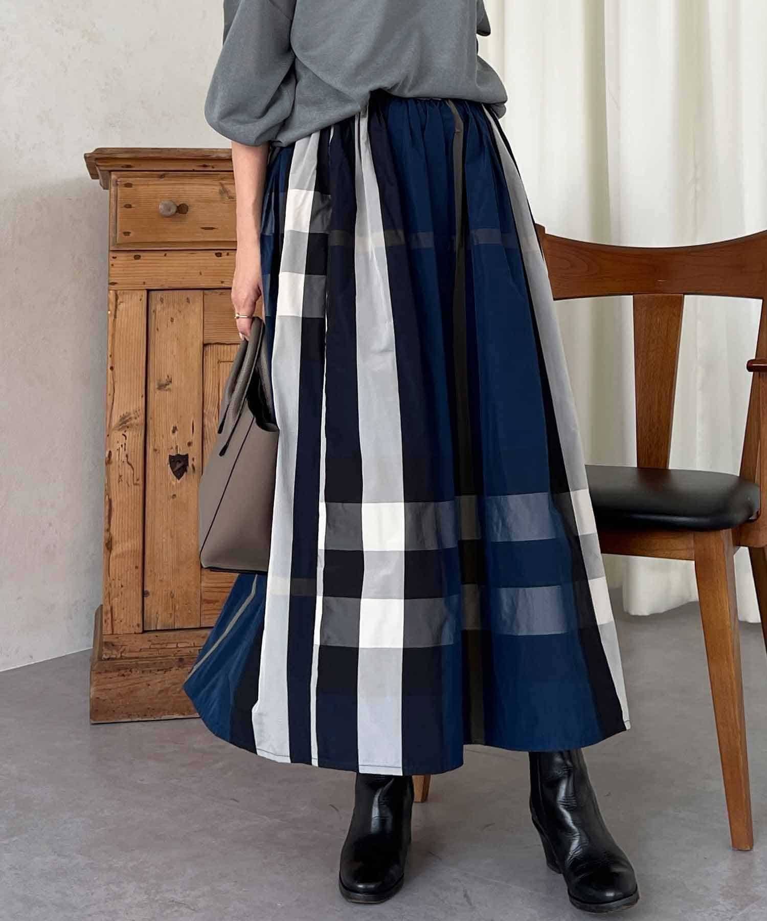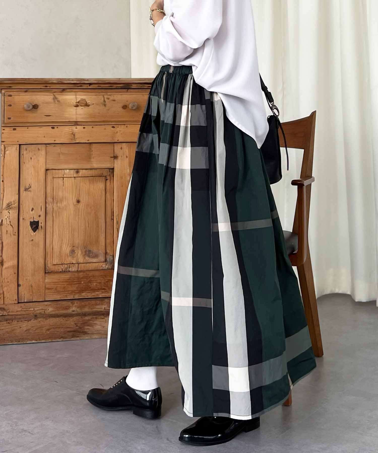 大柄チェックが目を惹く 存在感抜群のフレアスカート