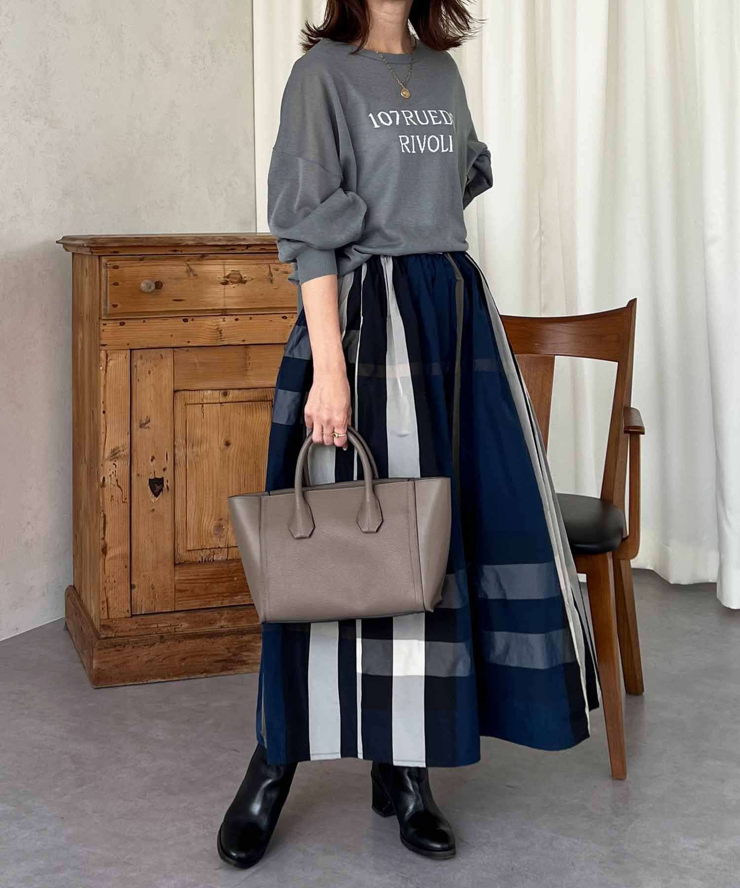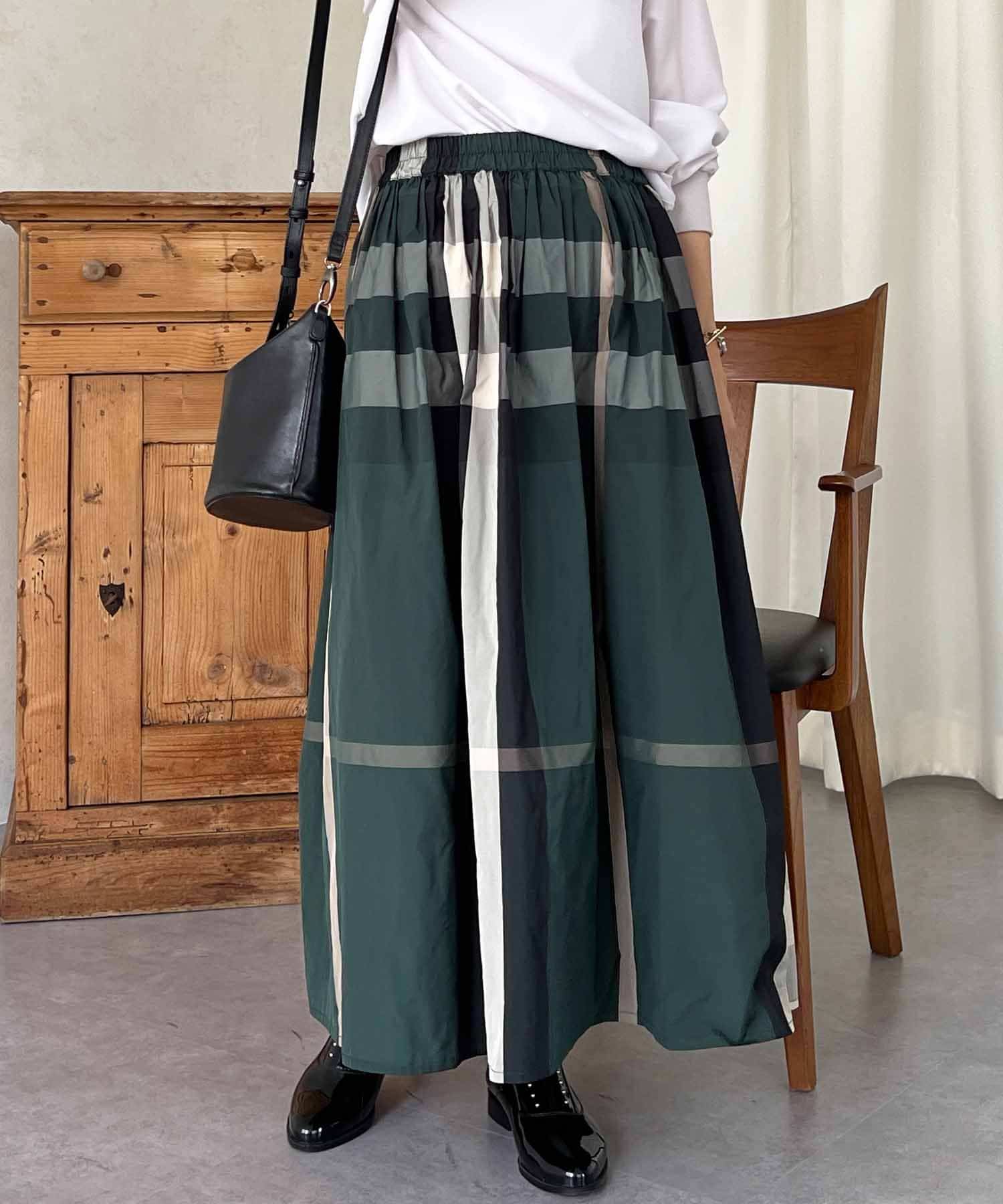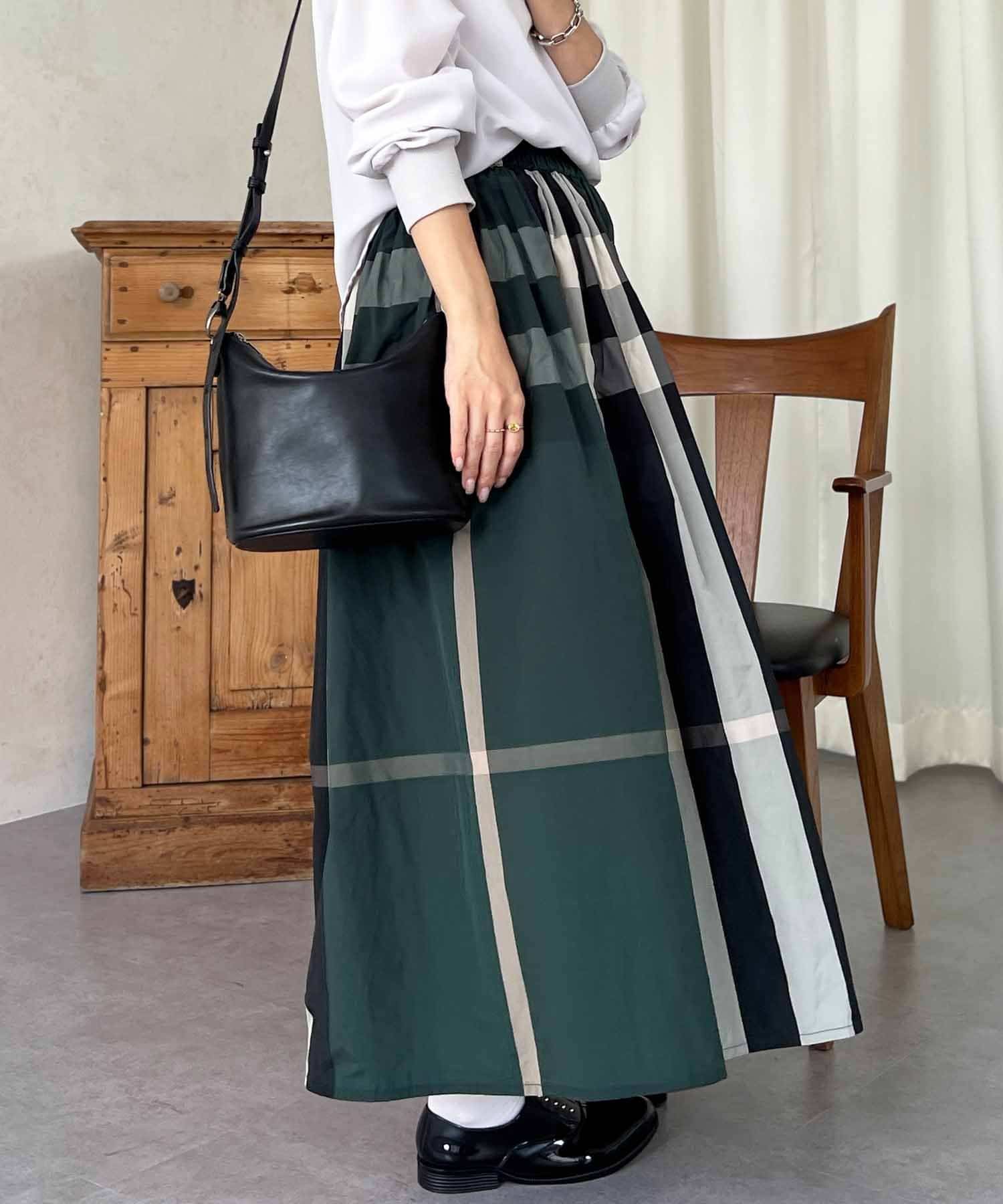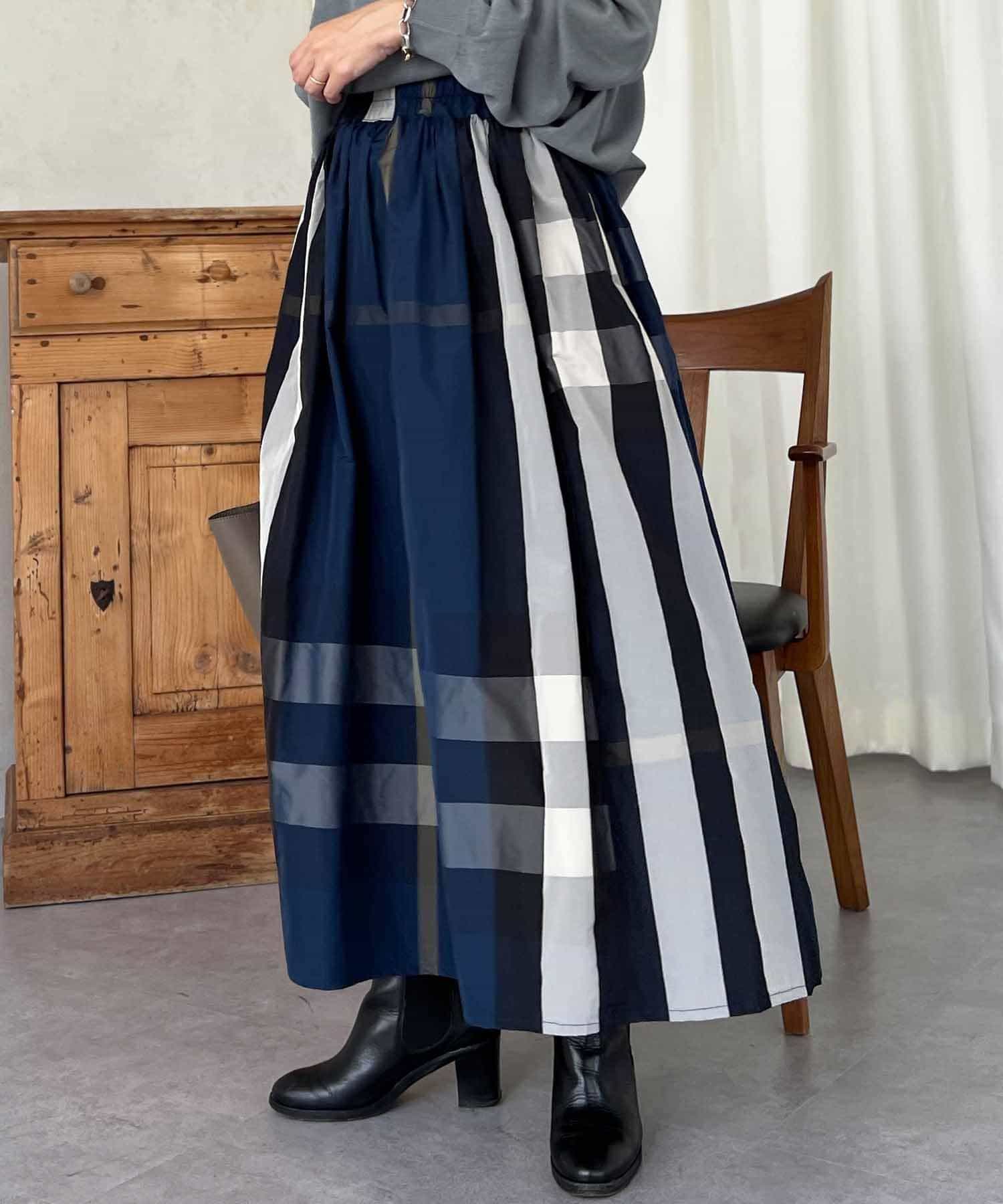 大柄チェックが目を惹く 存在感抜群のフレアスカート