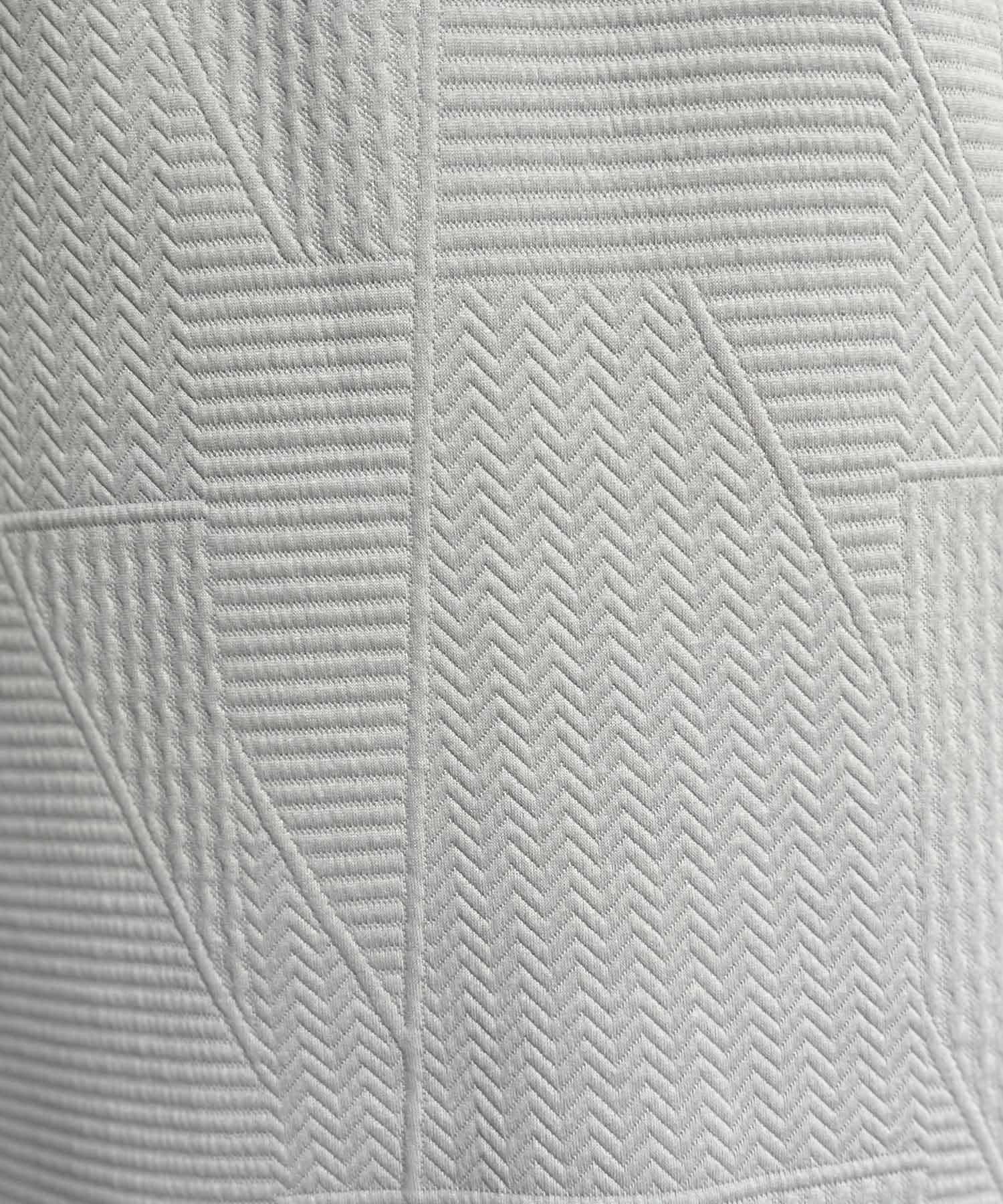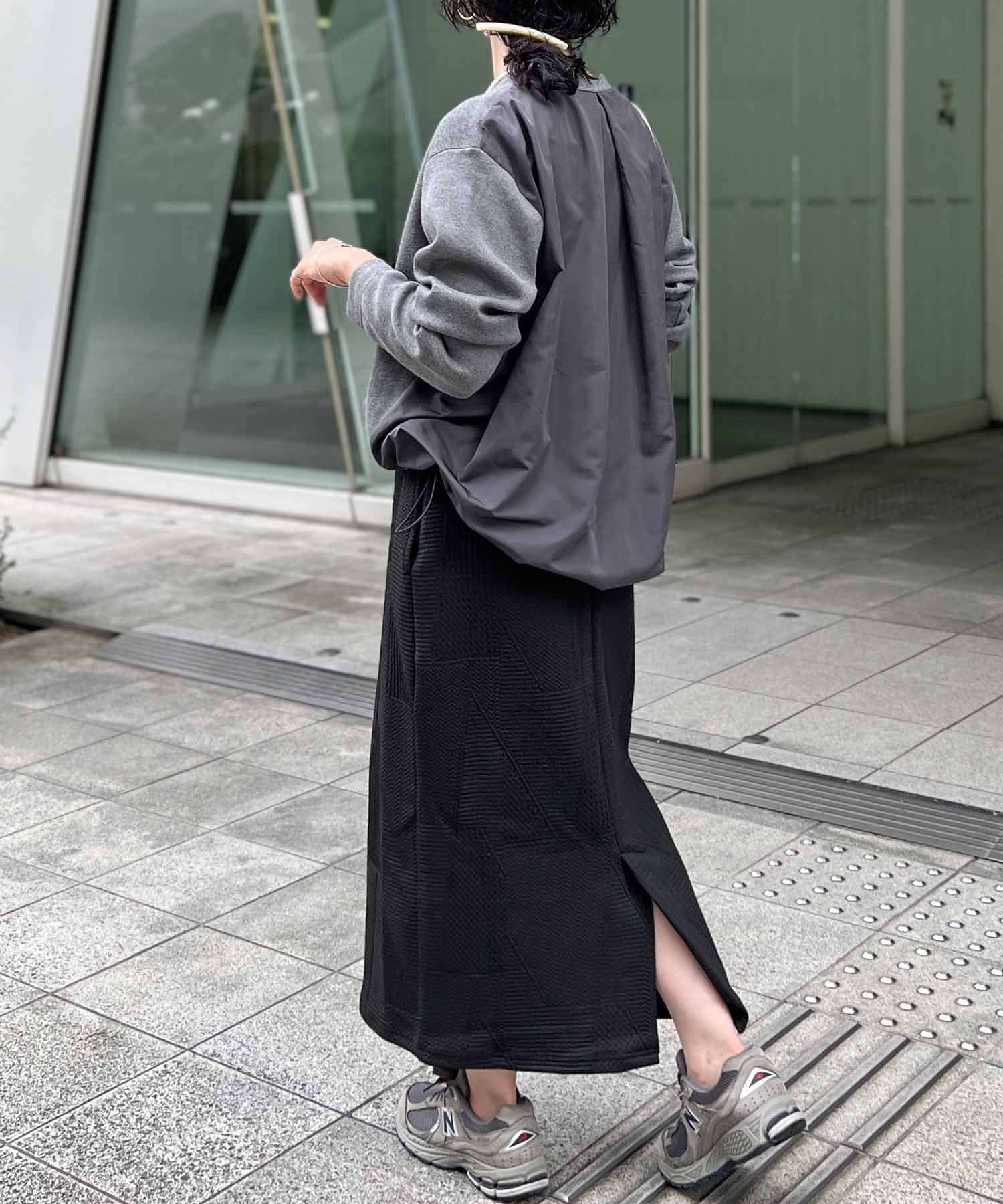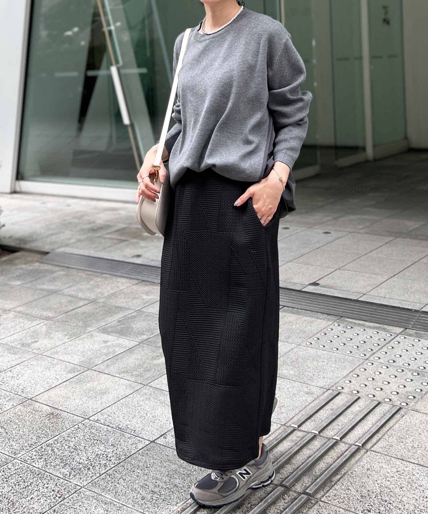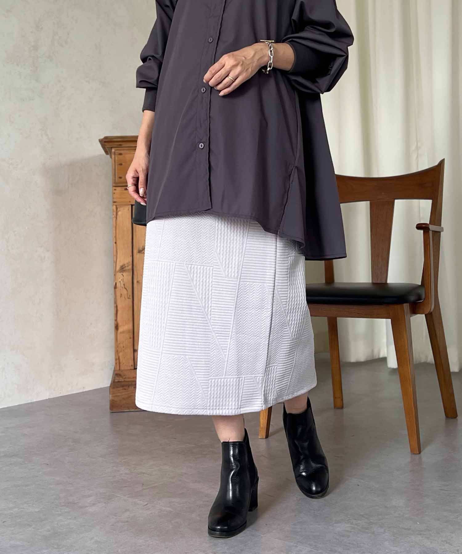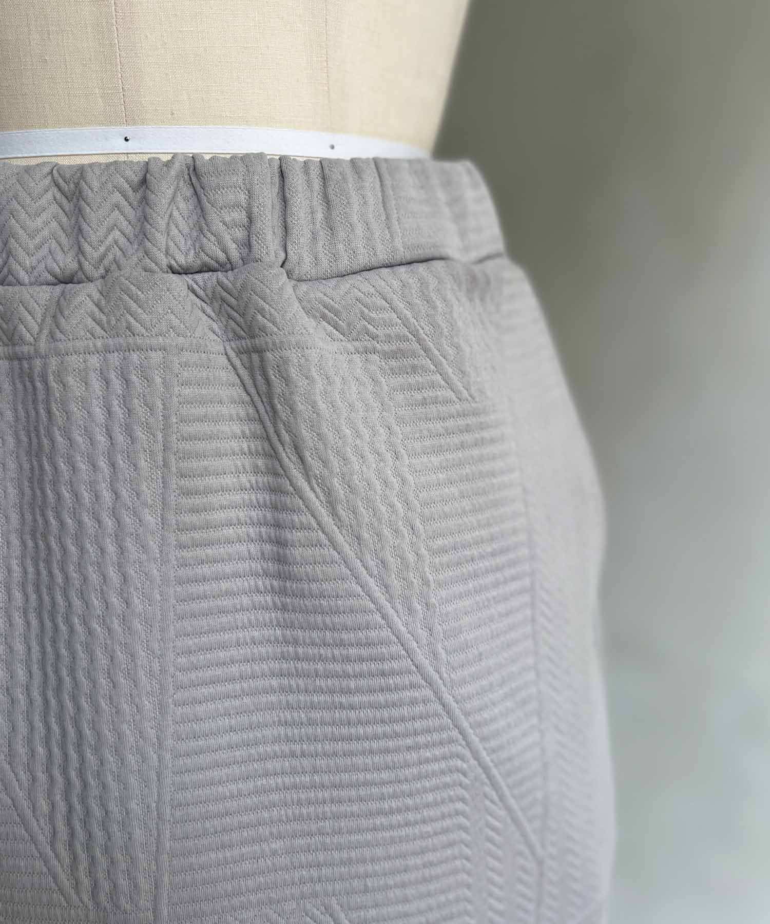 キルティング風の幾何学柄が特徴的な生地のタイトスカートです。