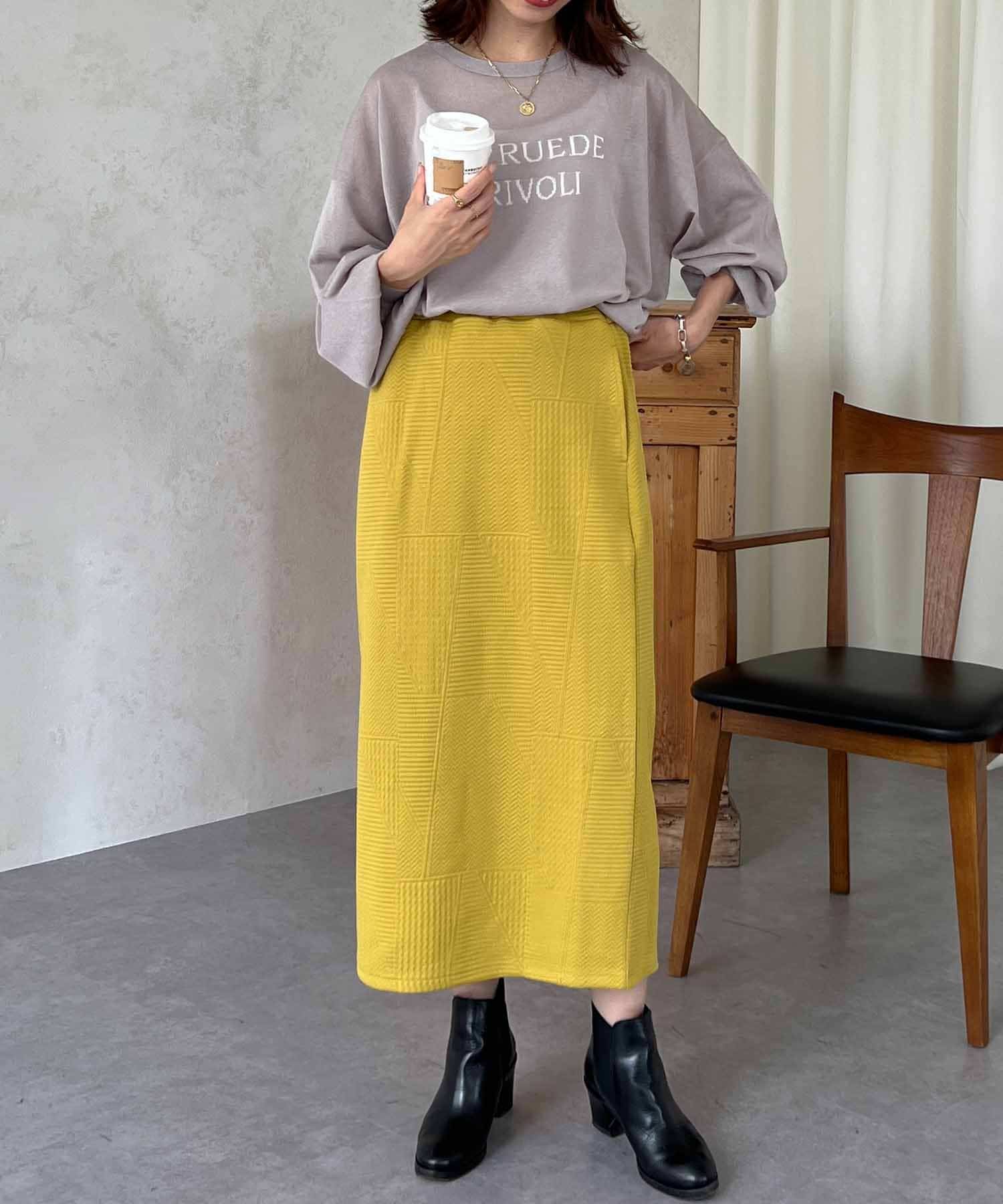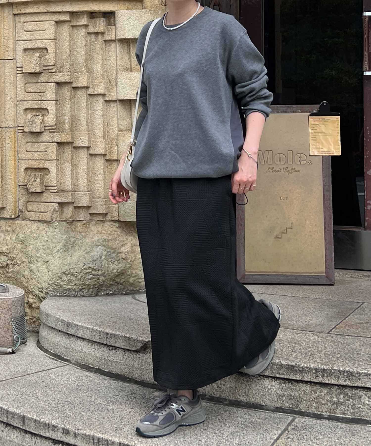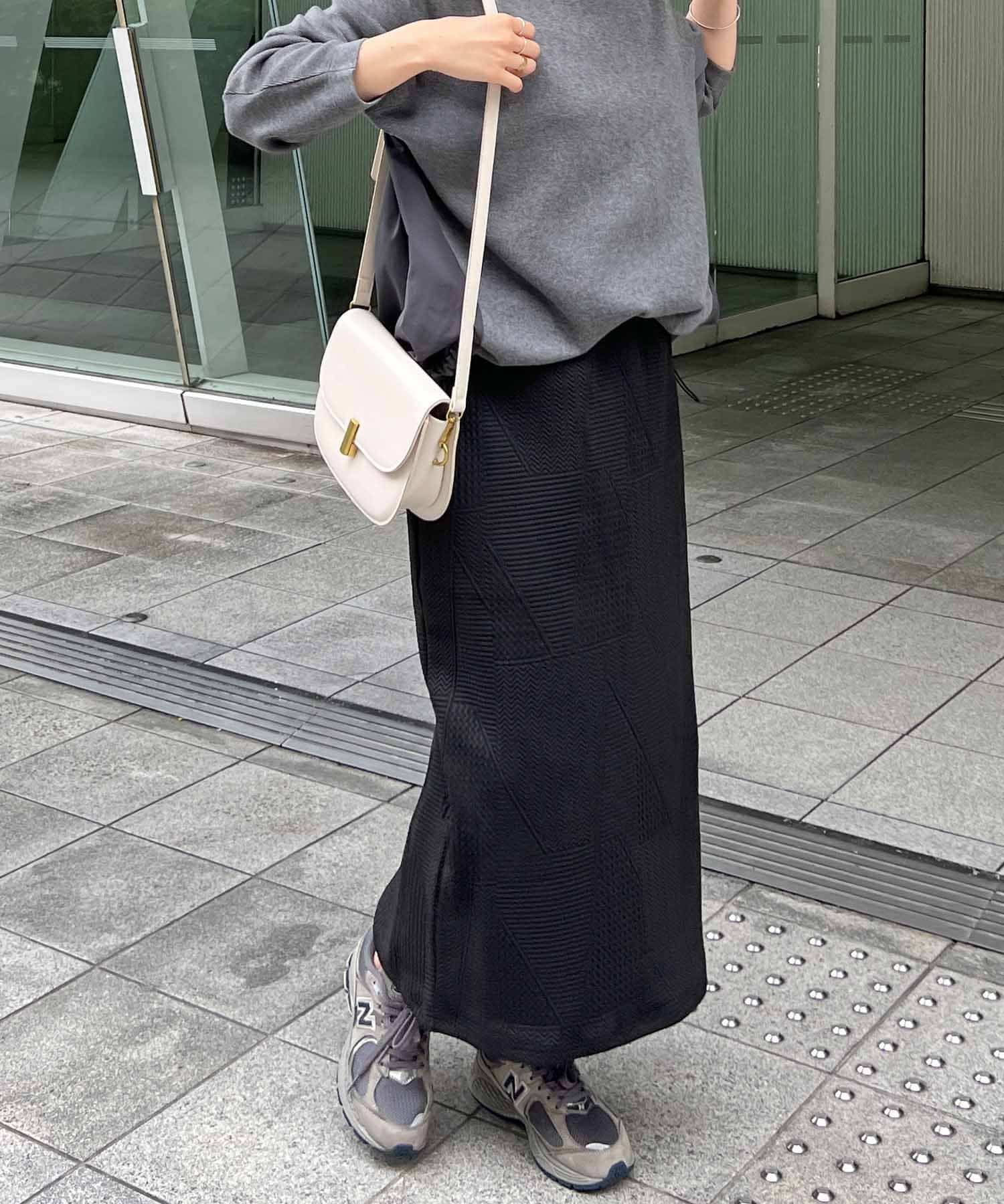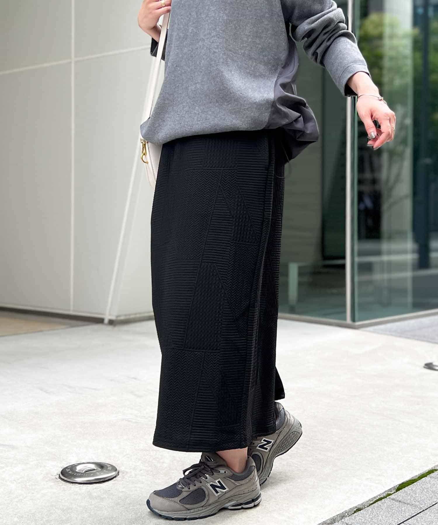 柄入りですが、同色無地なのでトップスの邪魔をしないのも嬉しいポイントですよね!