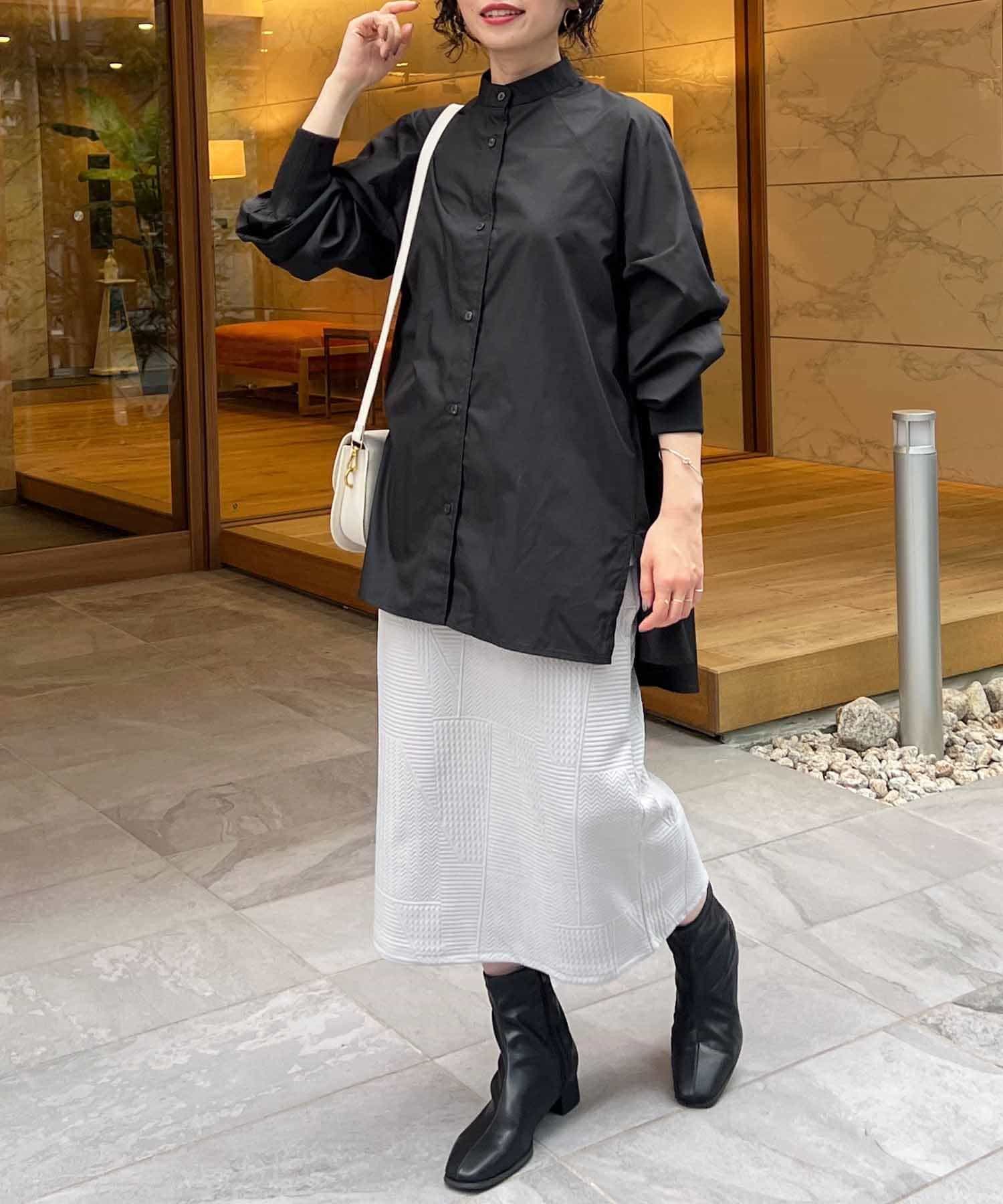 Iラインシルエットですっきりと見せてくれるので、着丈が長めのトップスで合わせてもバランスよく合わせていただけます。