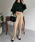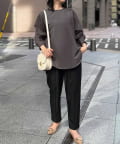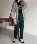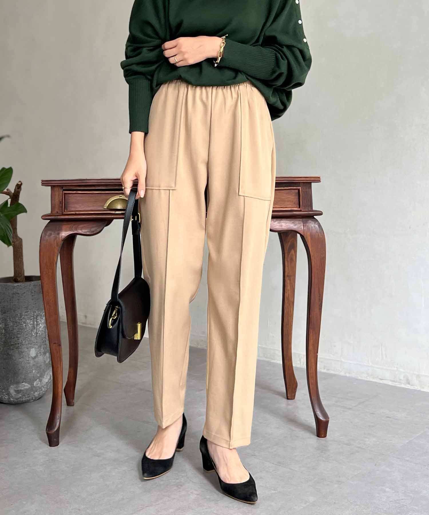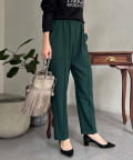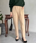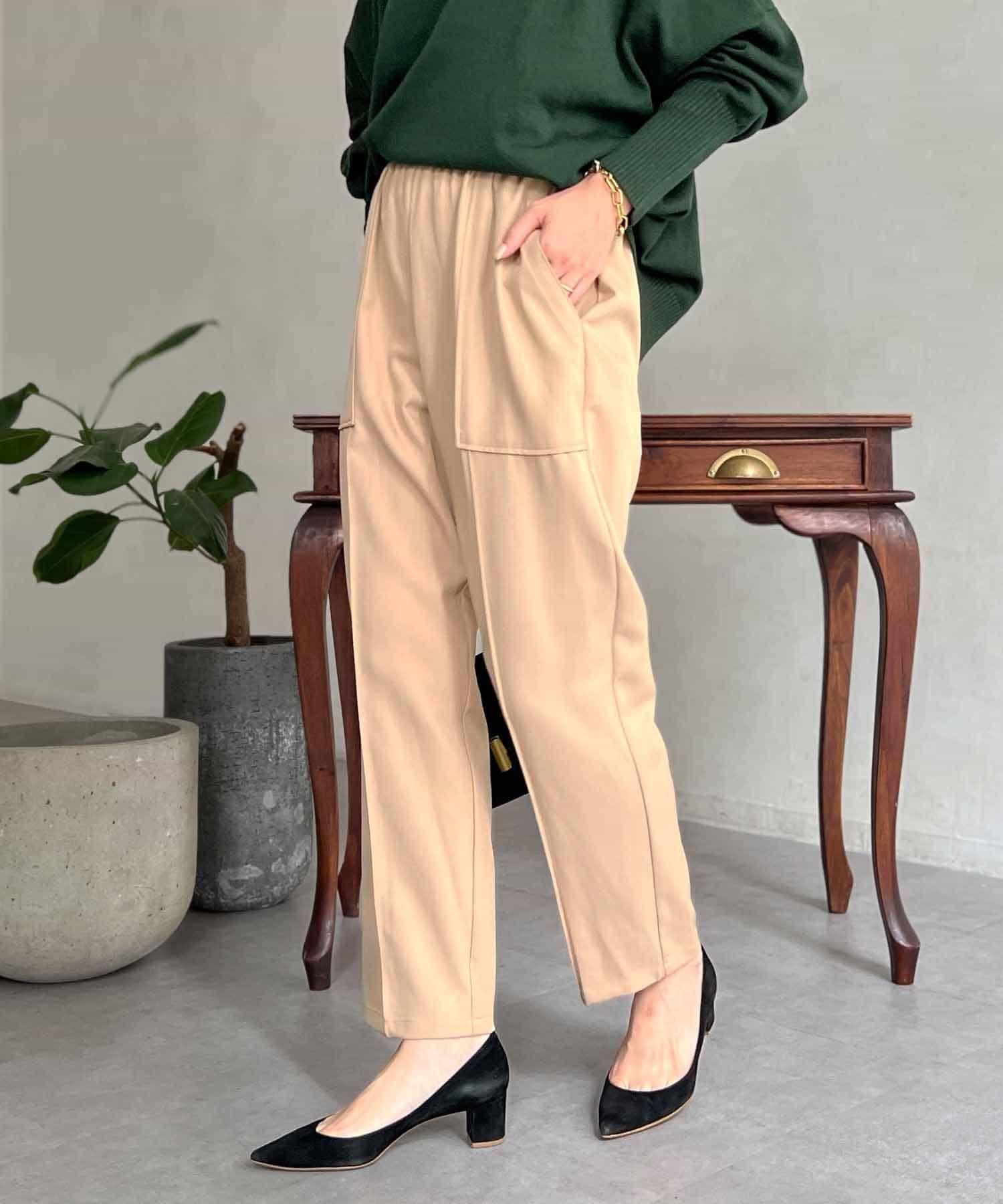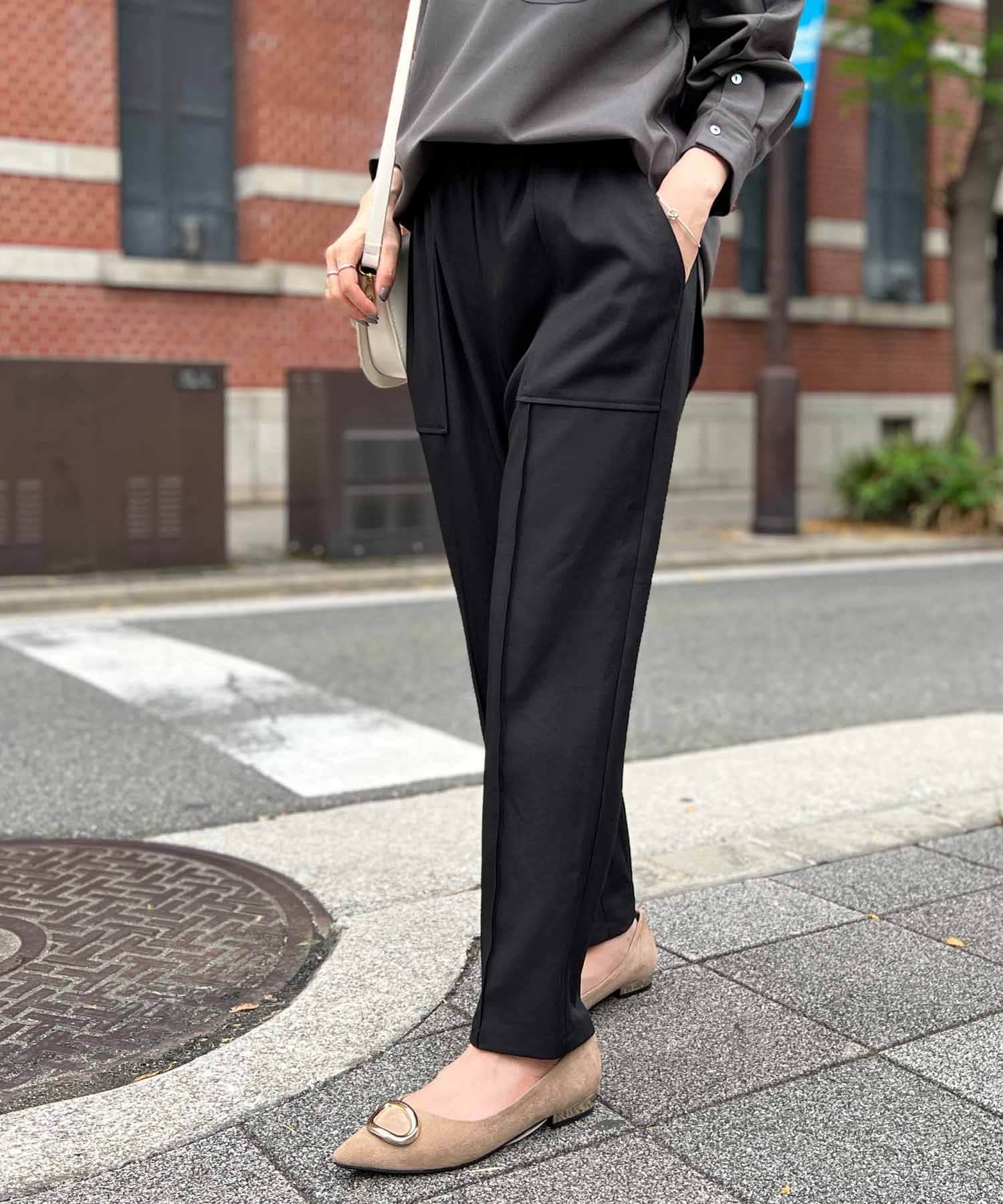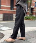 カジュアルになりがちなストレートパンツを光沢感とストレッチ性のある素材を使用し、上品な雰囲気に仕上げました。