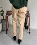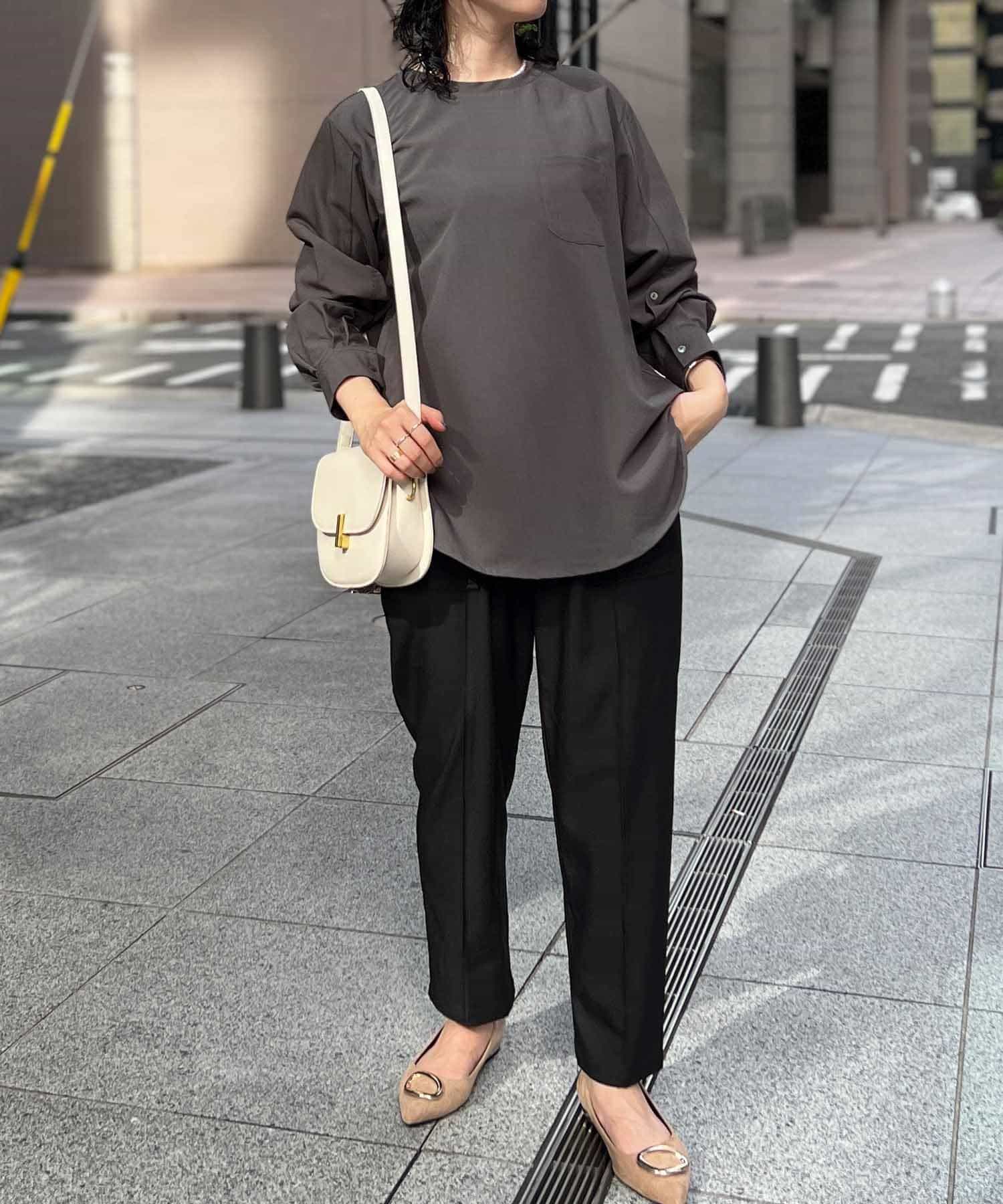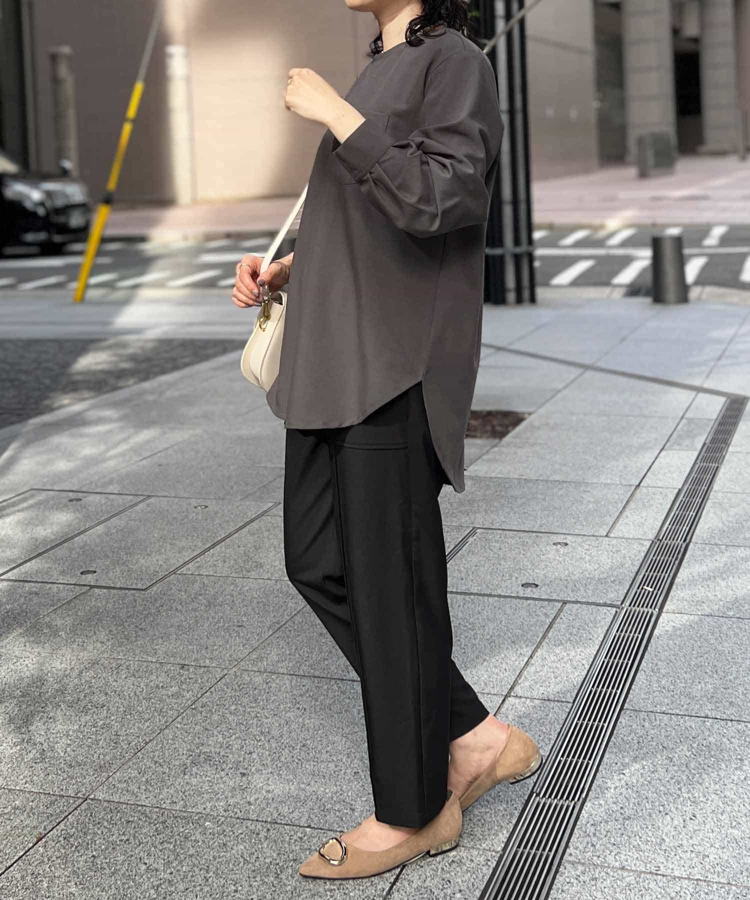 キレイ目見えのストレートラインの為、ブラウスやシャツなどきちんと間のあるアイテムとも好相性なパンツです。