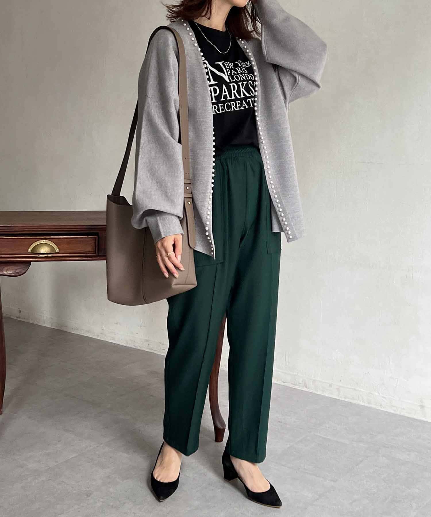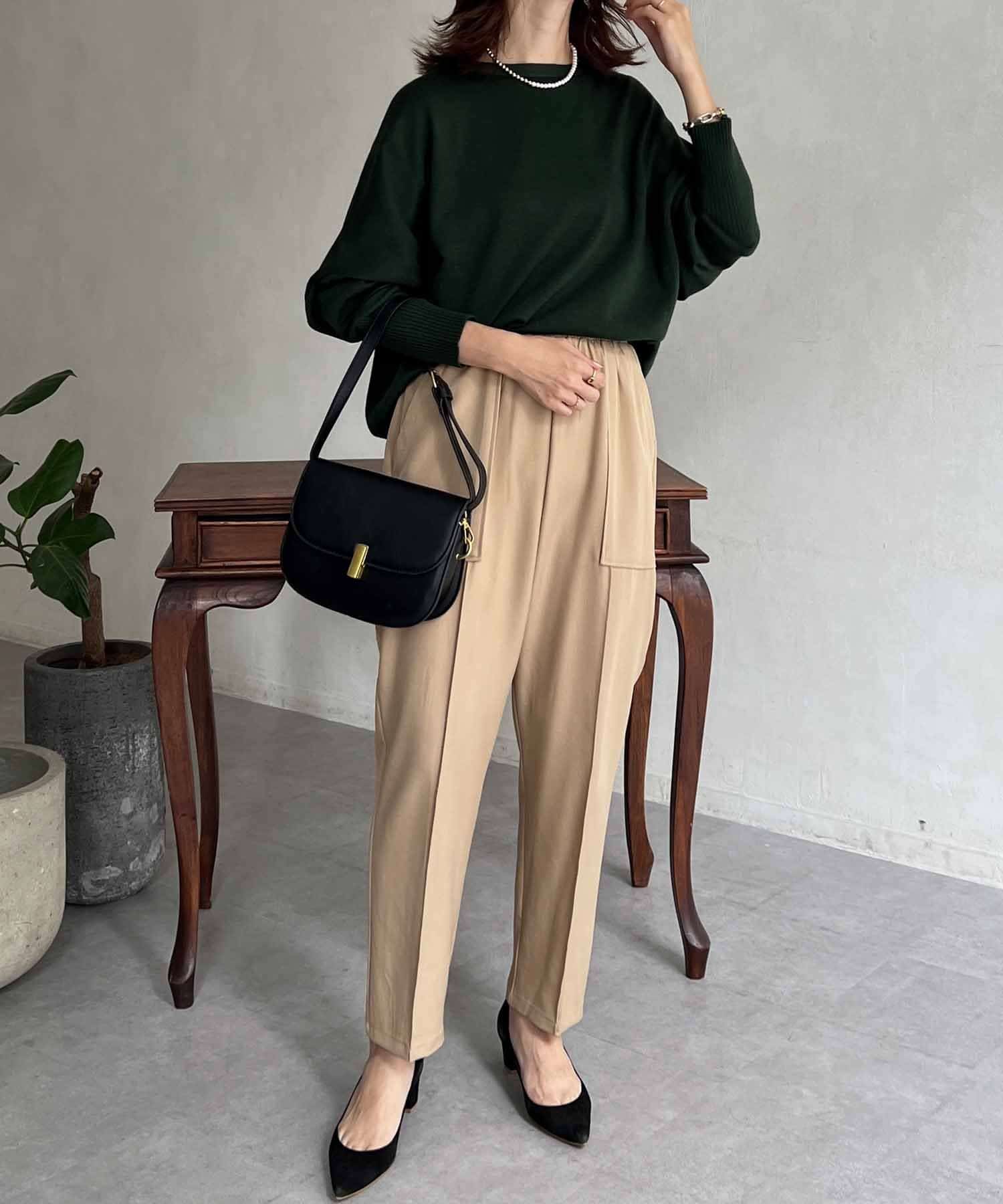 ベーシックなストレートデザインなので、ドルマンニットやデザイン性のあるトップスと合わせるのもおすすめです。