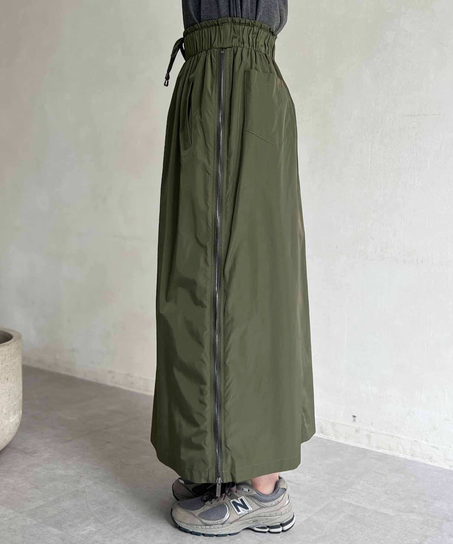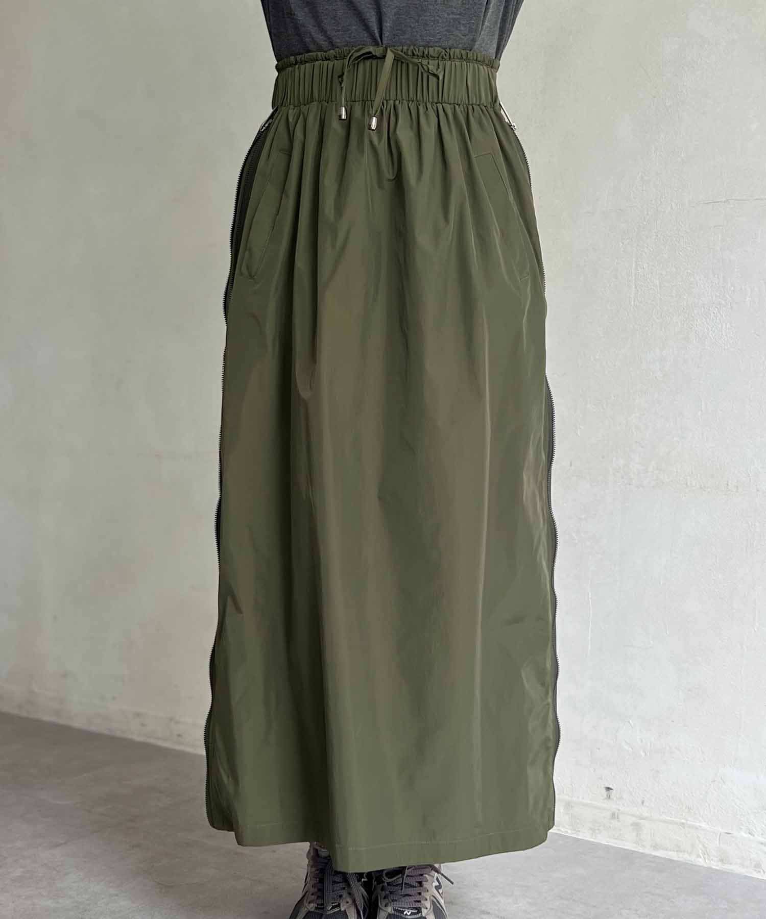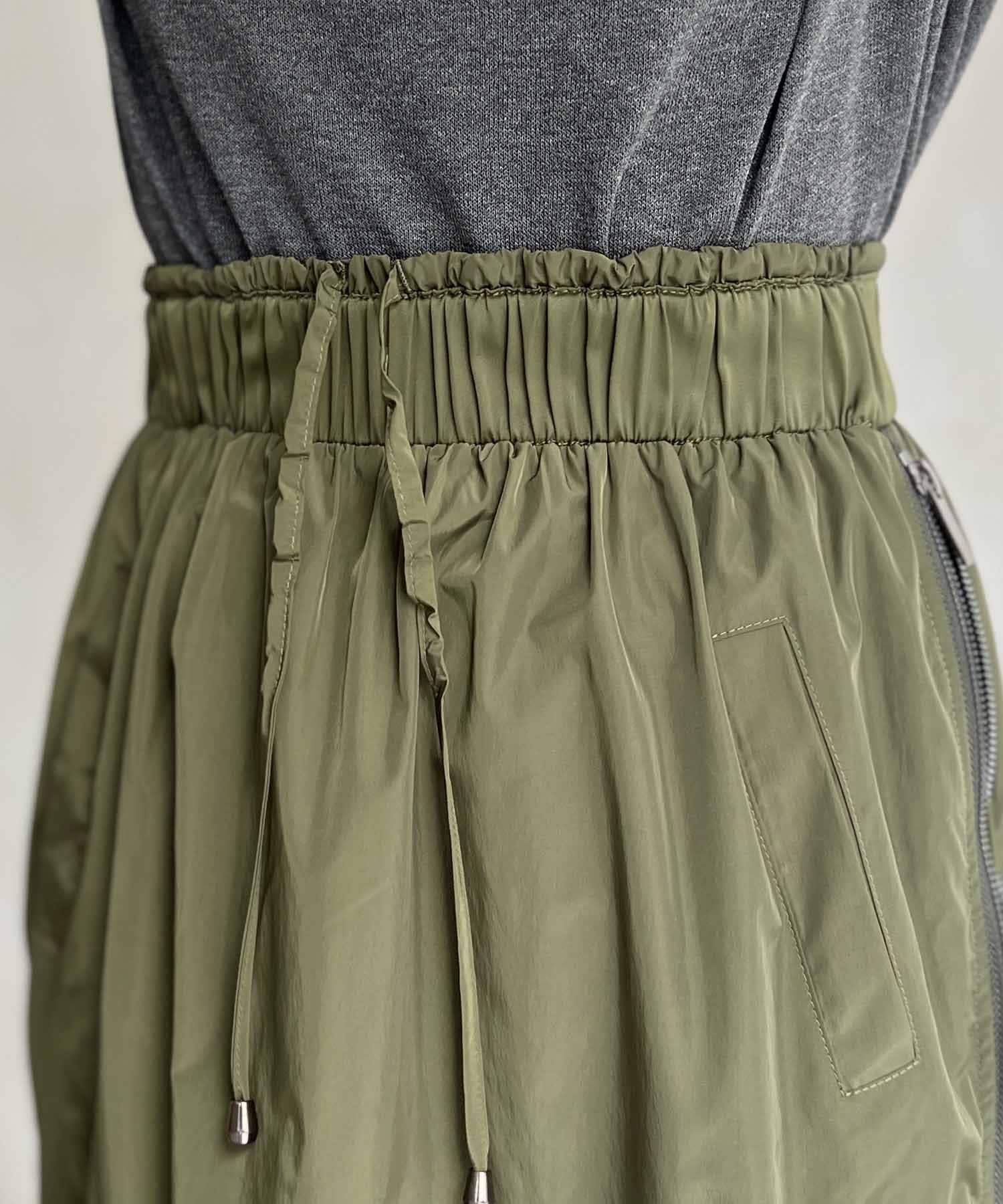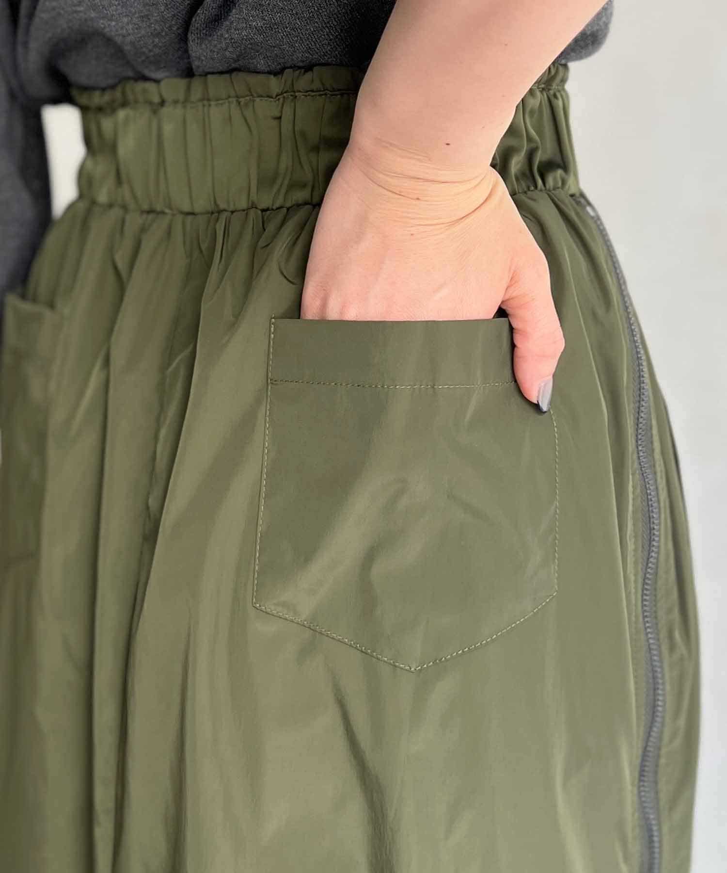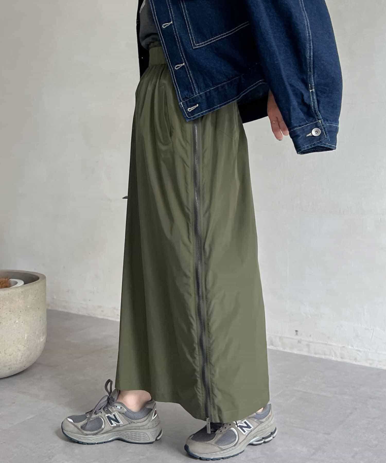 一見シンプルなナイロンスカートですが、サイドのジップに注目!