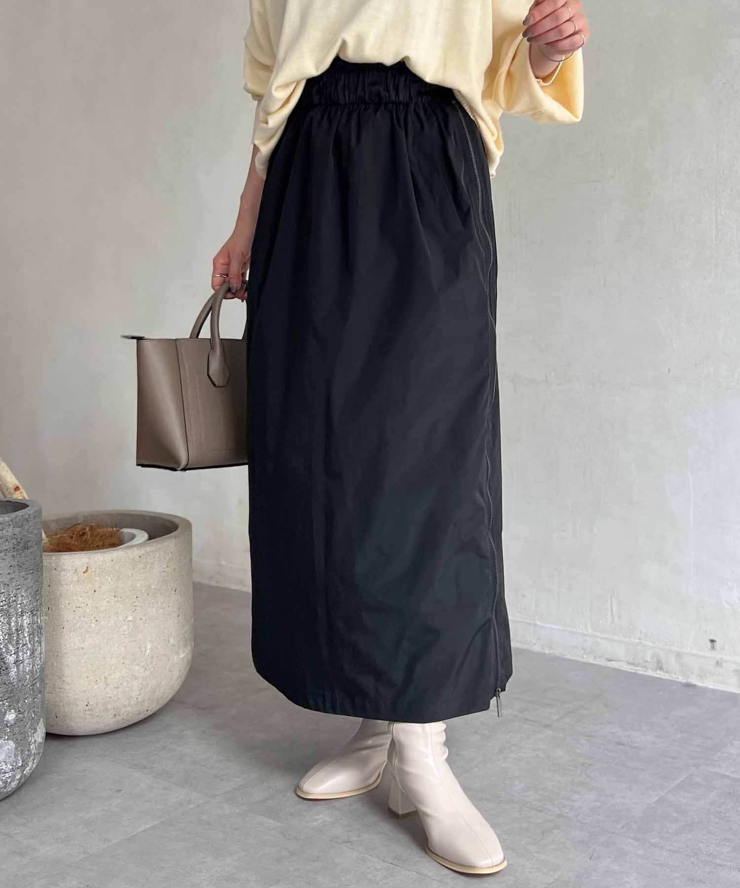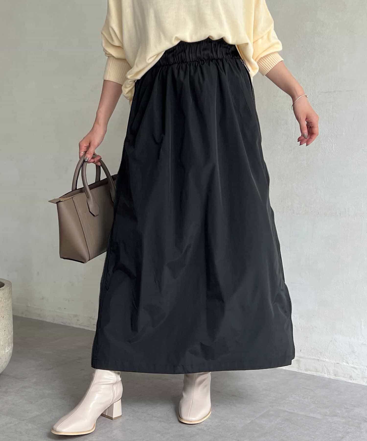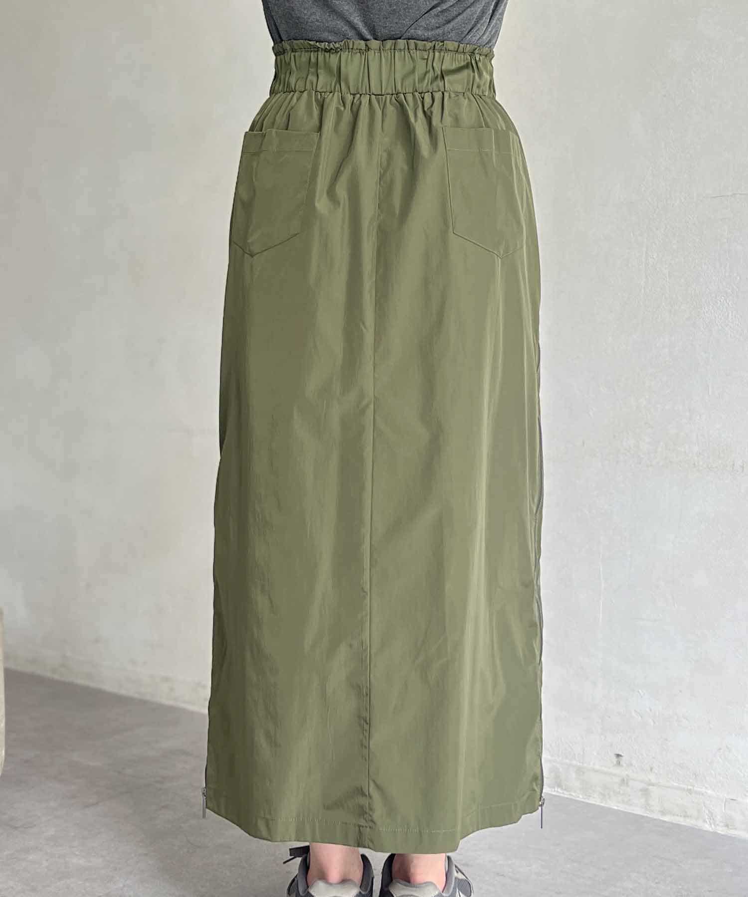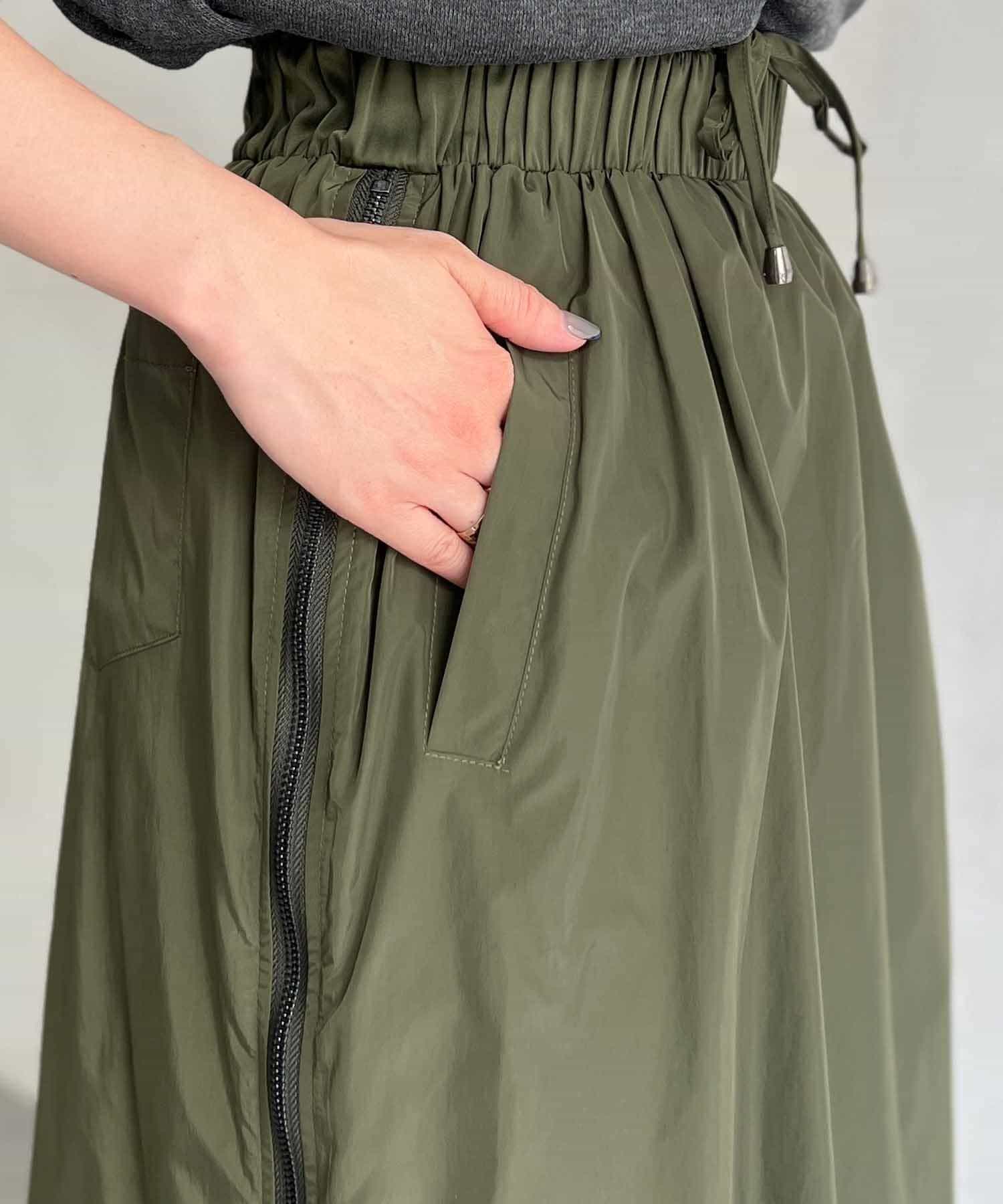 一見シンプルなナイロンスカートですが、サイドのジップに注目!