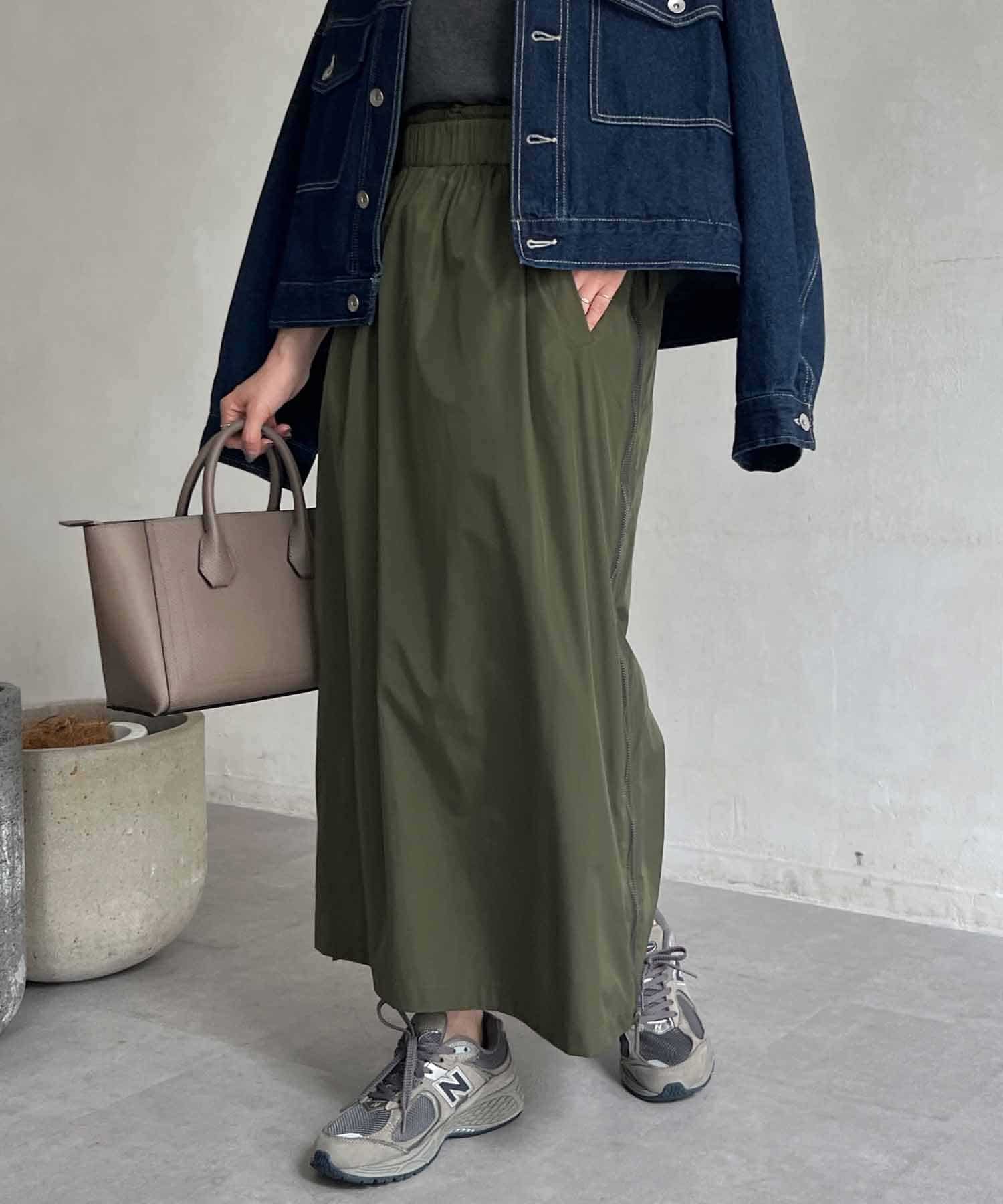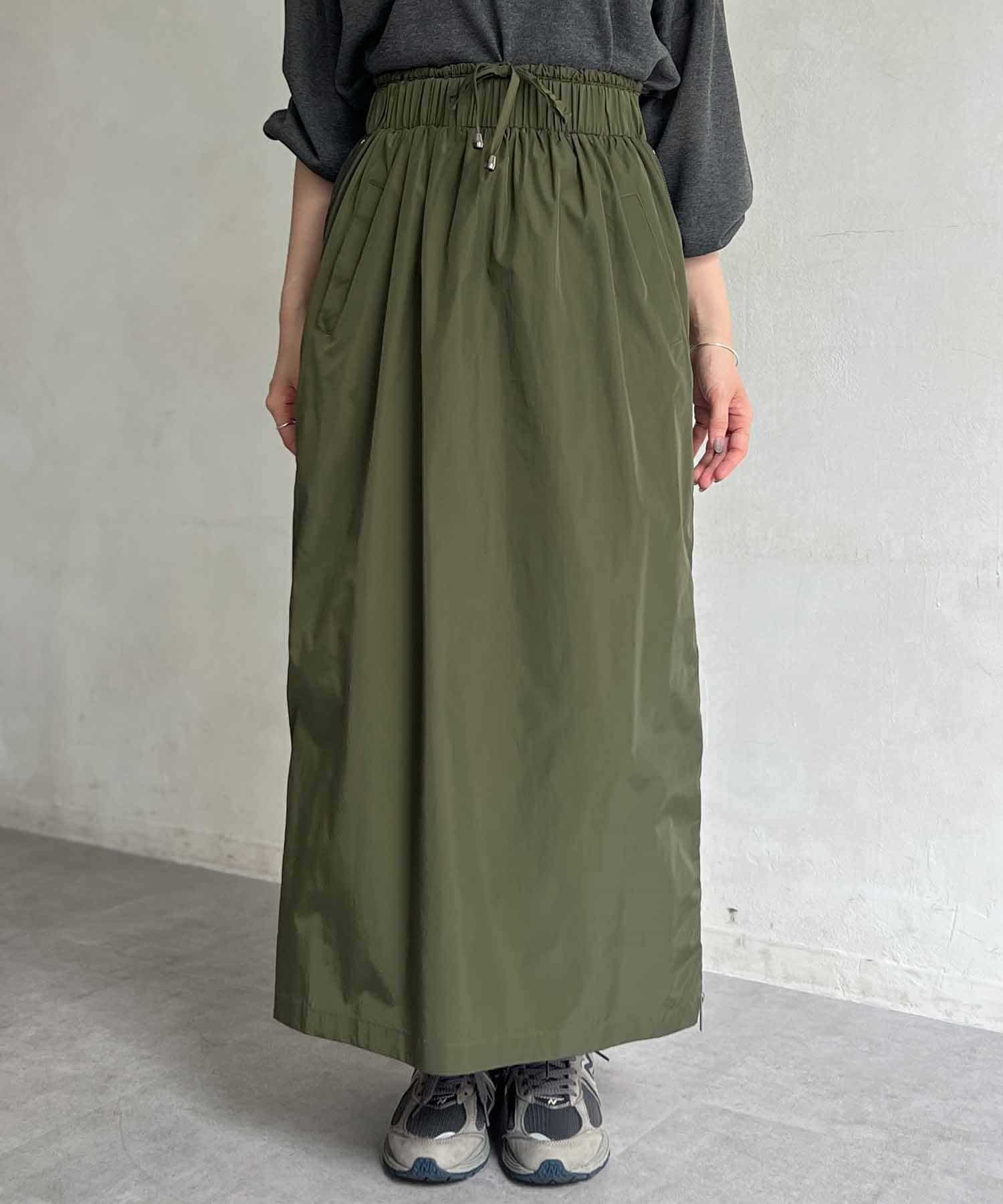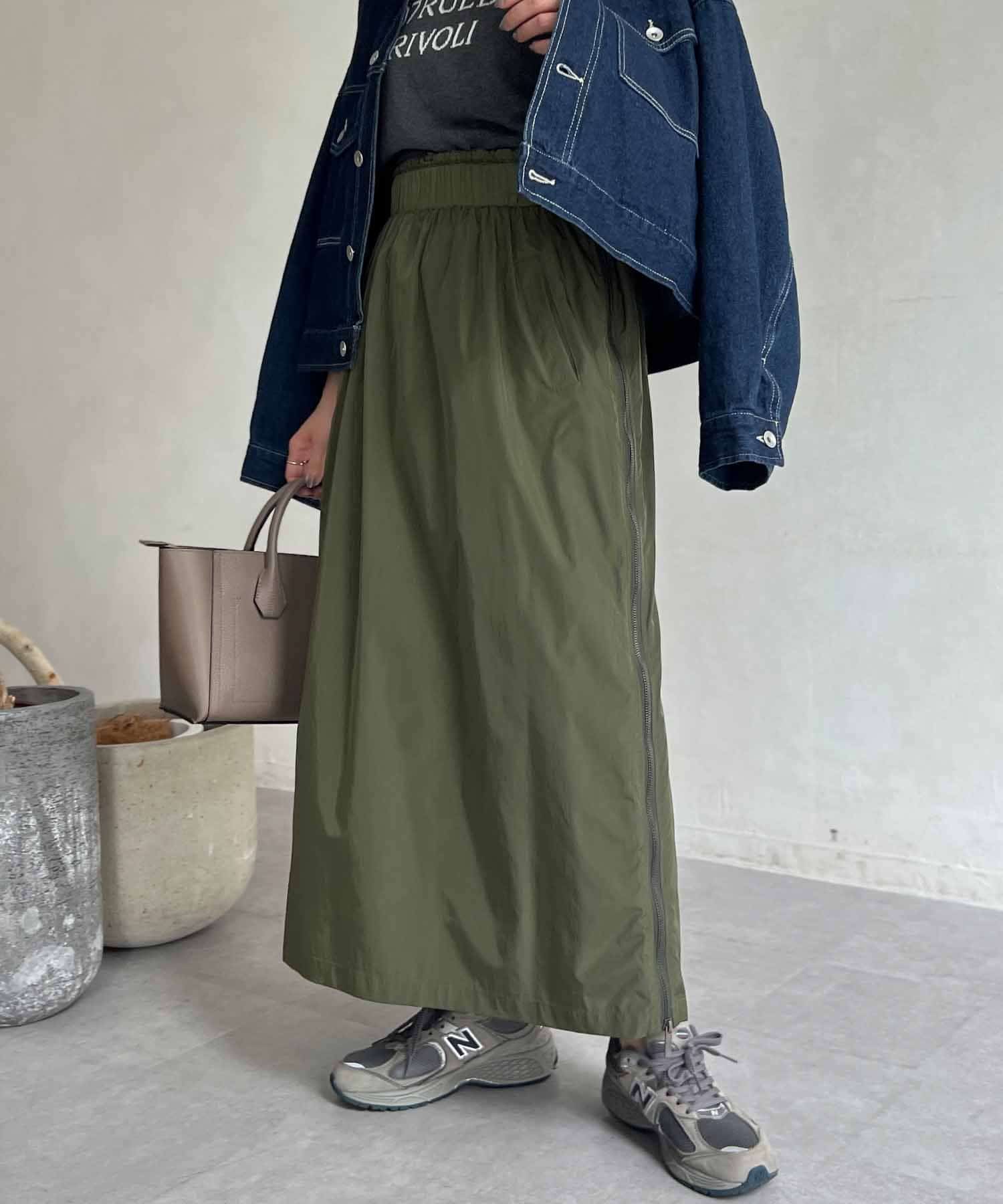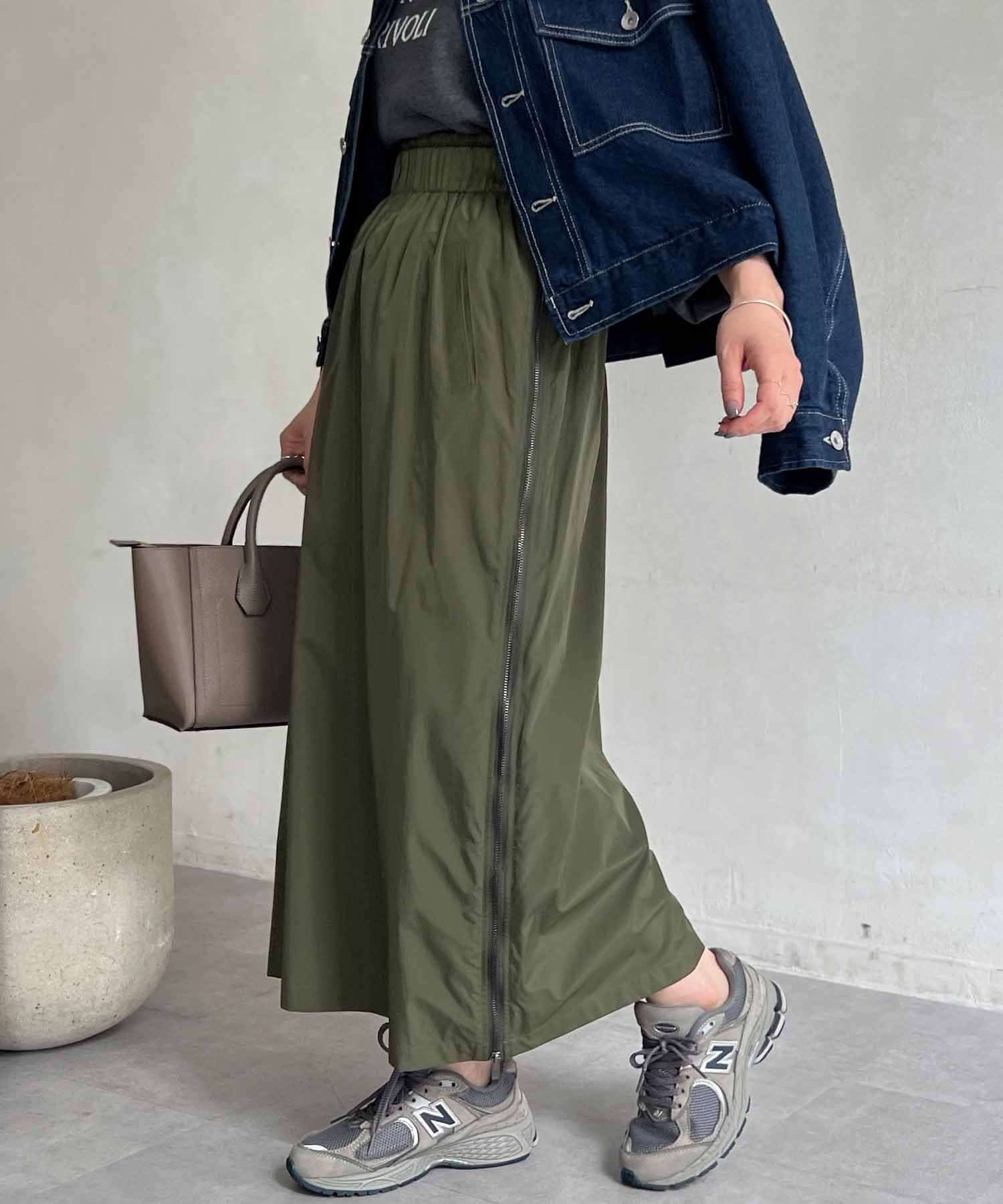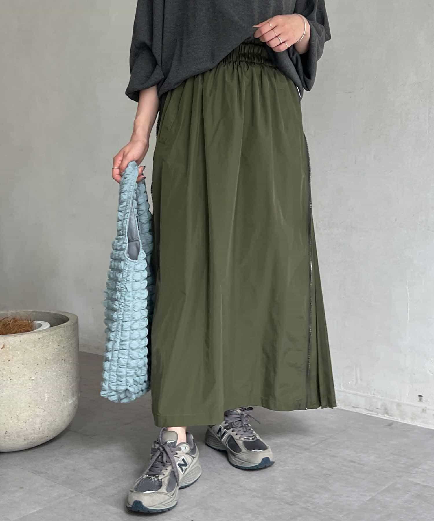 一見シンプルなナイロンスカートですが、サイドのジップに注目!