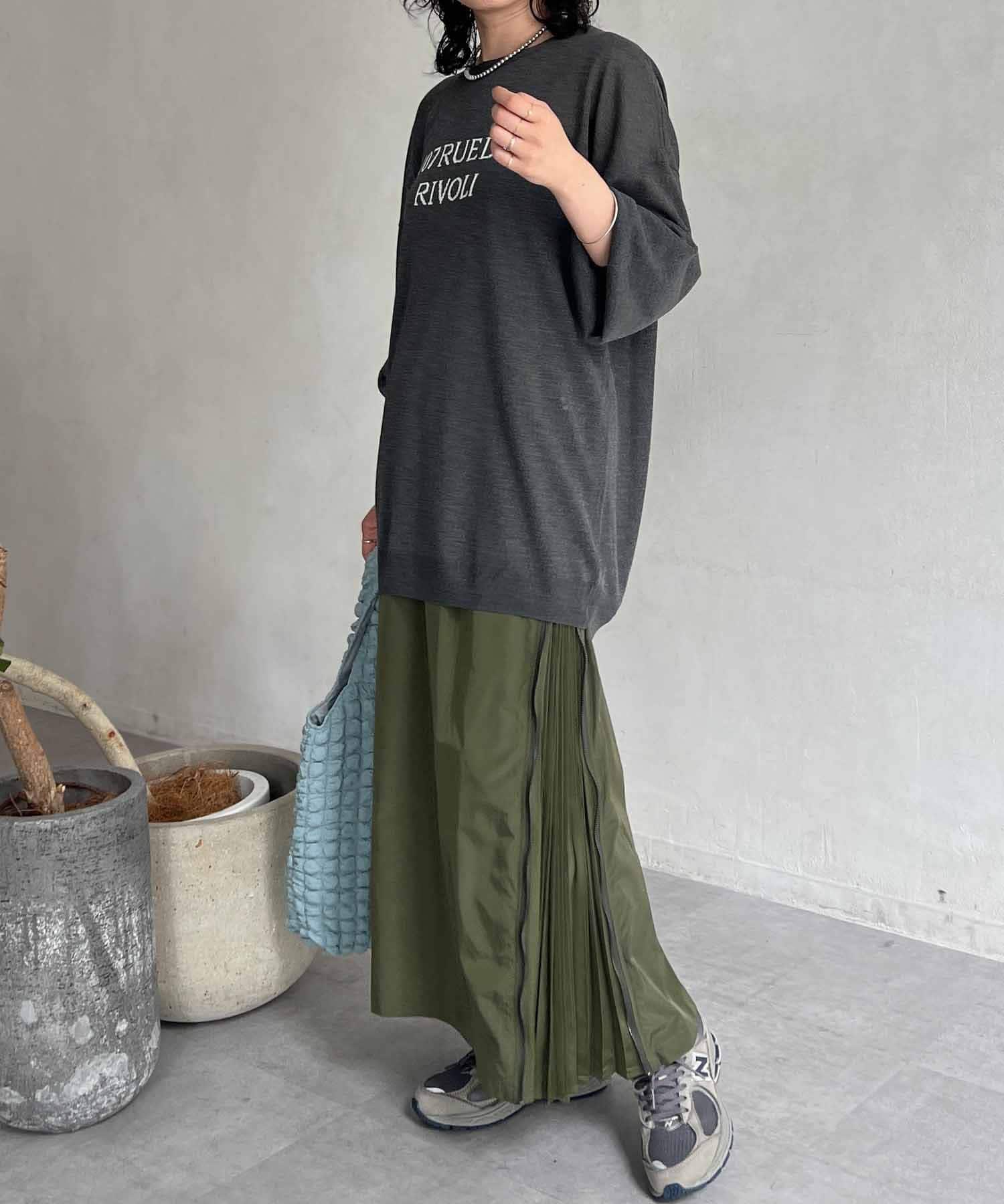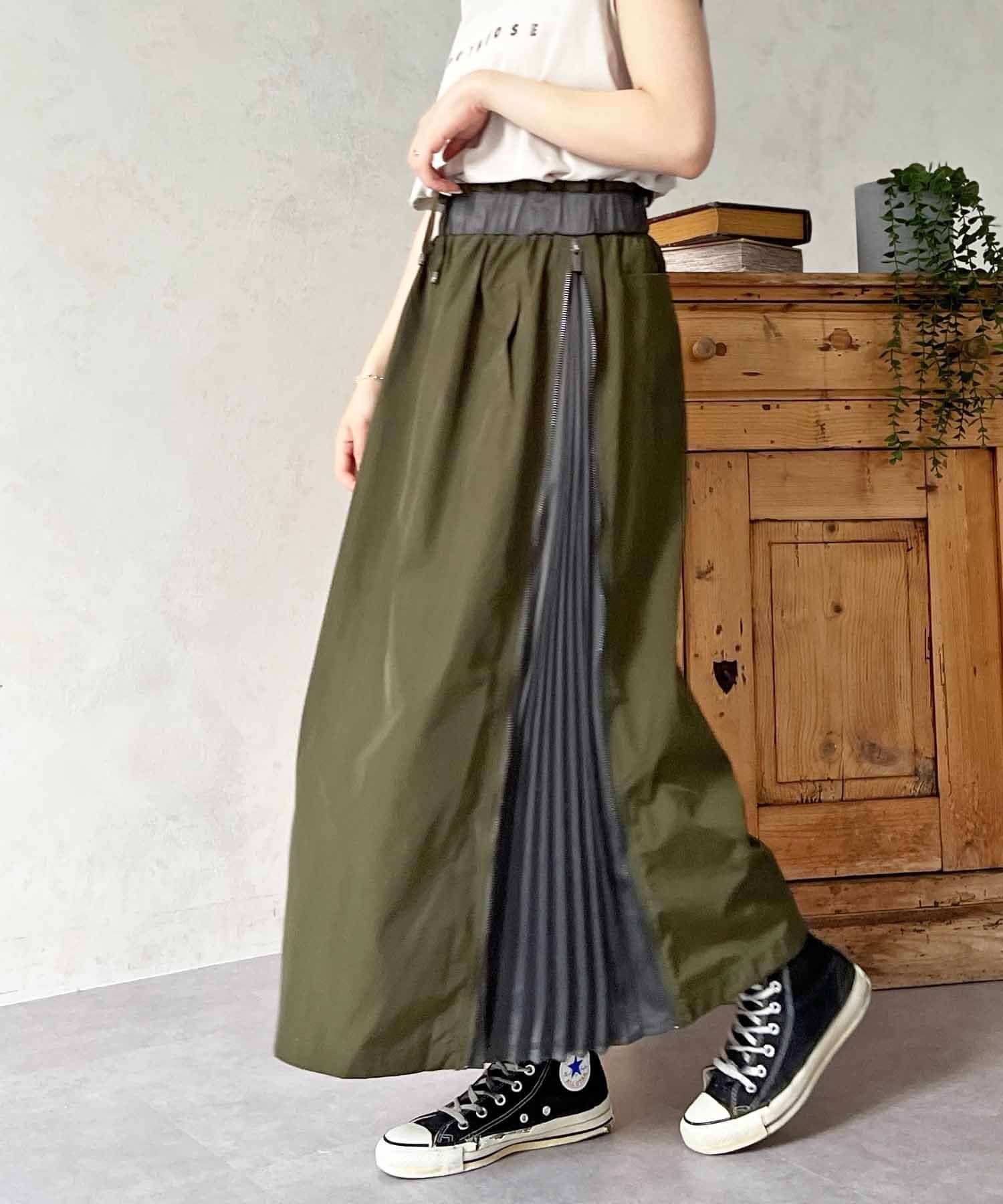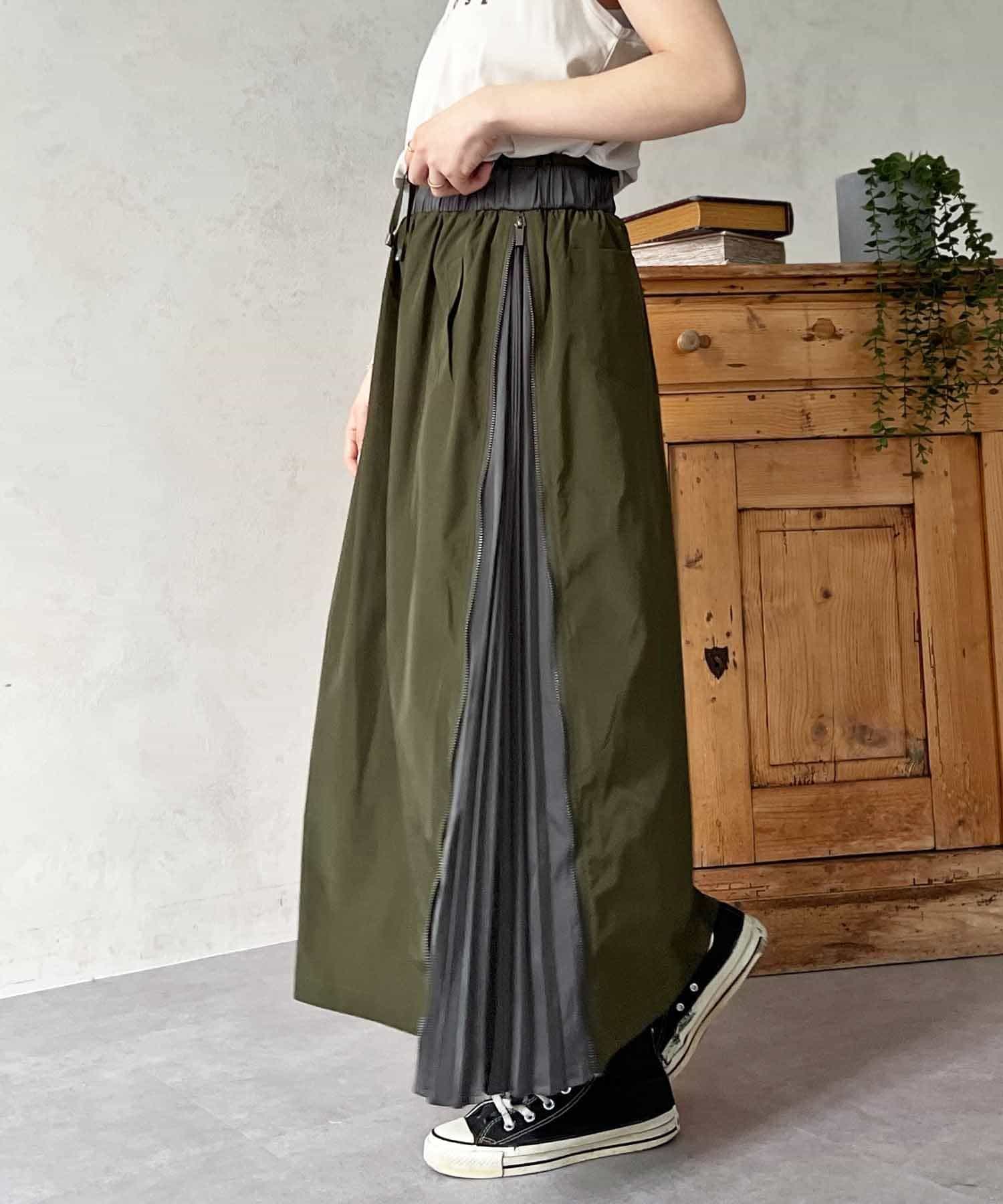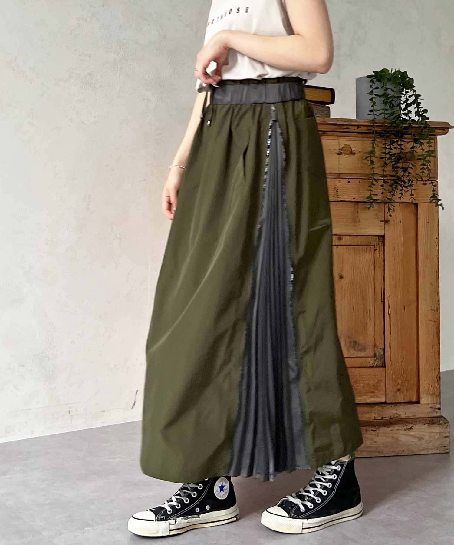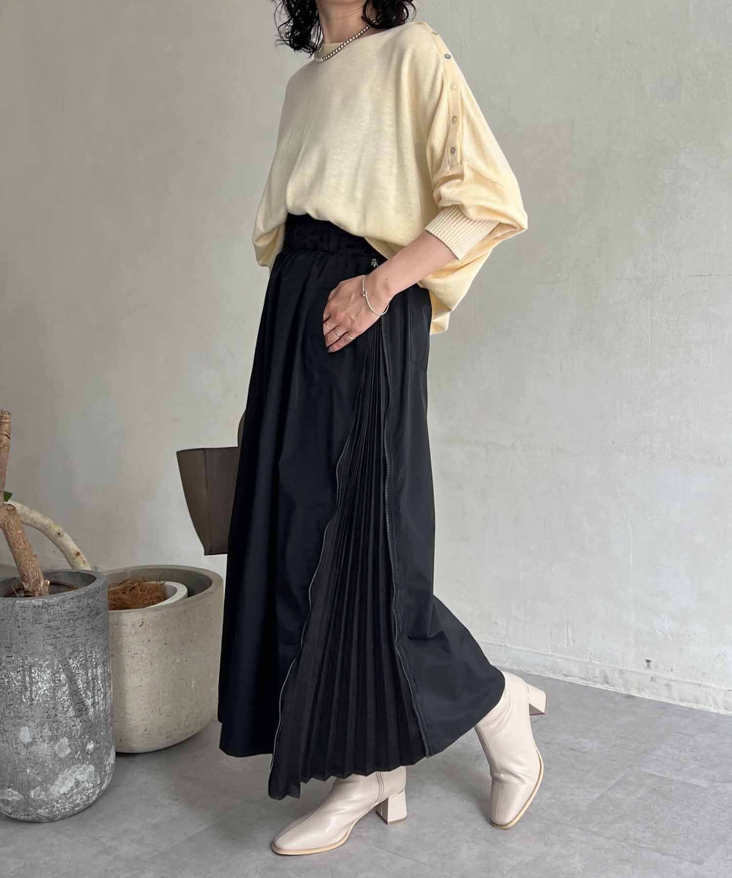 ジップを開けるとプリーツが施されており、デザイン性のあるスカートとしてお楽しみいただけます。