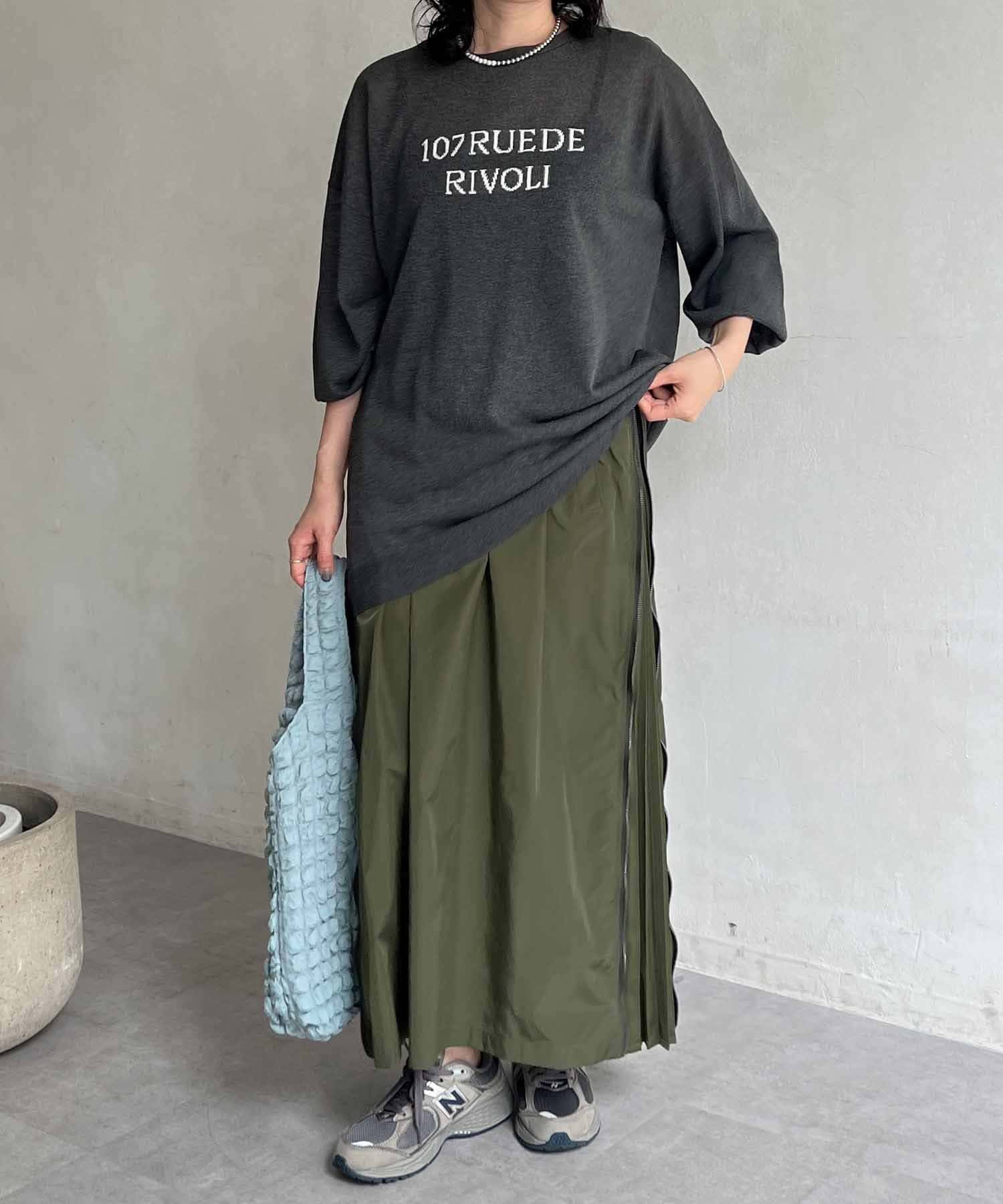 ジップを閉めた状態だとタイトなシルエットなので、ゆったり感のありニットやオーバーサイズのトップスとも相性◎