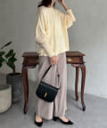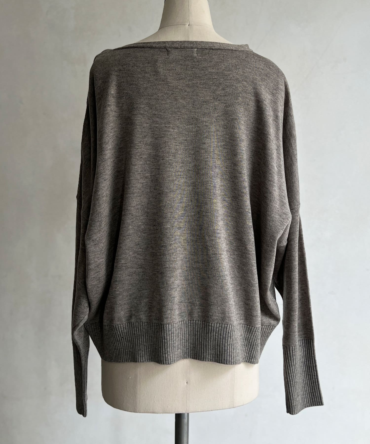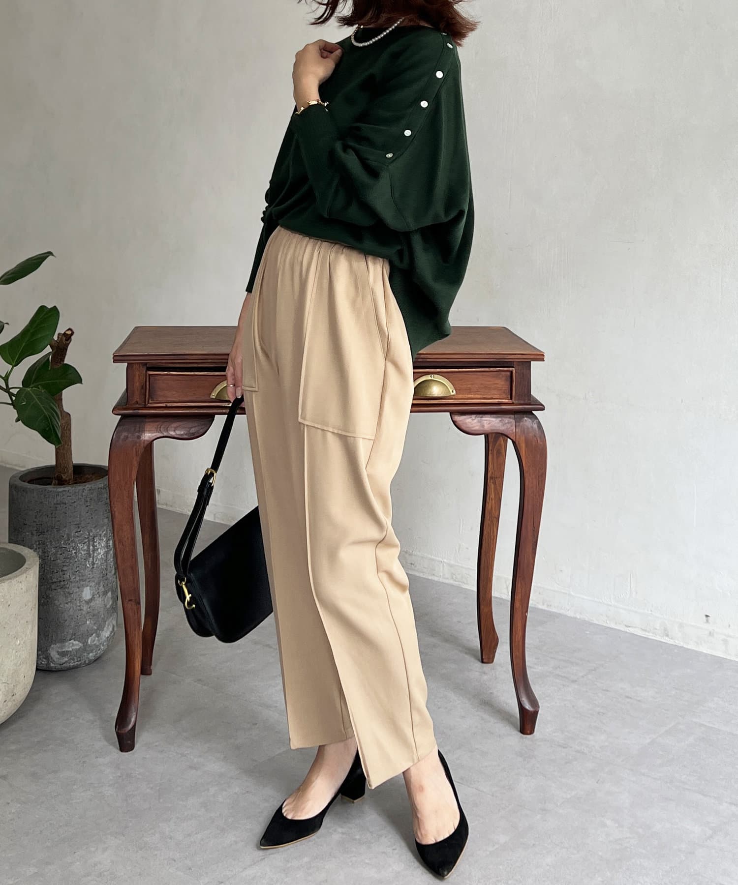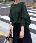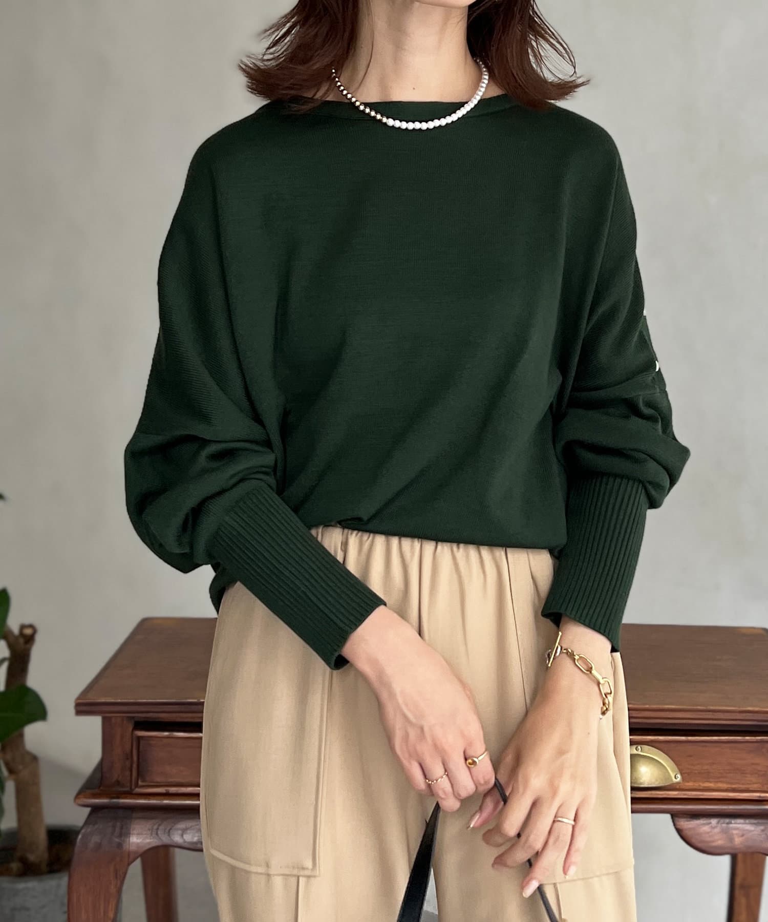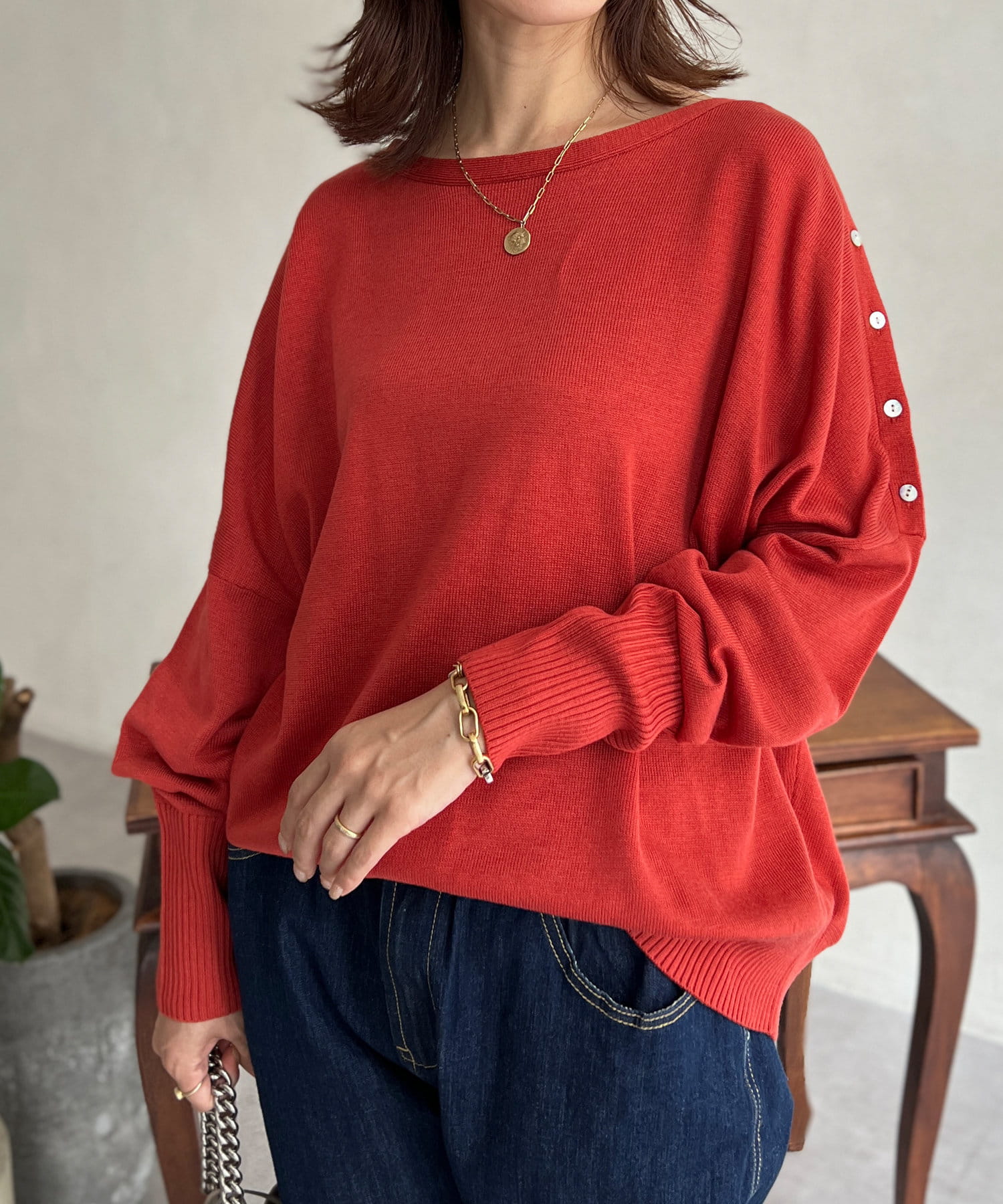 左肩にさり気なく並んだシェルボタンがポイント。上品な印象で合わせていただけます。