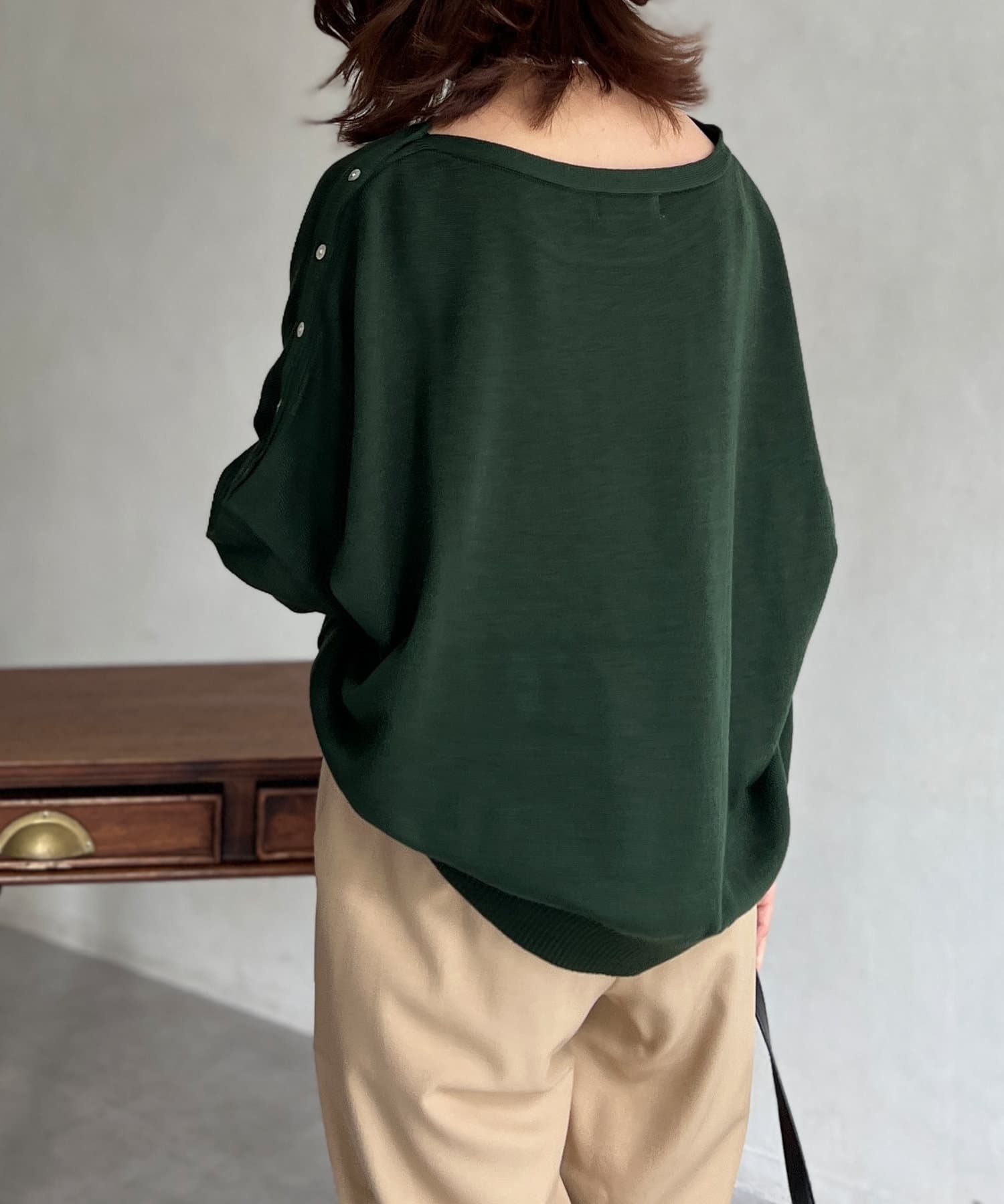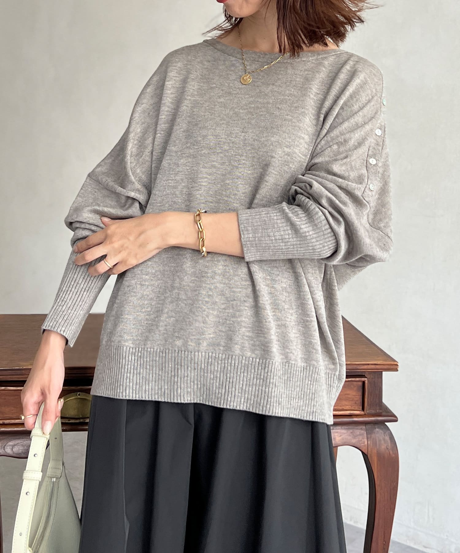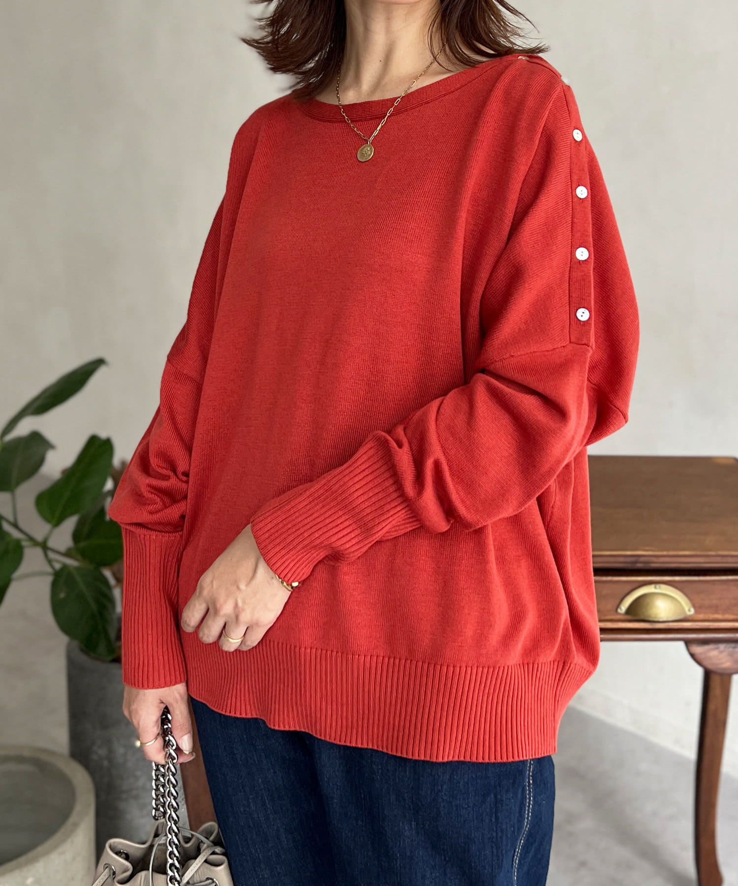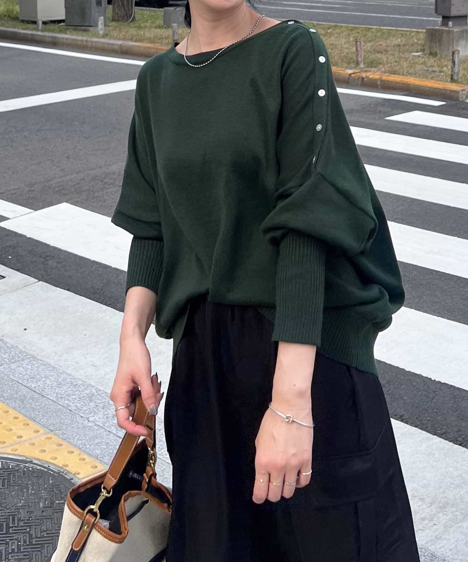 【ゆったりなのに細見え!】肩ボタンニットプルオーバー
